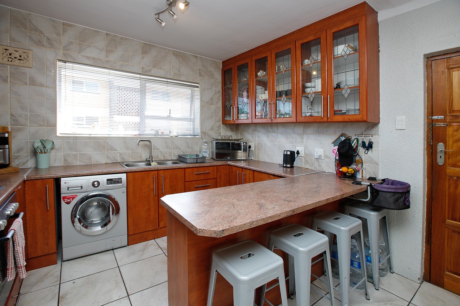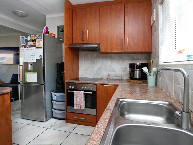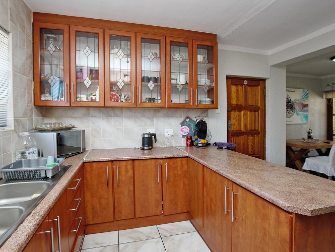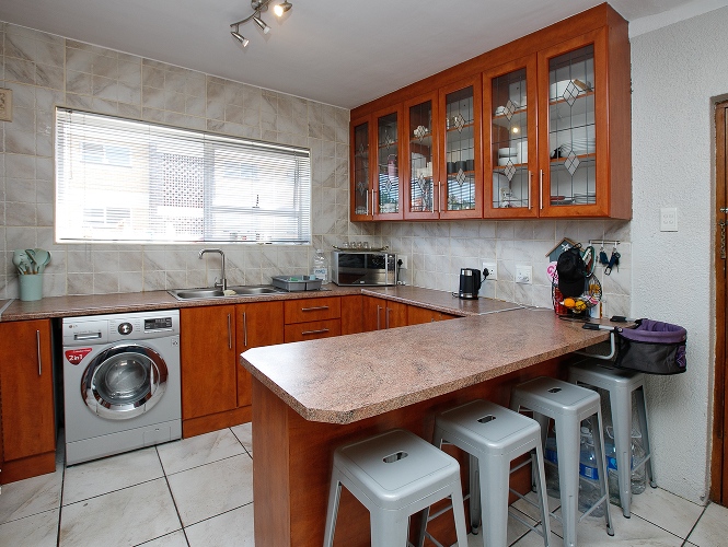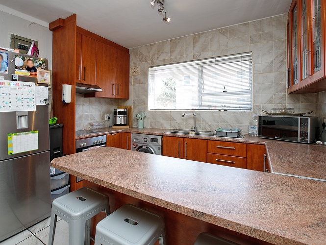 The kitchen has mountain views with Plumbgin point, electric oven, hob and extractor and breakfast bar.