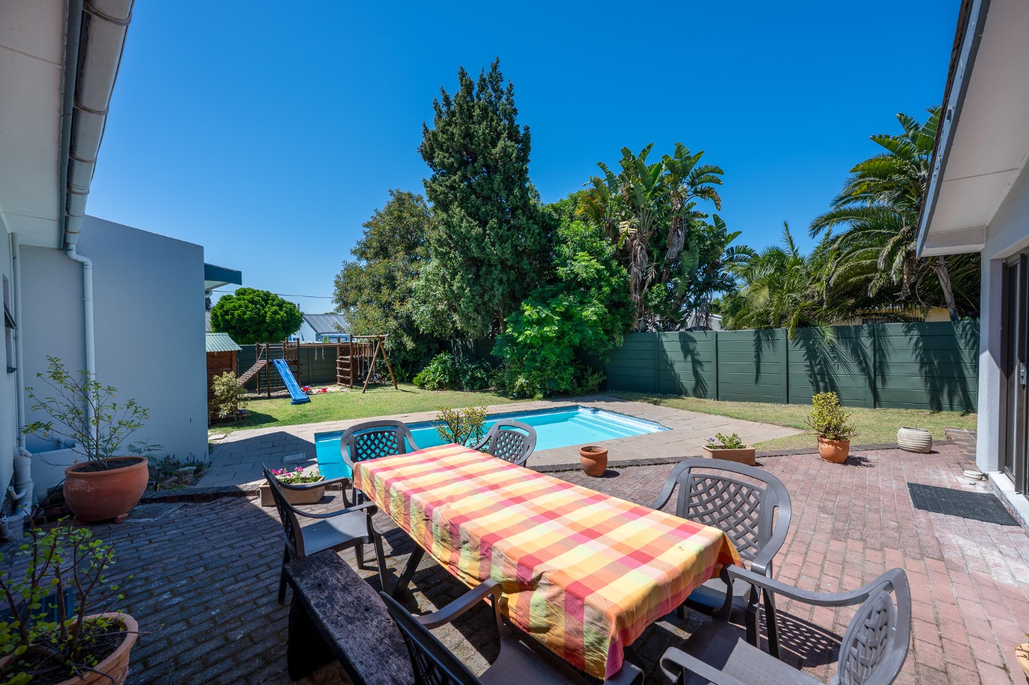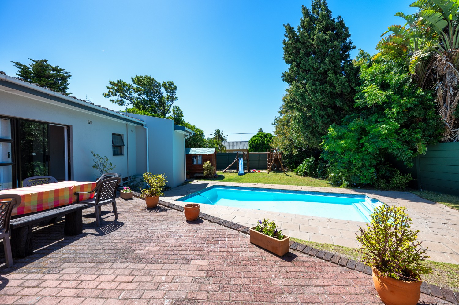 Enjoy the outdoors with a large swimming pool, double garage, borehole, and expansive garden offering endless potential for landscaping or future extensions.