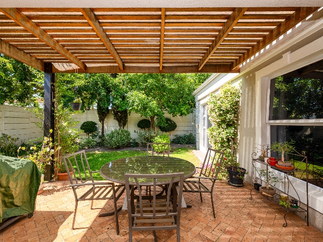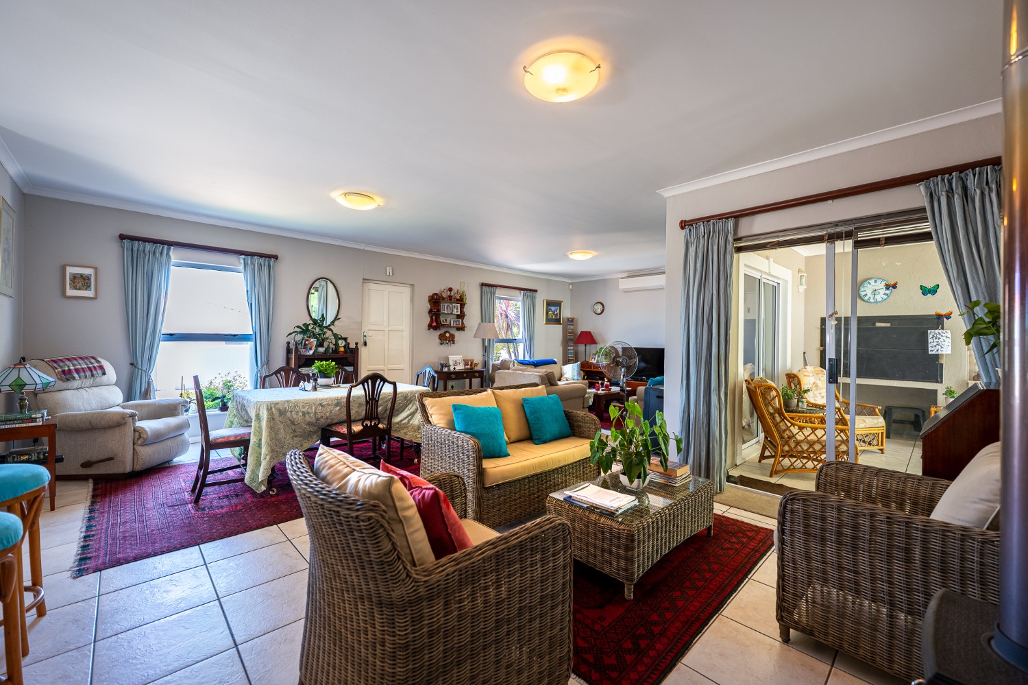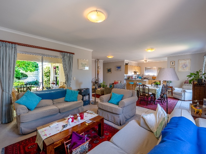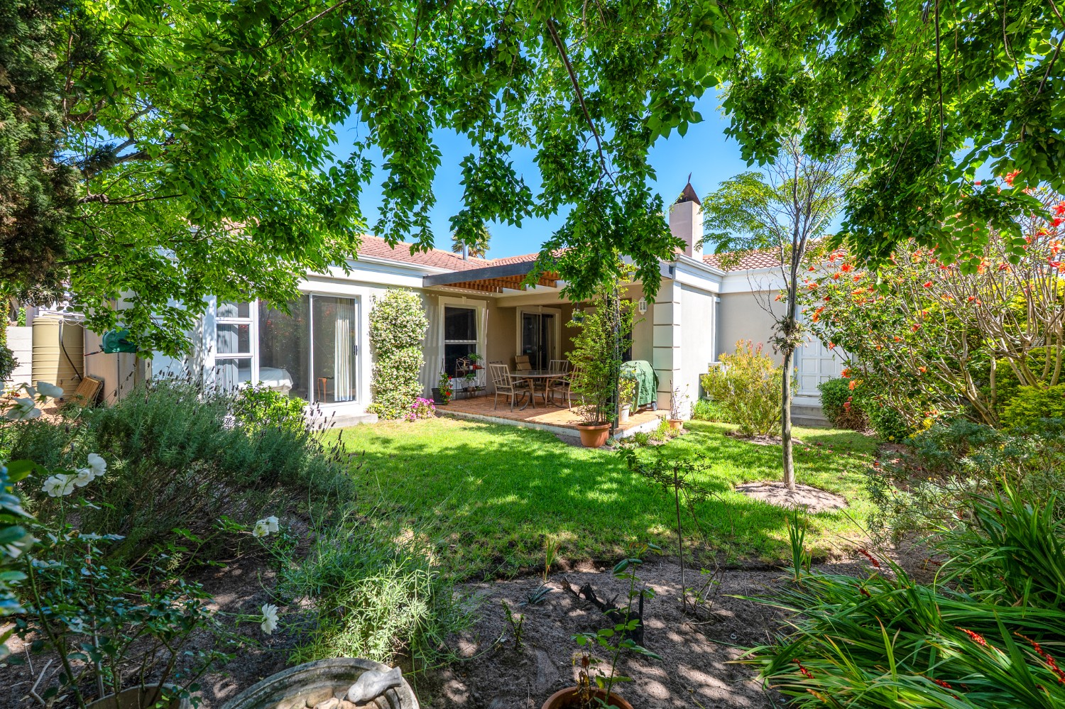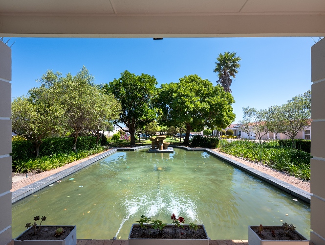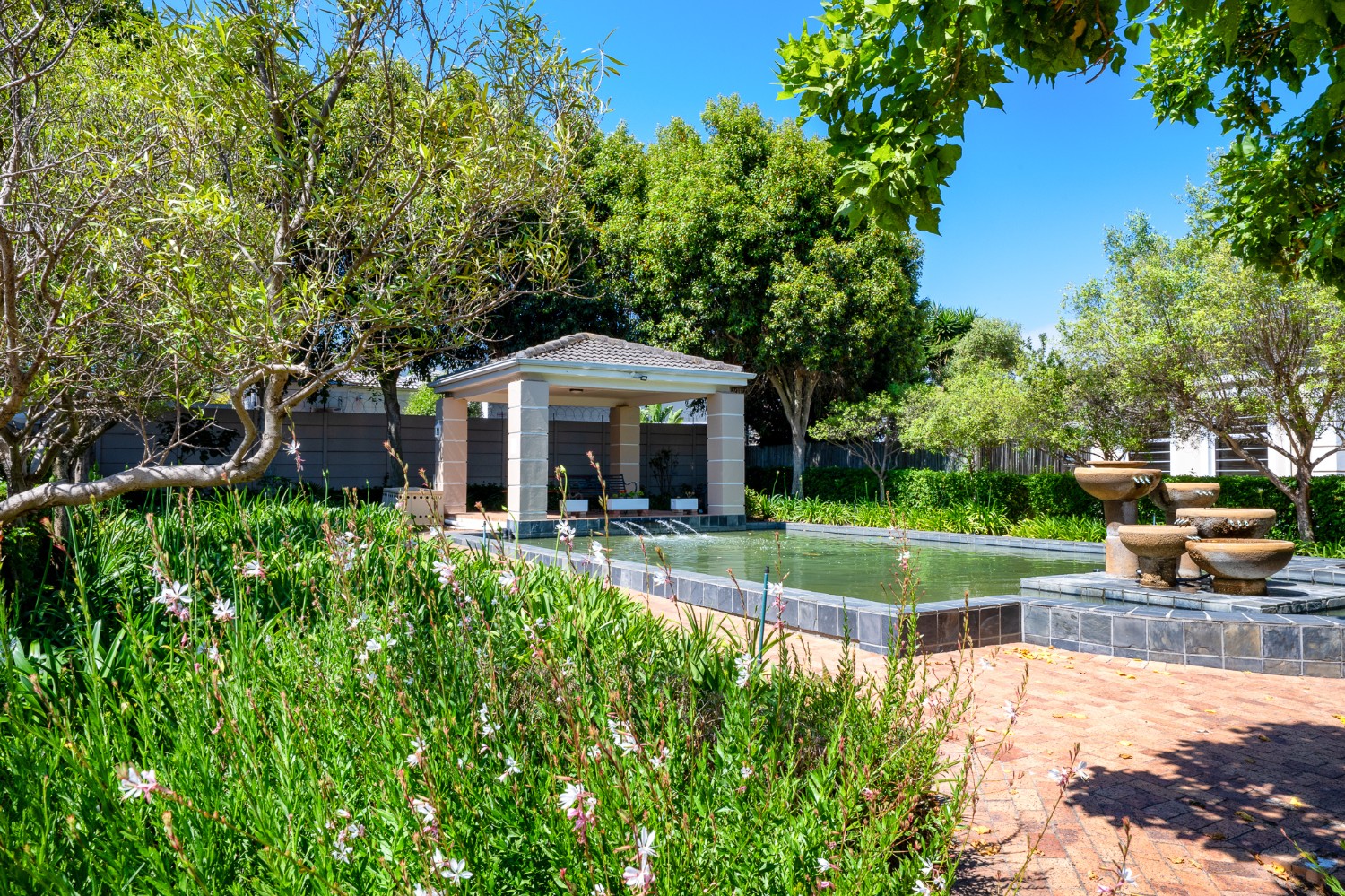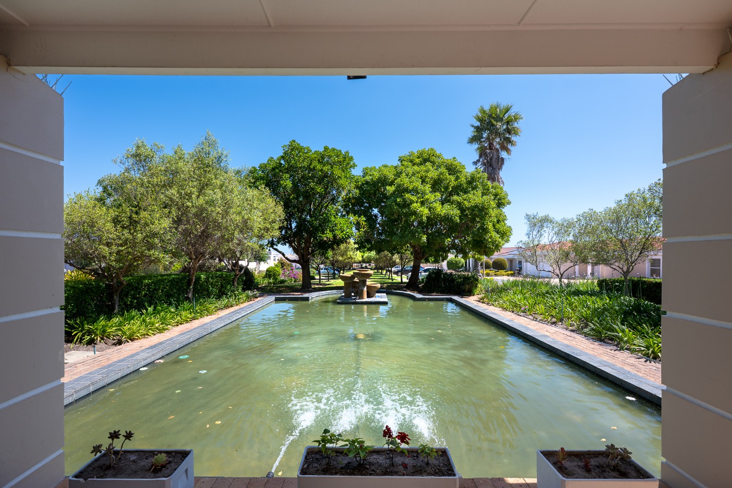 The home includes two garages (one automated) and a covered patio with a custom-made Pergola and built-in braai, perfect for relaxing or entertaining while overlooking the peaceful and low-maintenance garden.
