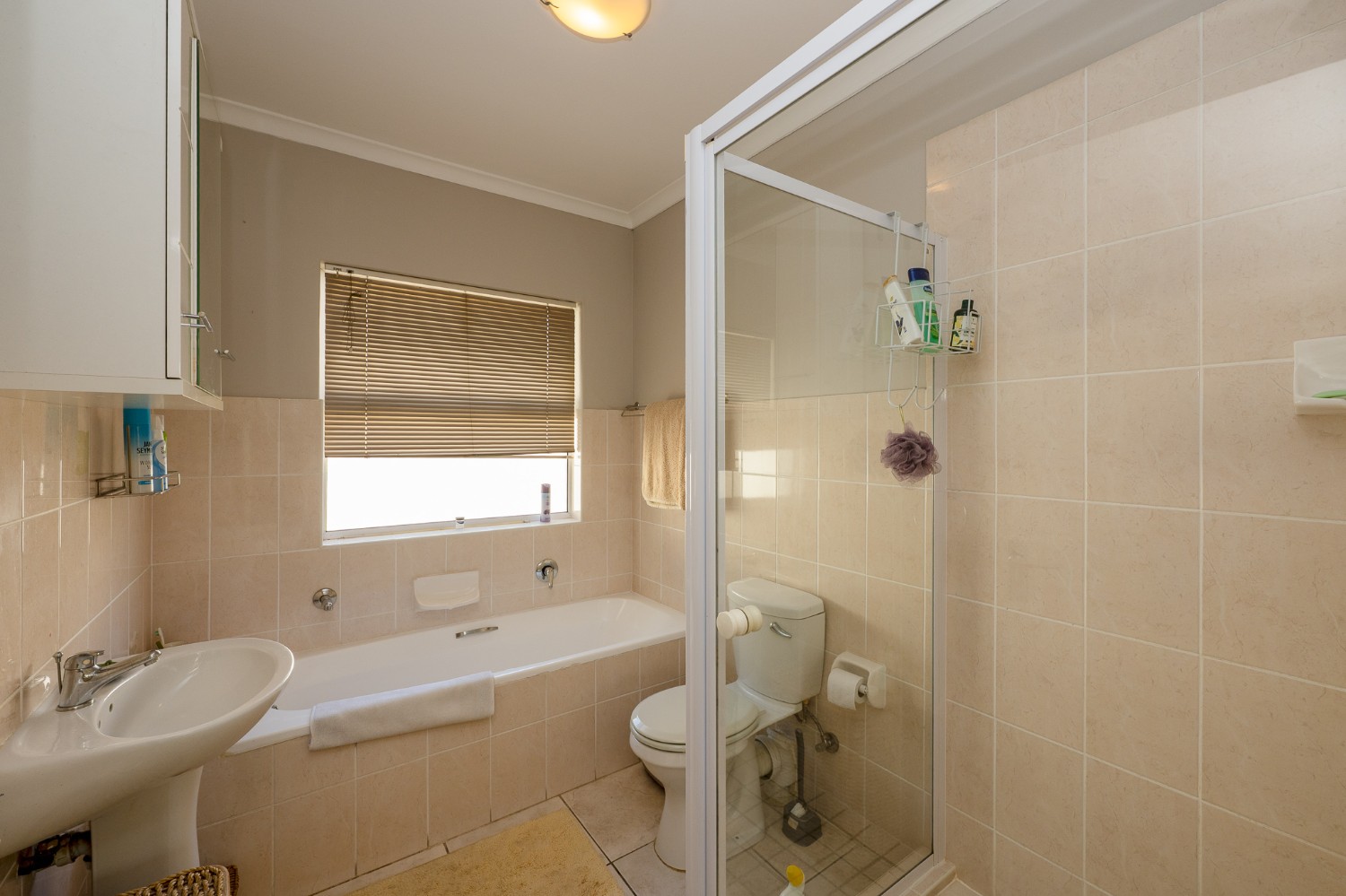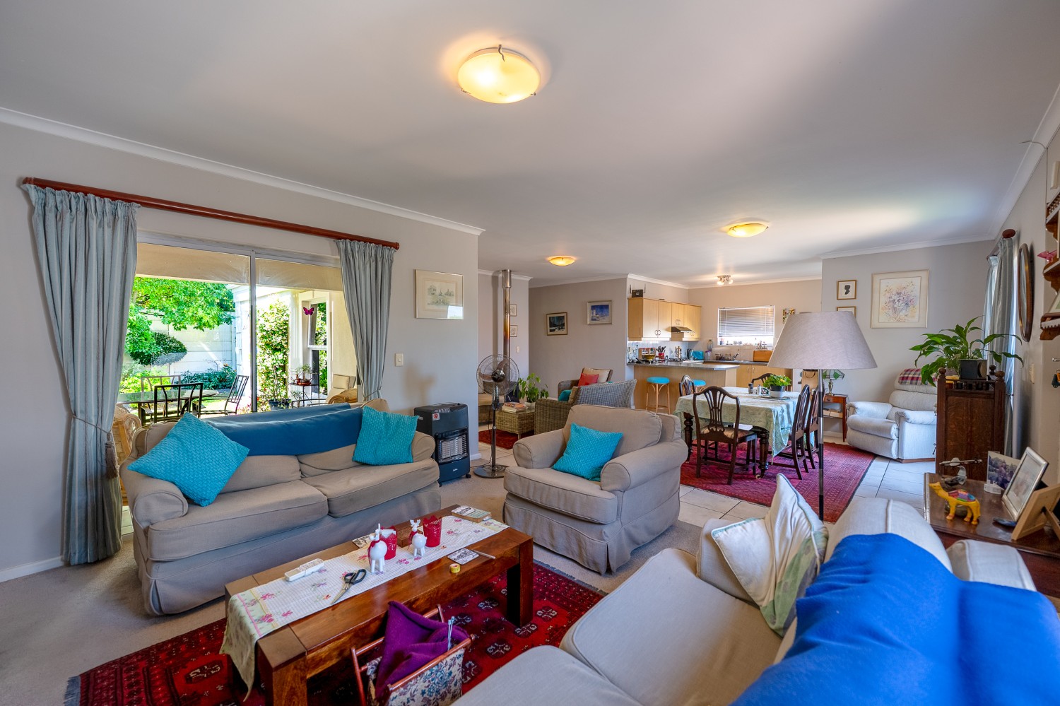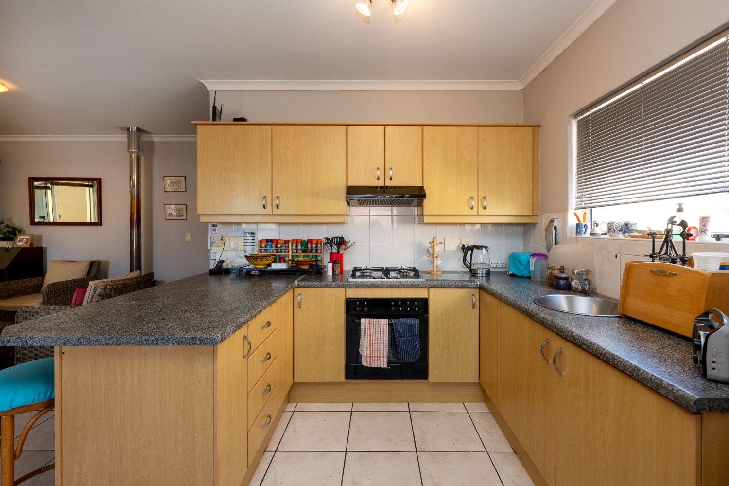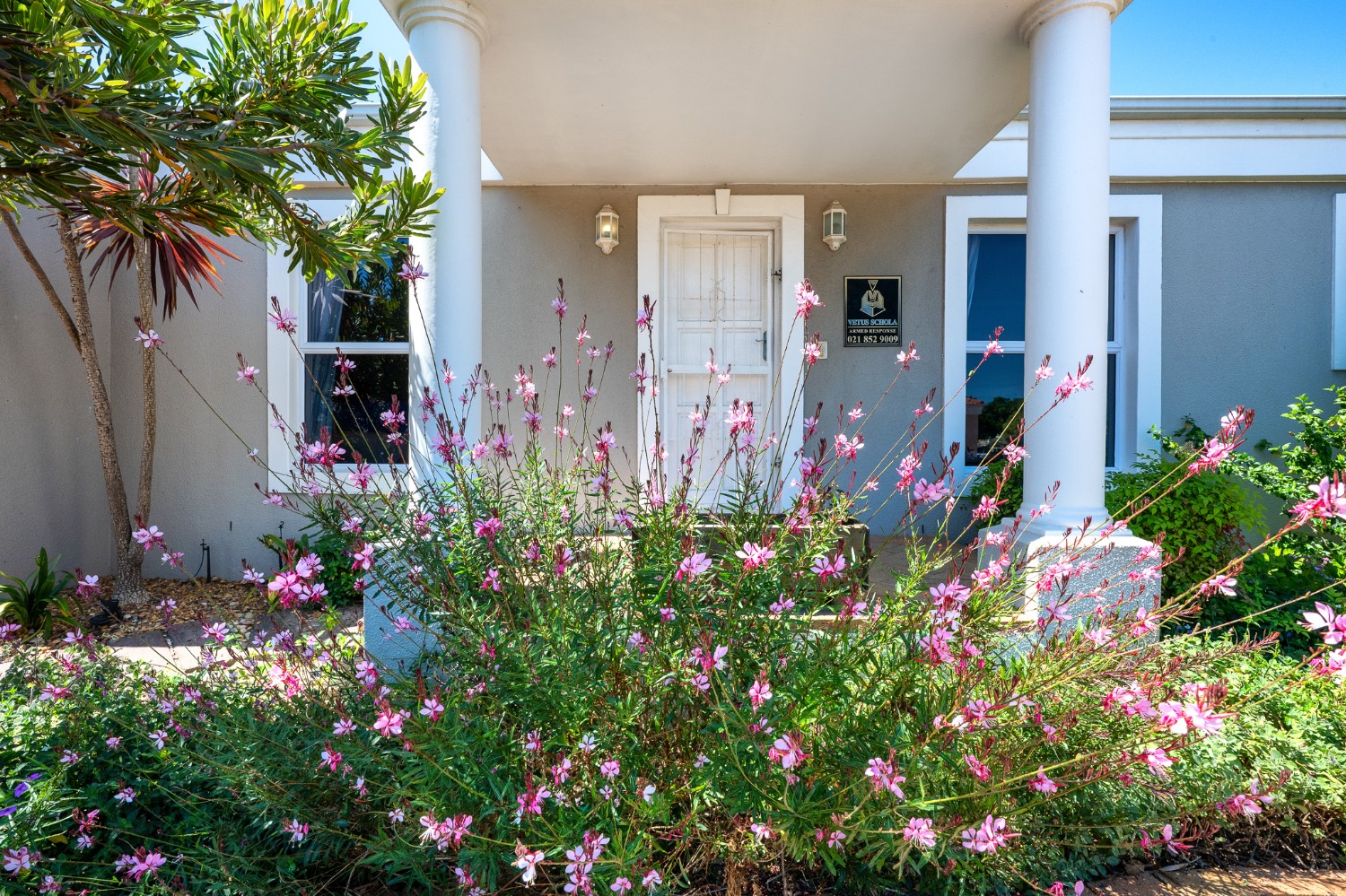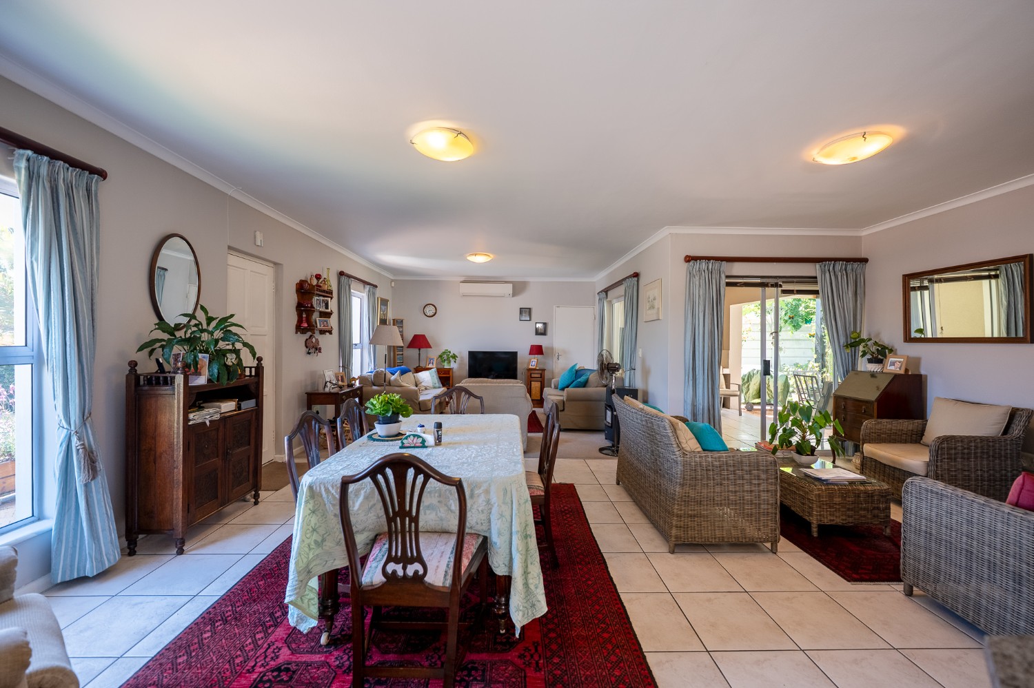 The home includes two garages (one automated) and a covered patio with a custom-made Pergola and built-in braai, perfect for relaxing or entertaining while overlooking the peaceful and low-maintenance garden.