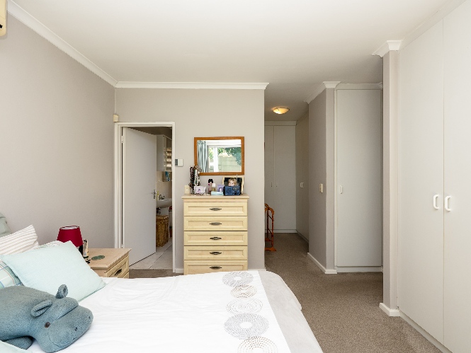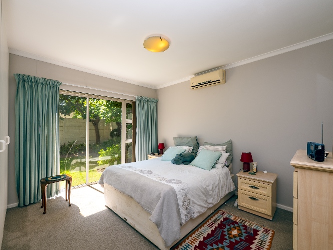 The bedrooms are carpeted for comfort, with the main bedroom offering a touch of luxury — complete with a walk-in closet, en-suite bathroom, linen cupboard, and a sliding door that opens directly to the peaceful garden area.