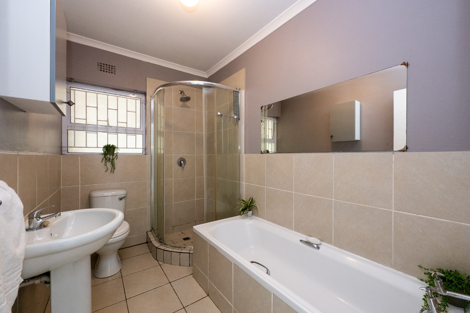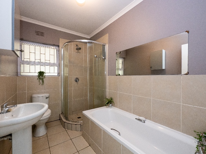 The main bedroom includes built-in cupboards, while the remaining bedrooms are well-sized and filled with natural light. The family bathroom is fitted with a bathtub, shower, basin, and toilet, catering to all your daily needs.