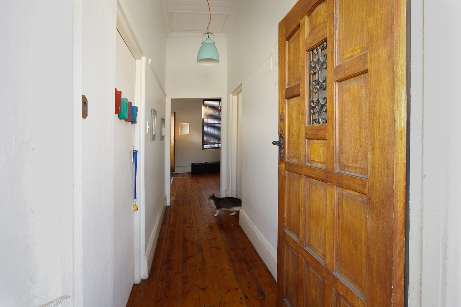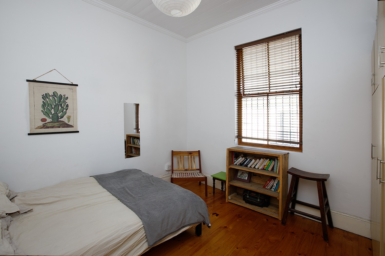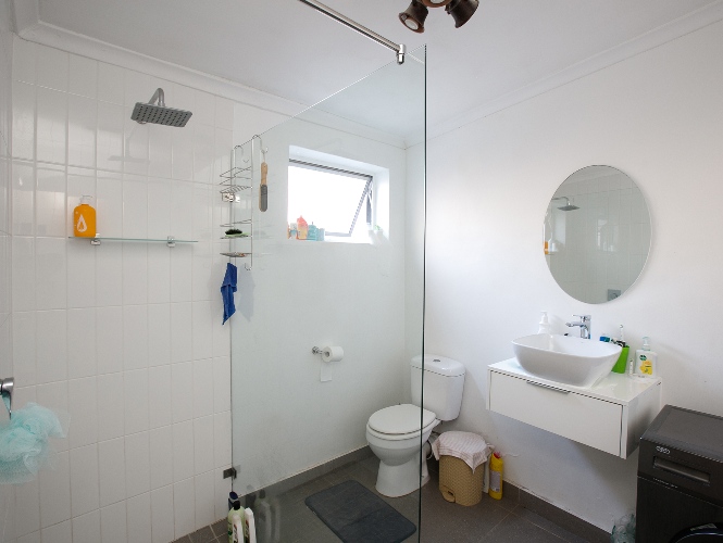 The home features two bedrooms, both offering built-in cupboards, and they share a neatly maintained family bathroom.