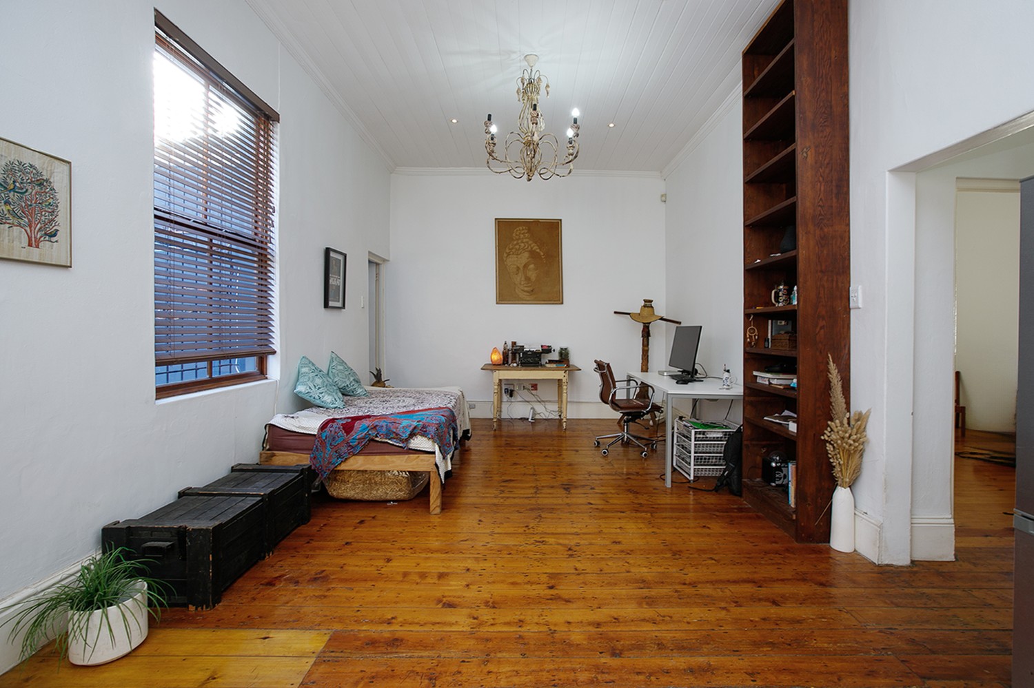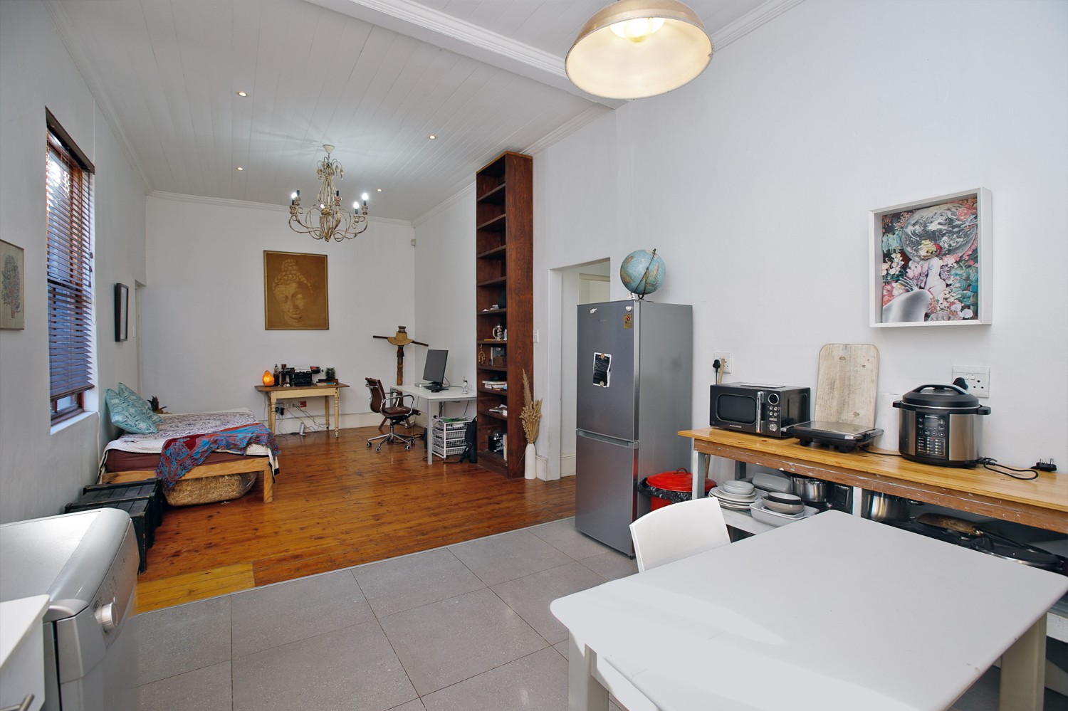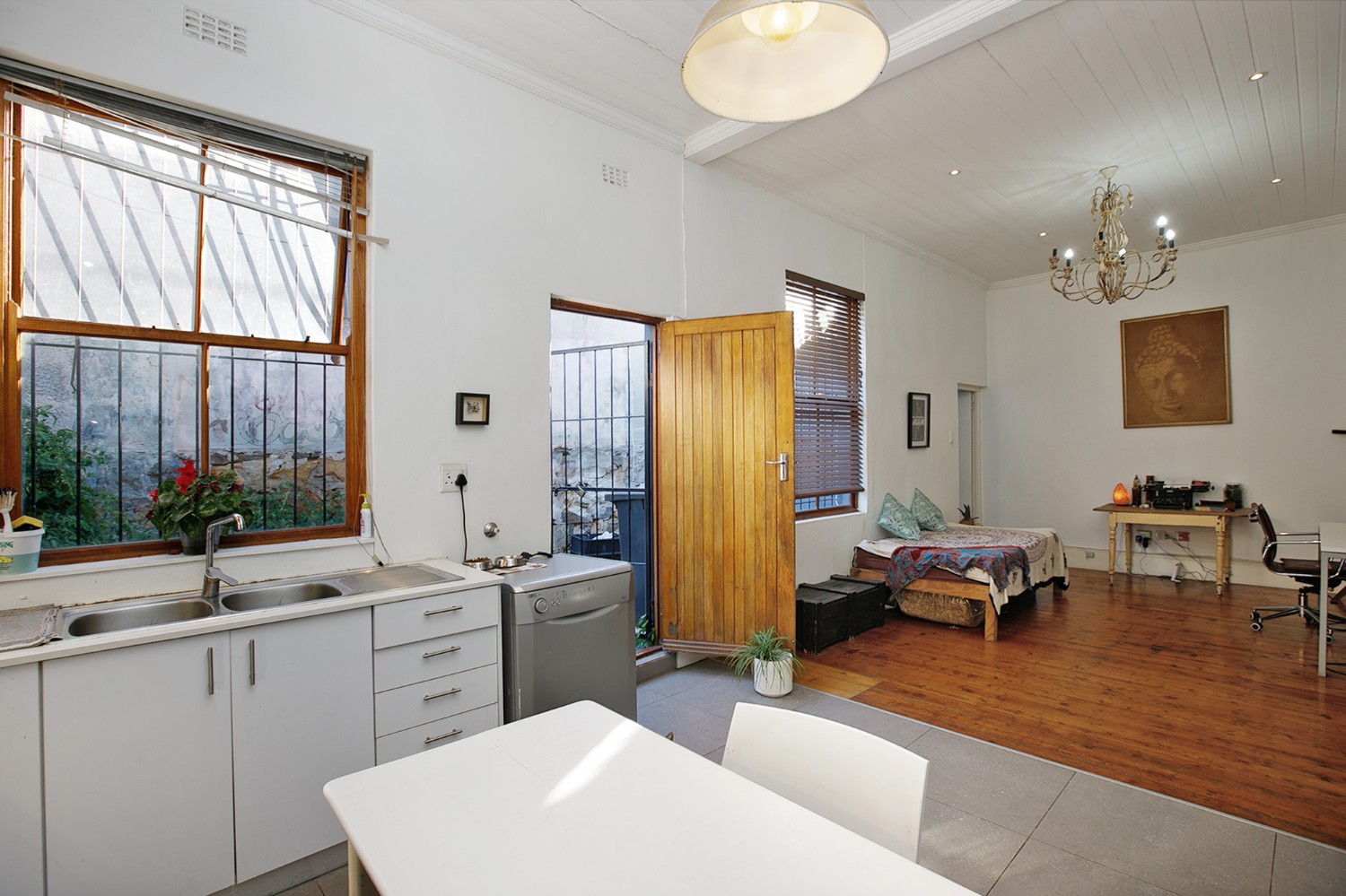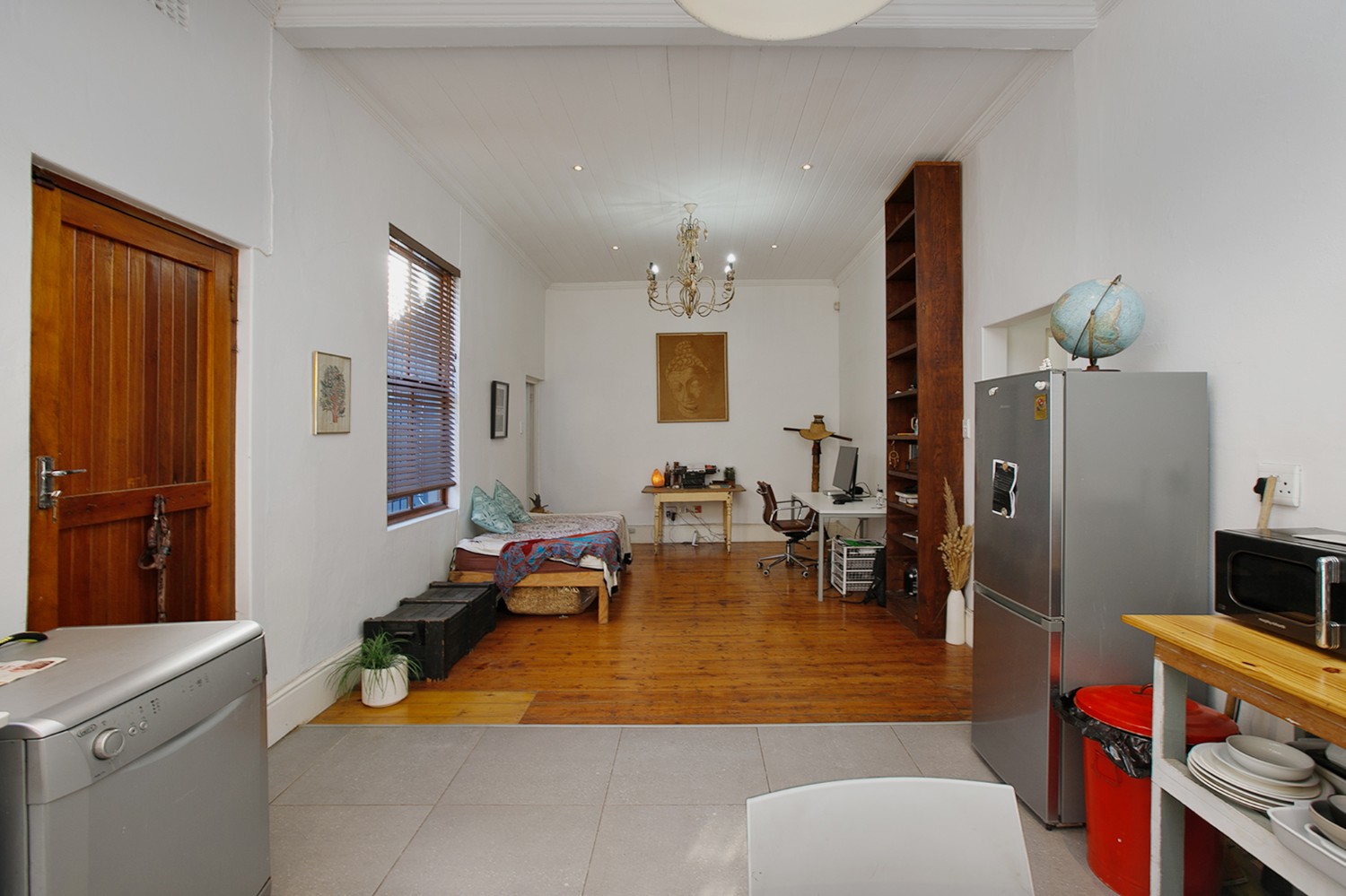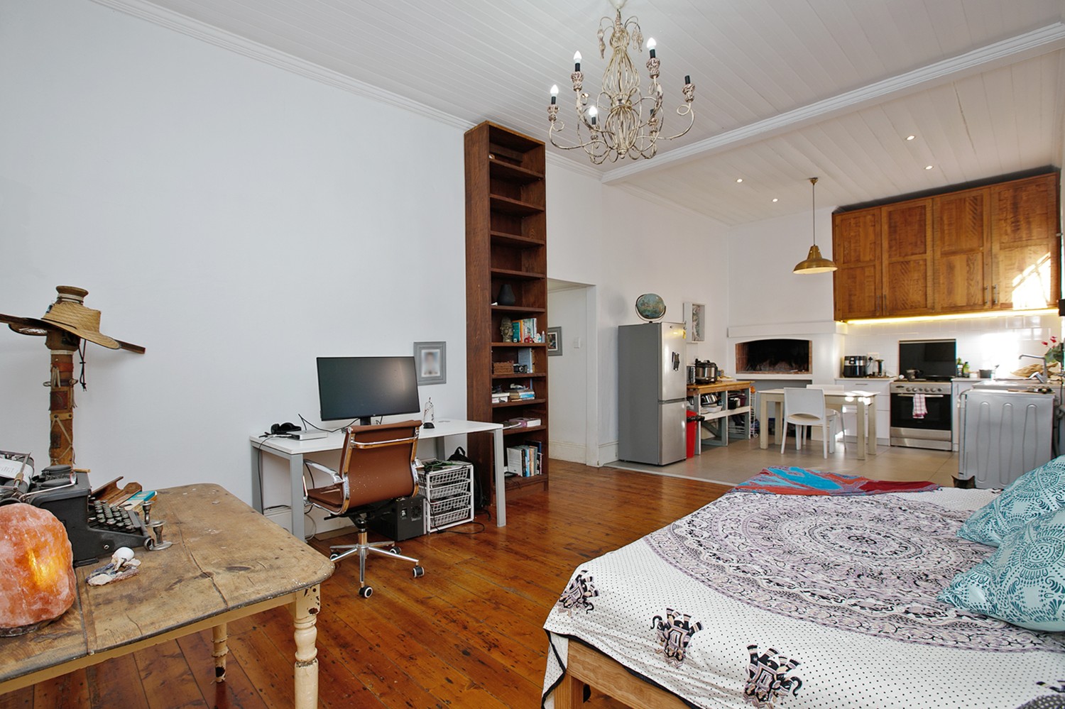 As you arrive, you are welcomed through a hallway that leads into a comfortable open-plan lounge, dining area, and kitchen. The kitchen offers built-in cupboards and even boasts an indoor braai—perfect for entertaining and creating delicious meals at home.