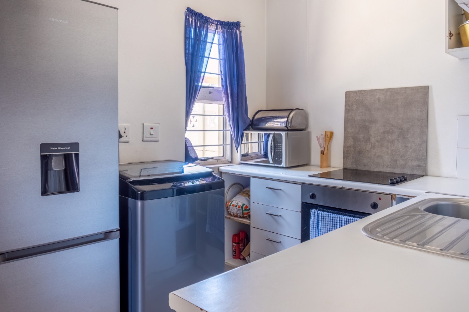 Welcome to this charming 2-bedroom starter home. Upon arriving, you are welcomed into an open-plan lounge and kitchen area, creating a warm and inviting living space. The kitchen offers built-in cupboards, providing convenient storage.