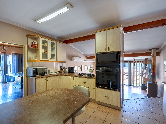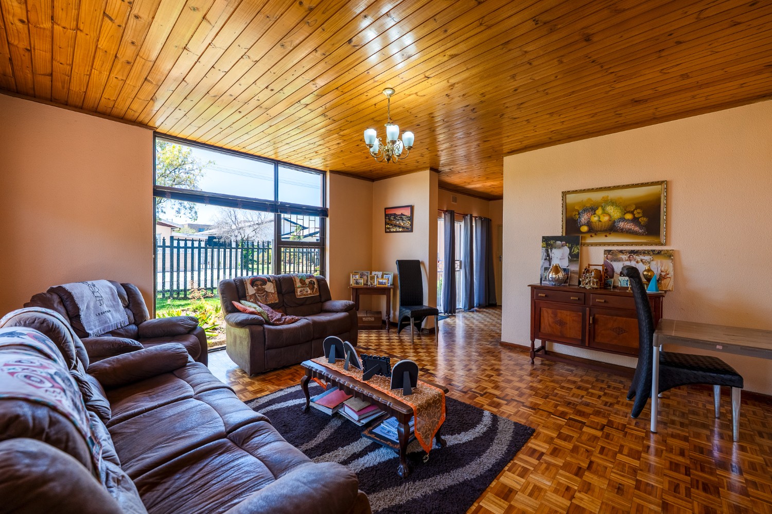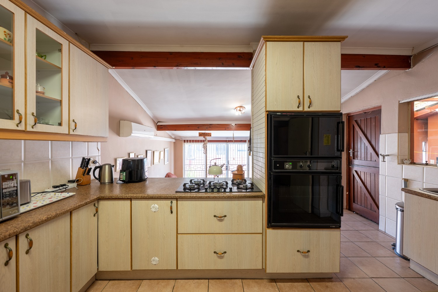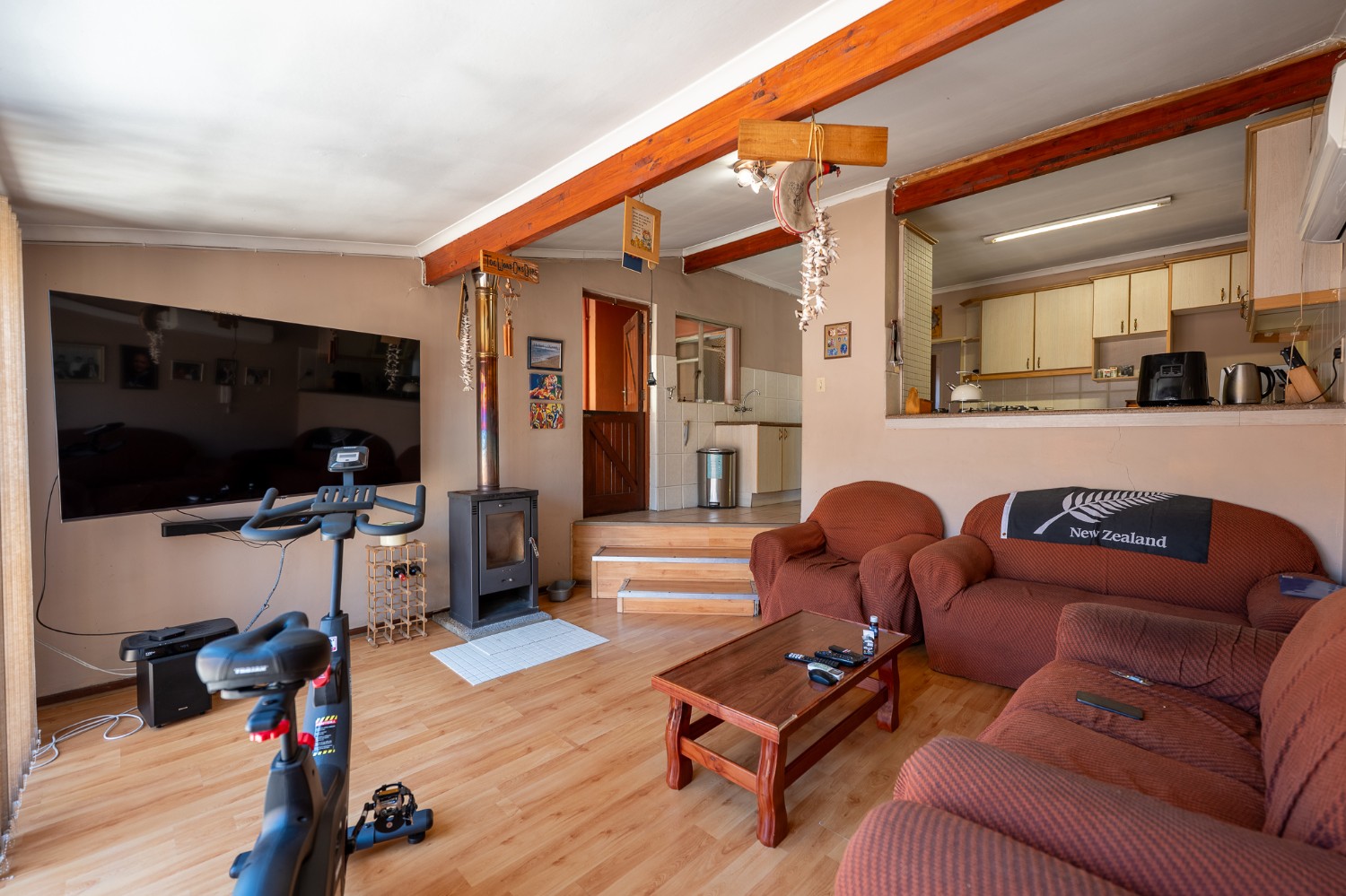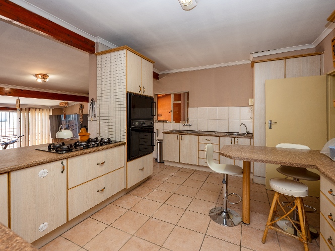 As you step inside, you are welcomed by a warm and inviting lounge with charming wooden ceilings and large windows that allow plenty of natural sunlight to flow in. The dedicated dining room is perfect for family meals and entertaining. The well-appointed kitchen features ample built-in cupboards, an eye-level oven, a gas stovetop, and generous counter space for effortless meal preparation. A separate TV room with a cosy fireplace provides the ideal spot for relaxing evenings, and the indoor braai area makes year-round entertaining an absolute pleasure.