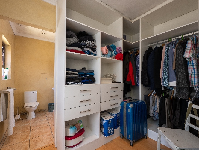 The home offers four well-sized bedrooms, all fitted with built-in cupboards. The main bedroom boasts a walk-in closet and a modern, full en-suite bathroom, creating a luxurious private retreat. The first family bathroom includes a bathtub, basin, and toilet. In addition, there is a second family bathroom with a shower, basin and toilet.