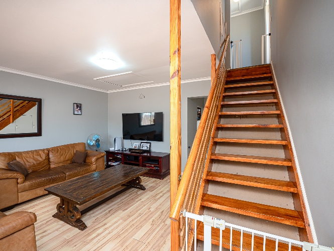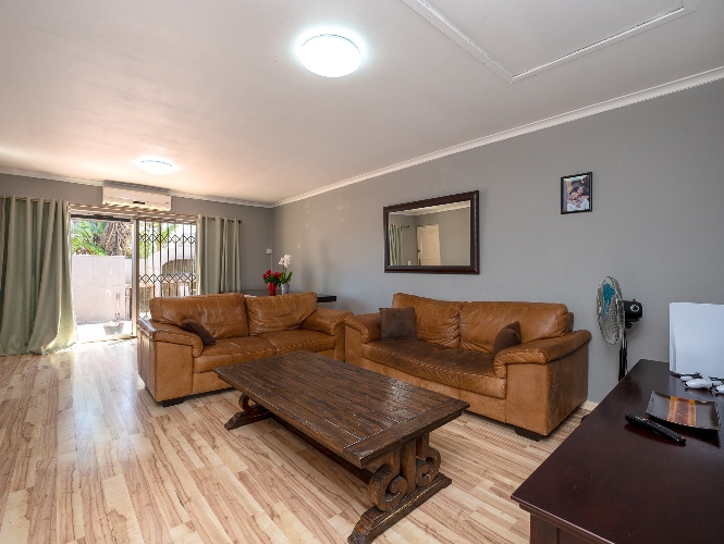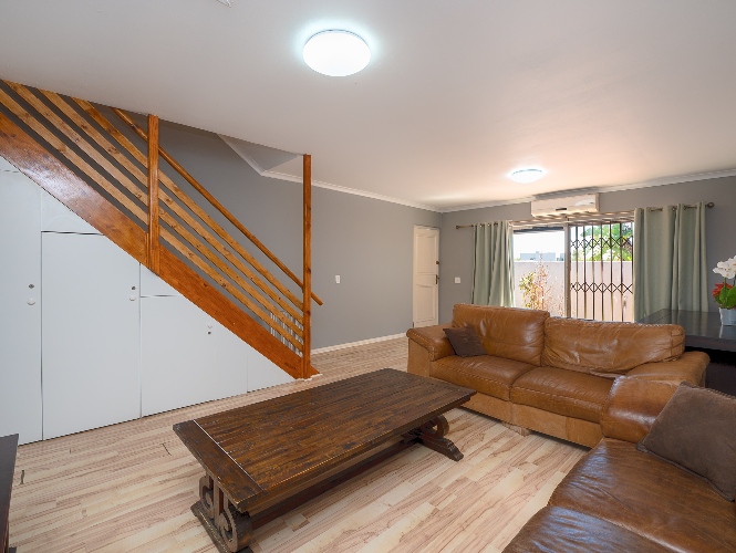 In addition, there is an outdoor braai area, a garage and an additional parking. The estate boasts a communal swimming pool and well-maintained grounds.