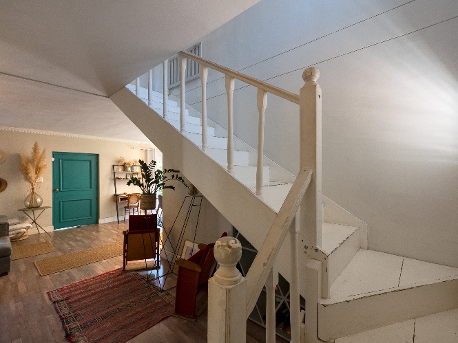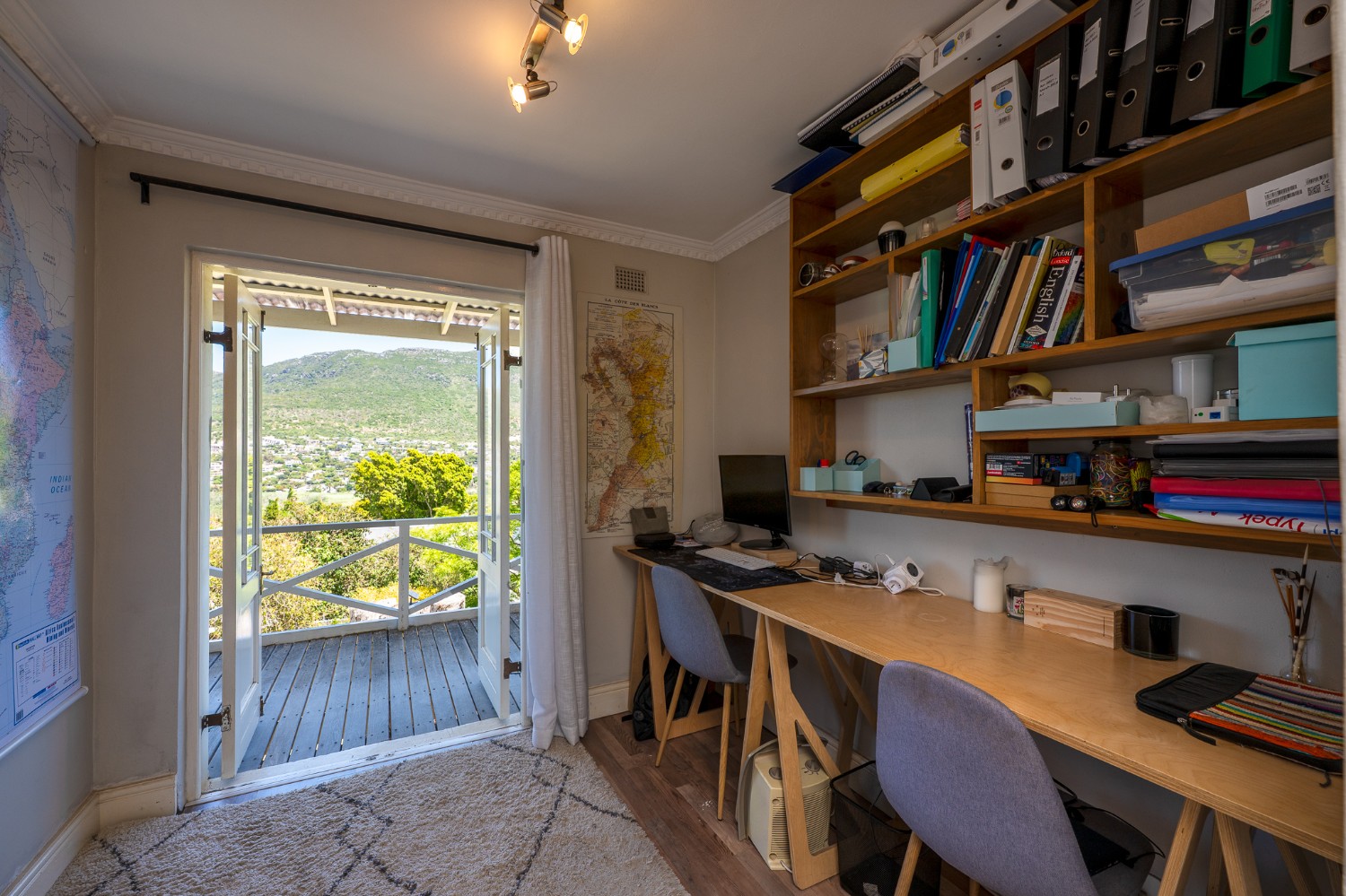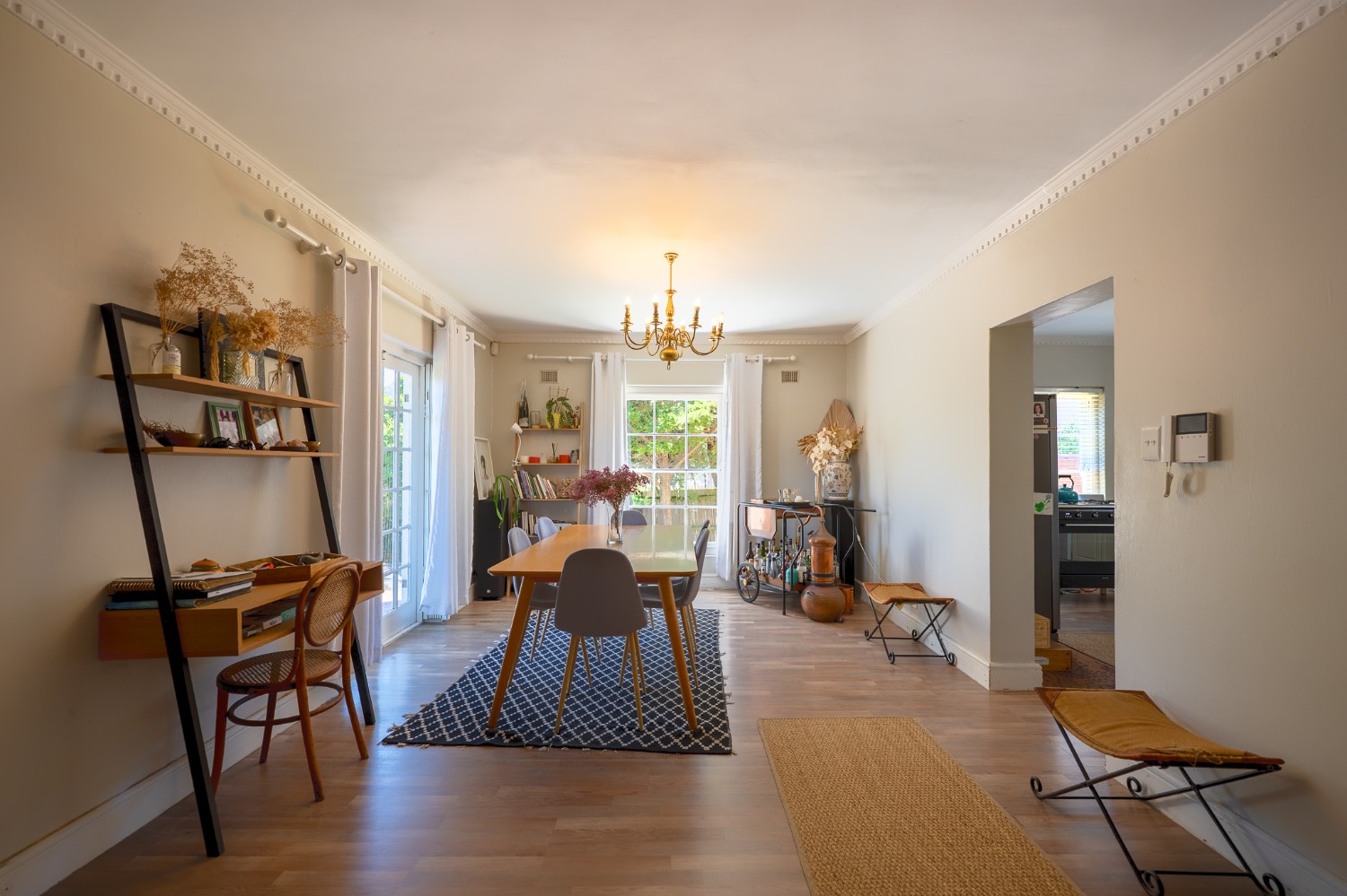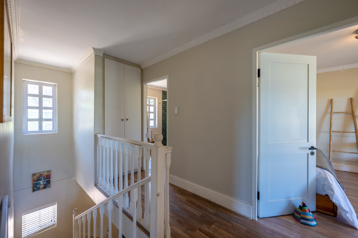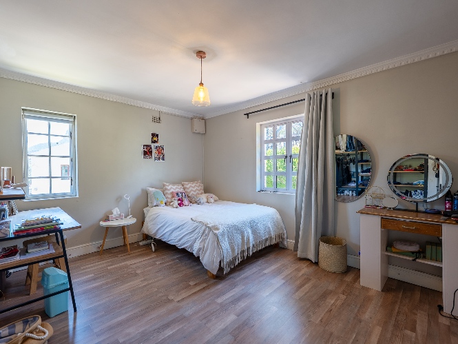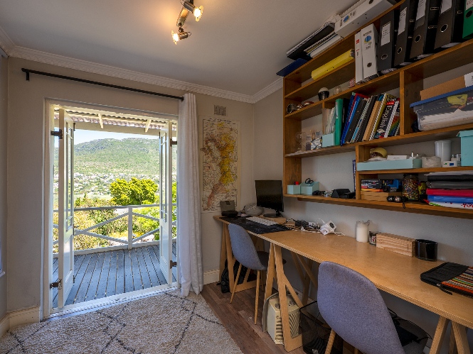 The home features four well-sized bedrooms, one of which has been converted into a study and opens onto a balcony—perfect for working from home or enjoying a quiet morning coffee. The bedrooms share a neat family bathroom.