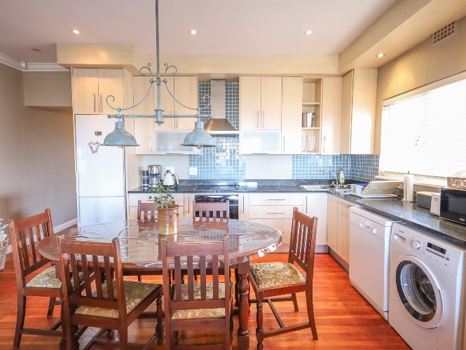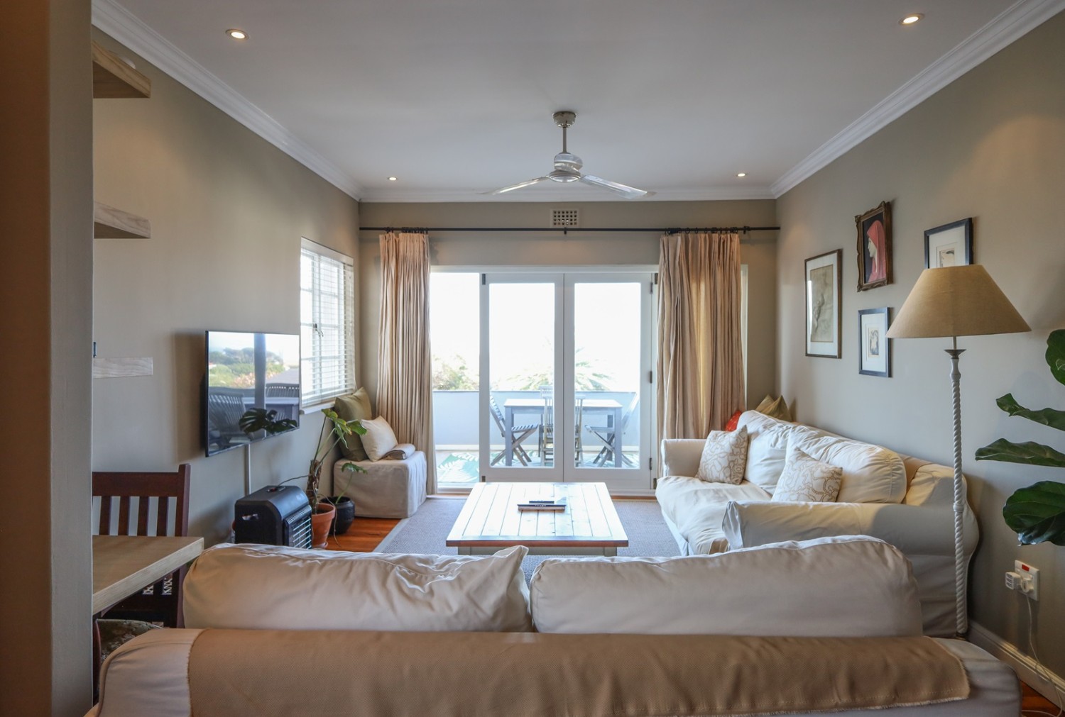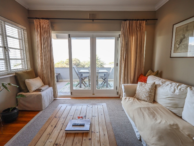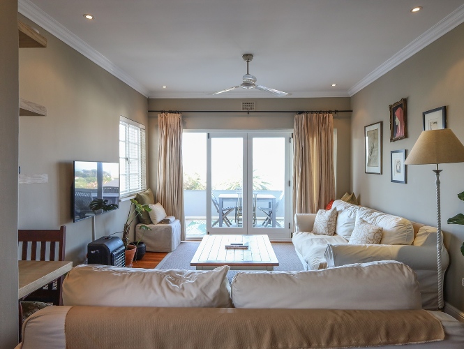 Large stacker doors open out onto a generous balcony, where you can enjoy beautiful sea views and mountain views—the perfect setting for relaxation or entertaining.