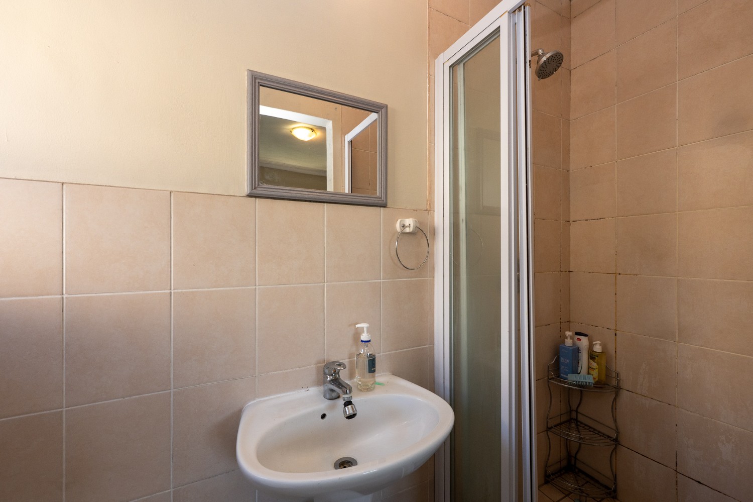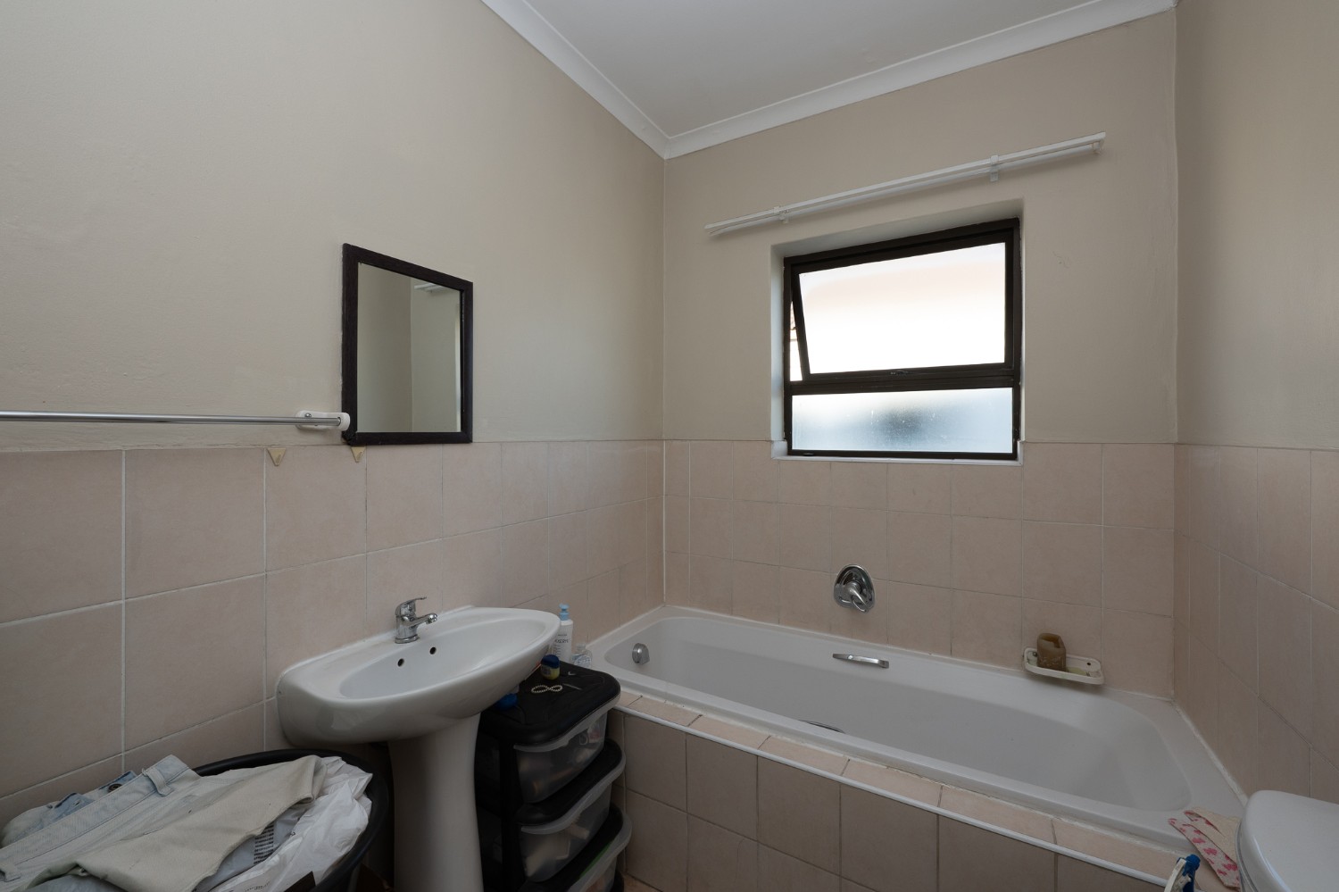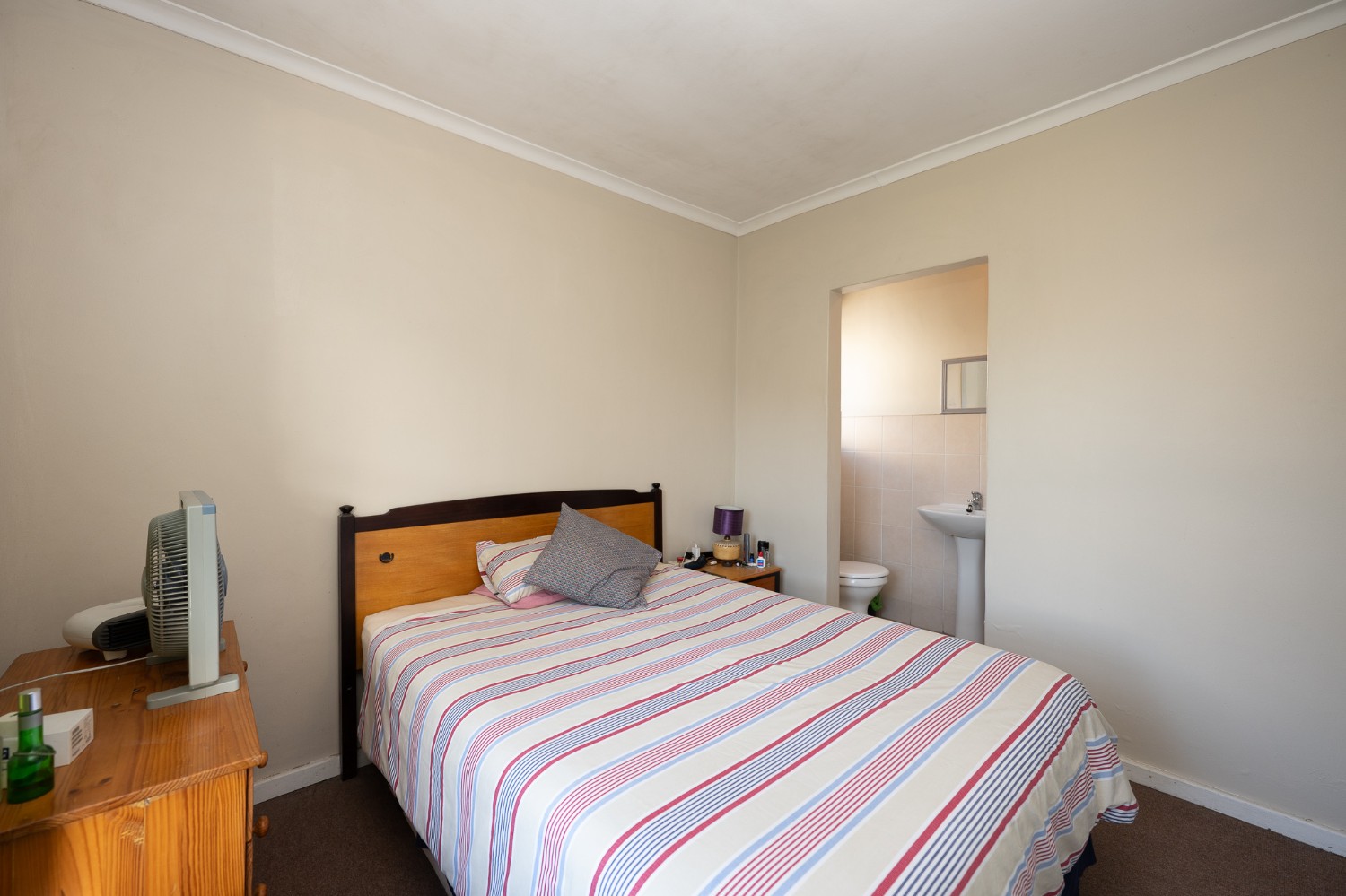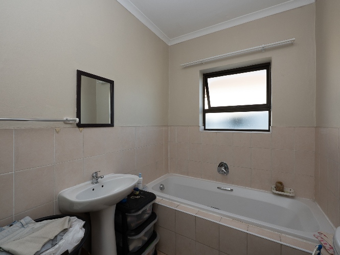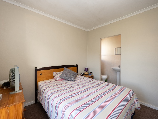 There are two well-sized bedrooms, both complete with built-in cupboards. The master bedroom has the added benefit of an en-suite bathroom for extra privacy and convenience. The family bathroom is equipped with a bathtub, basin, and toilet.