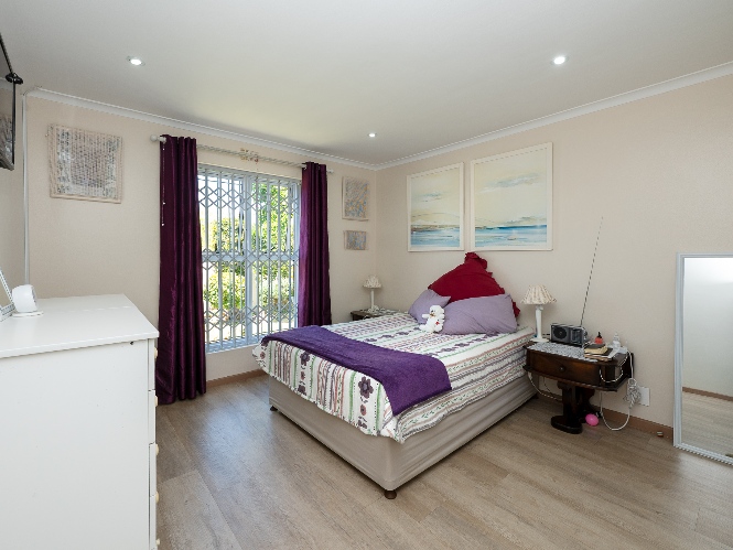 Outside, the property offers low-maintenance garden spaces, an open braai deck on the porch, and a single automated garage with a wooden back door and Trellidor for added security.