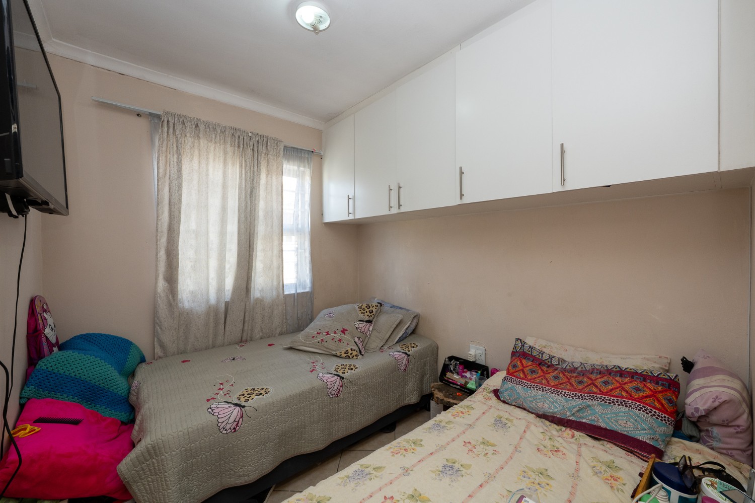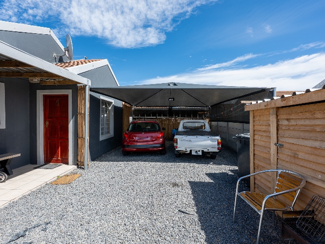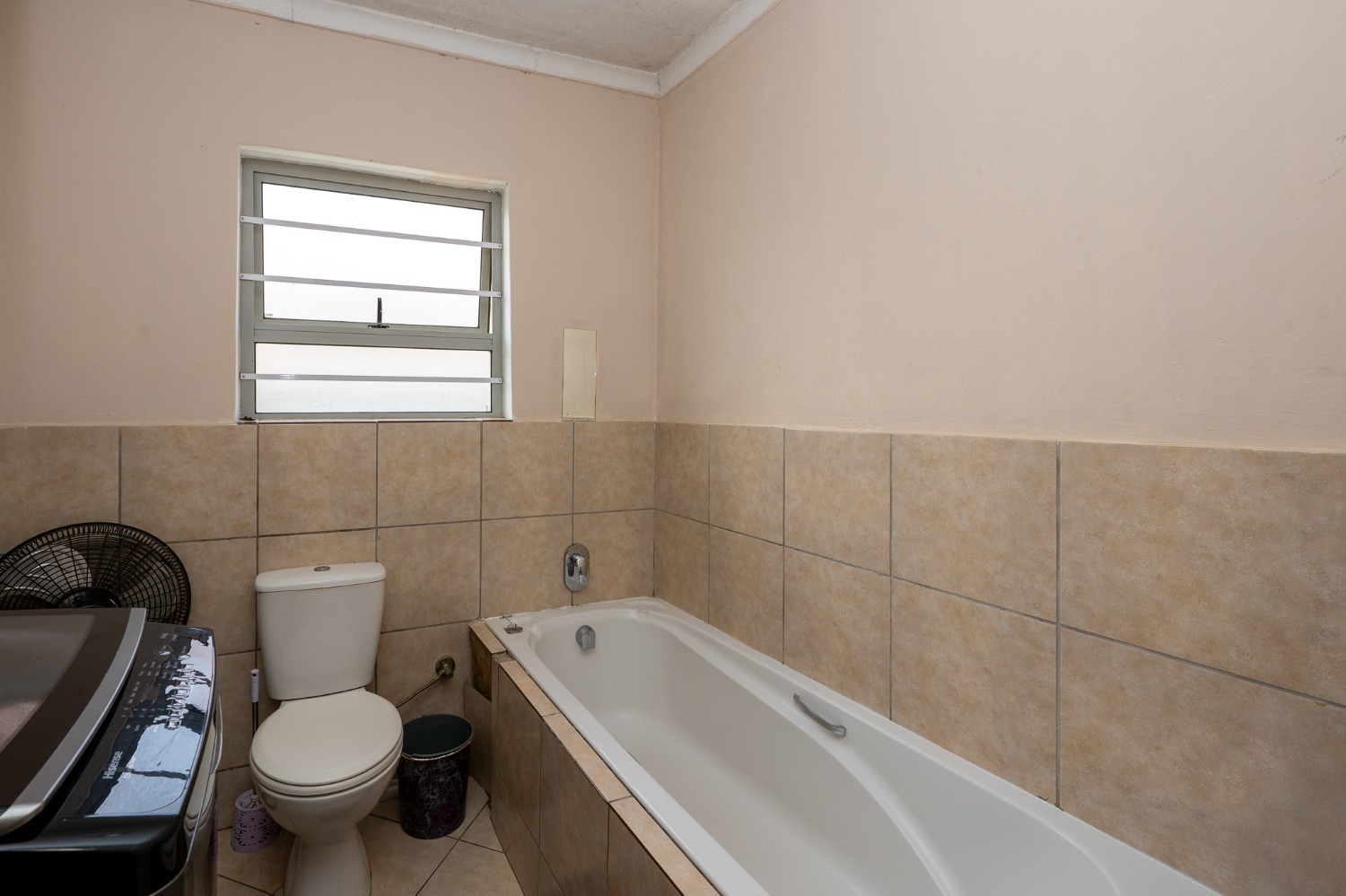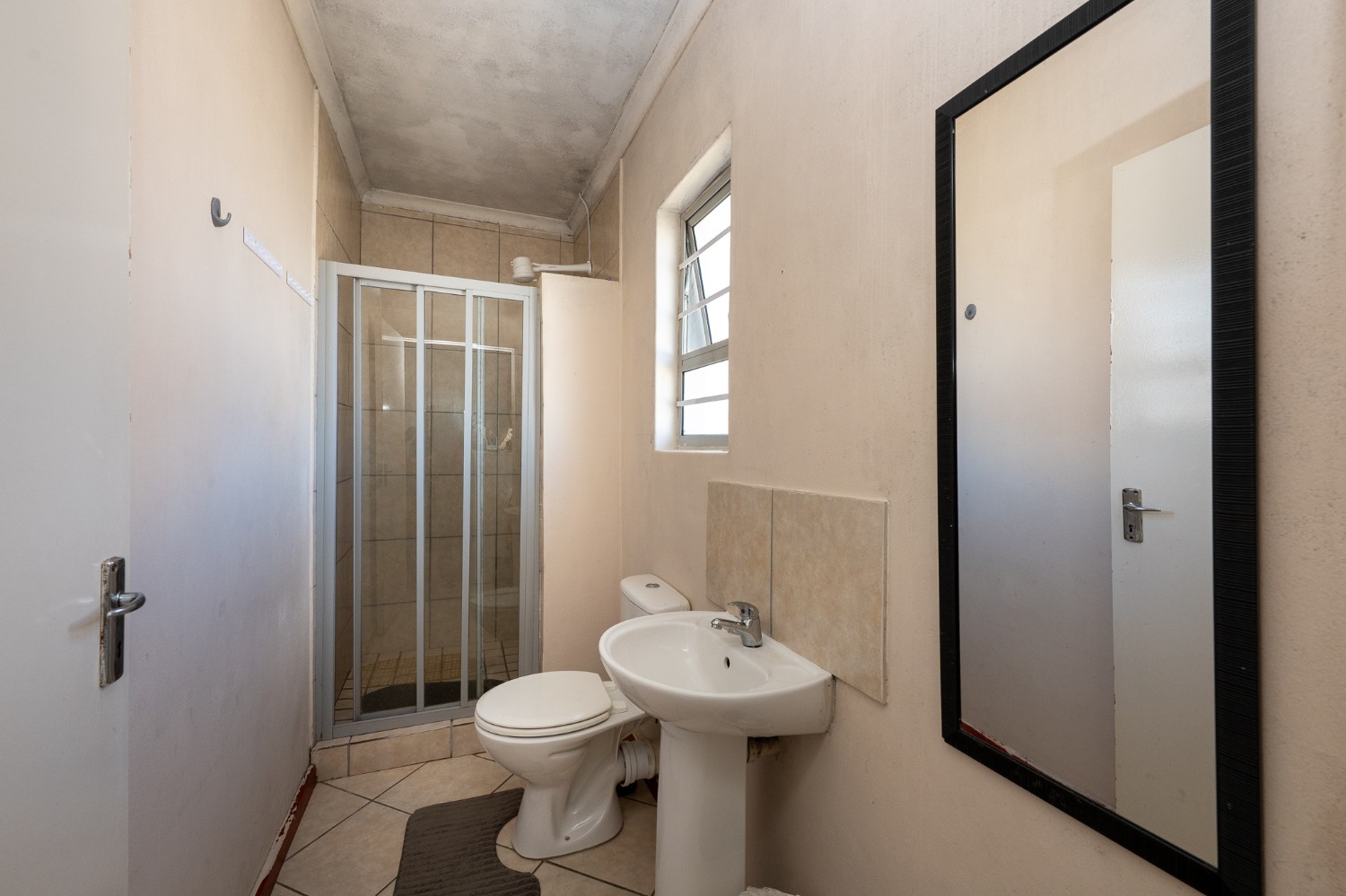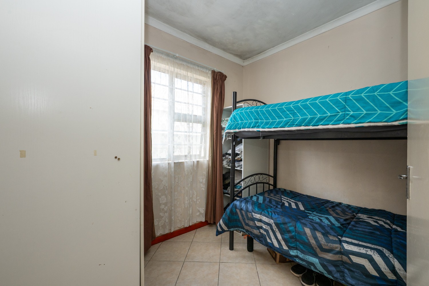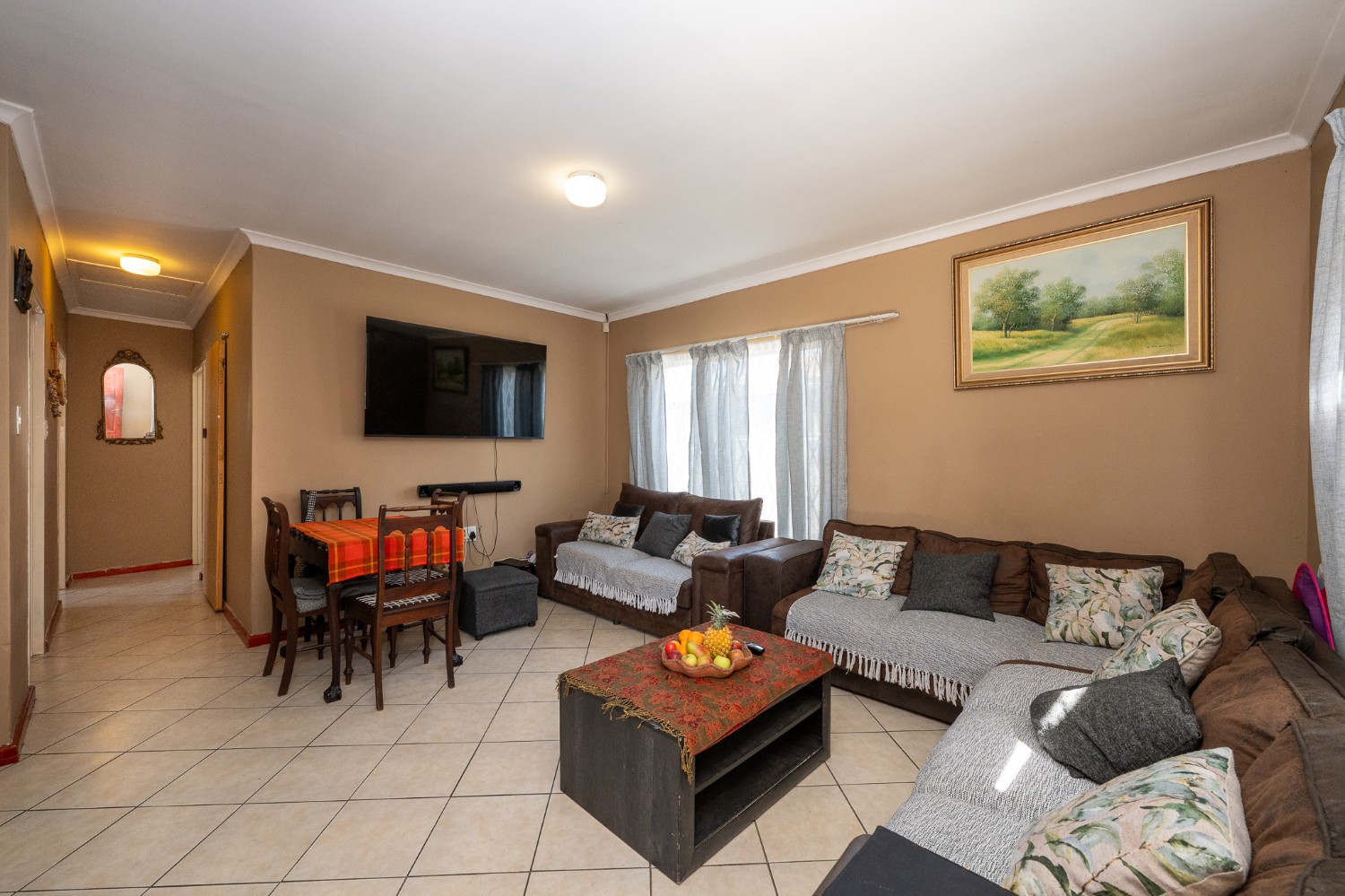 The home features 3 tiled bedrooms (2 without built-in cupboards) and 2 bathrooms. The main bathroom includes a bath and a water point, while the main en-suite is fitted with a shower. Security is well catered for with burglar bars throughout.