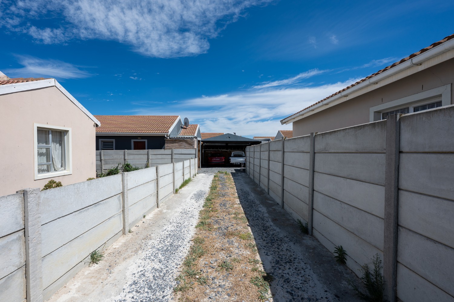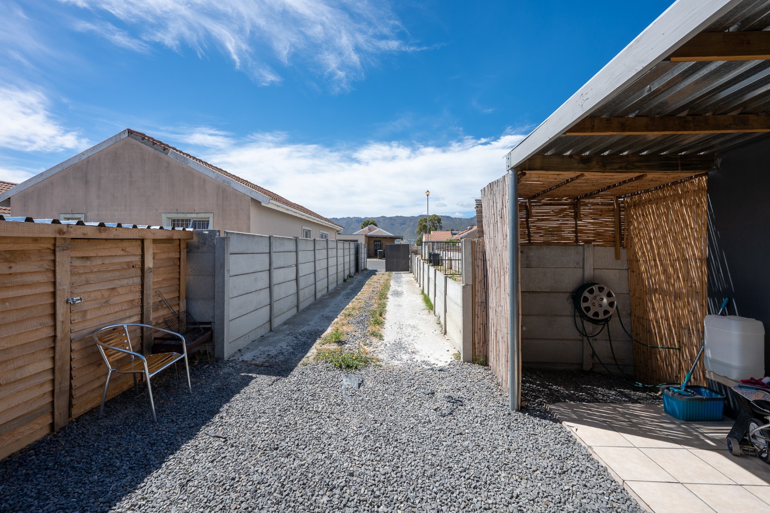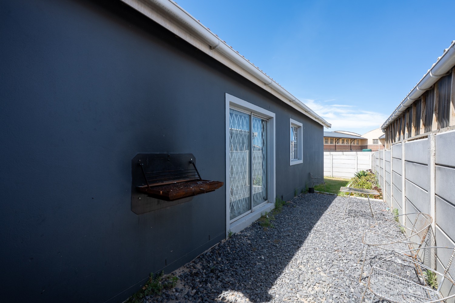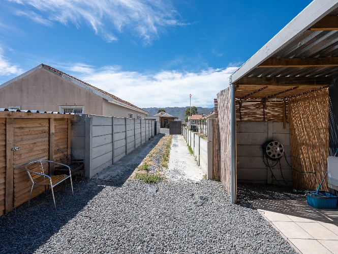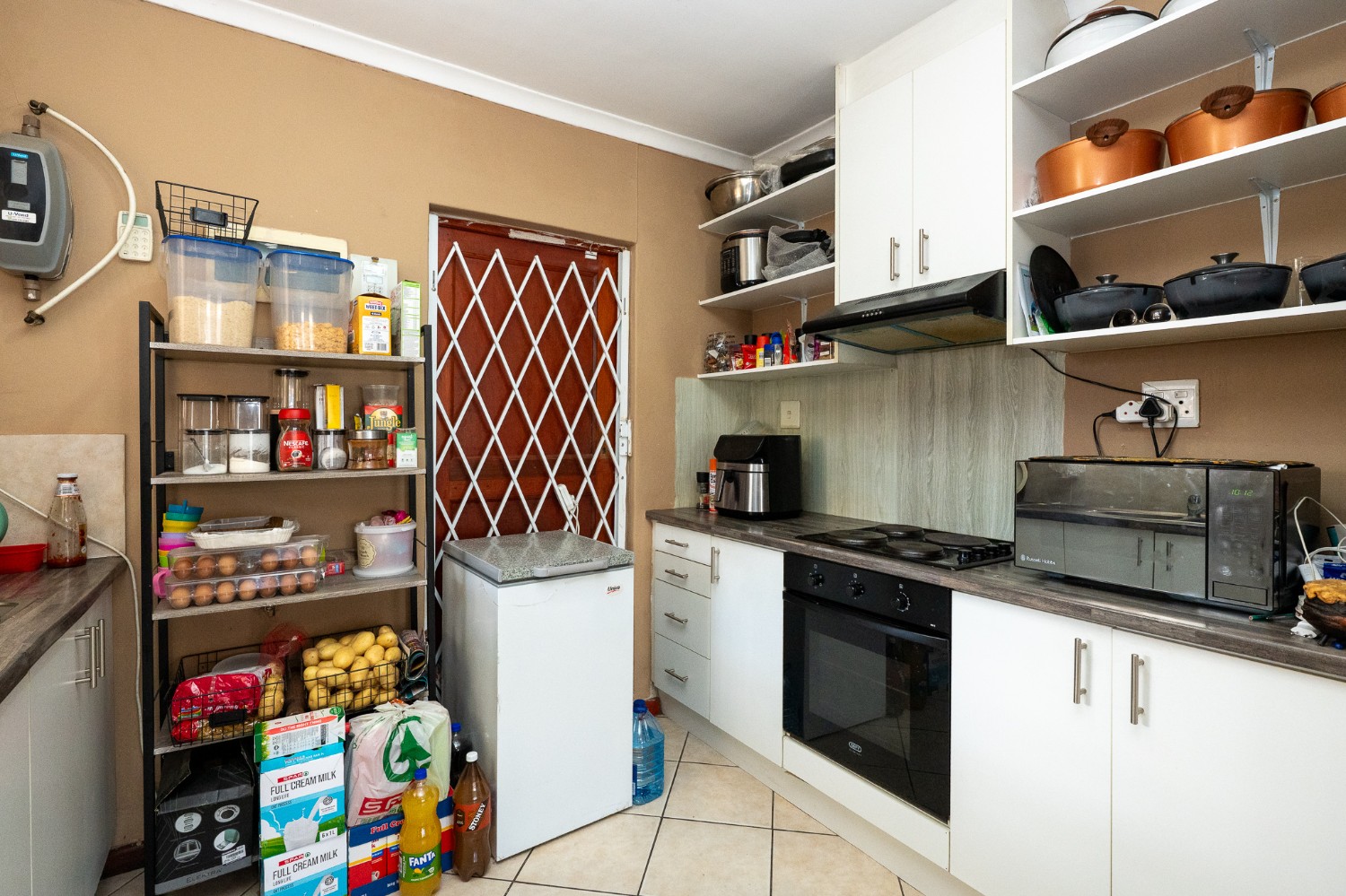 The open-plan lounge flows seamlessly through a security sliding door to the garden, creating a lovely indoor-outdoor feel. The kitchen offers a double sink and direct access to the courtyard for added practicality.