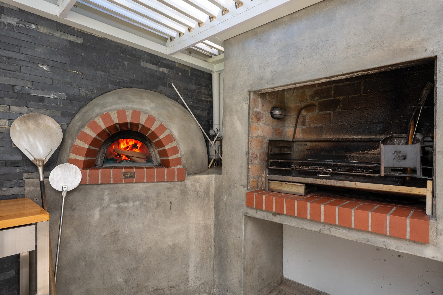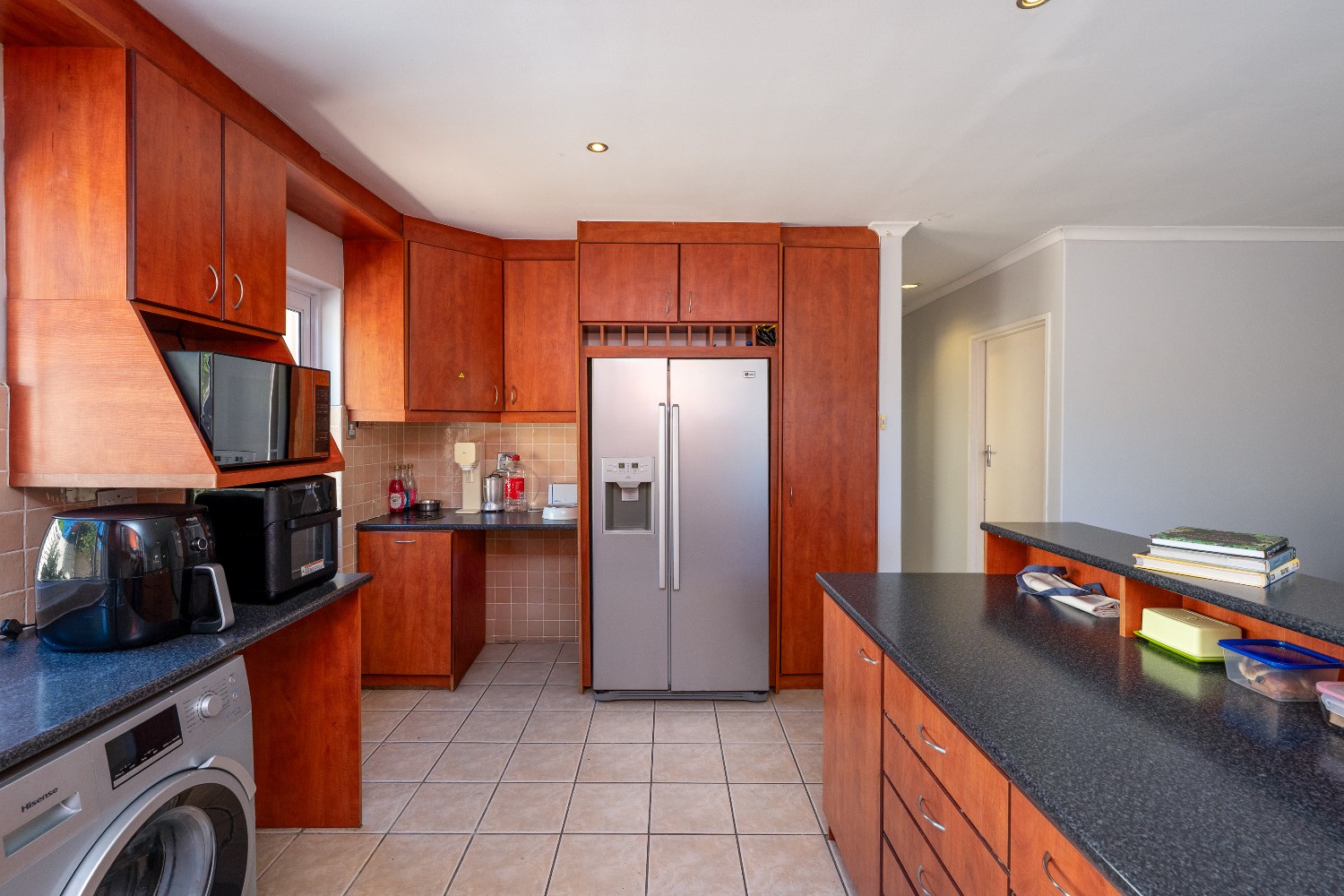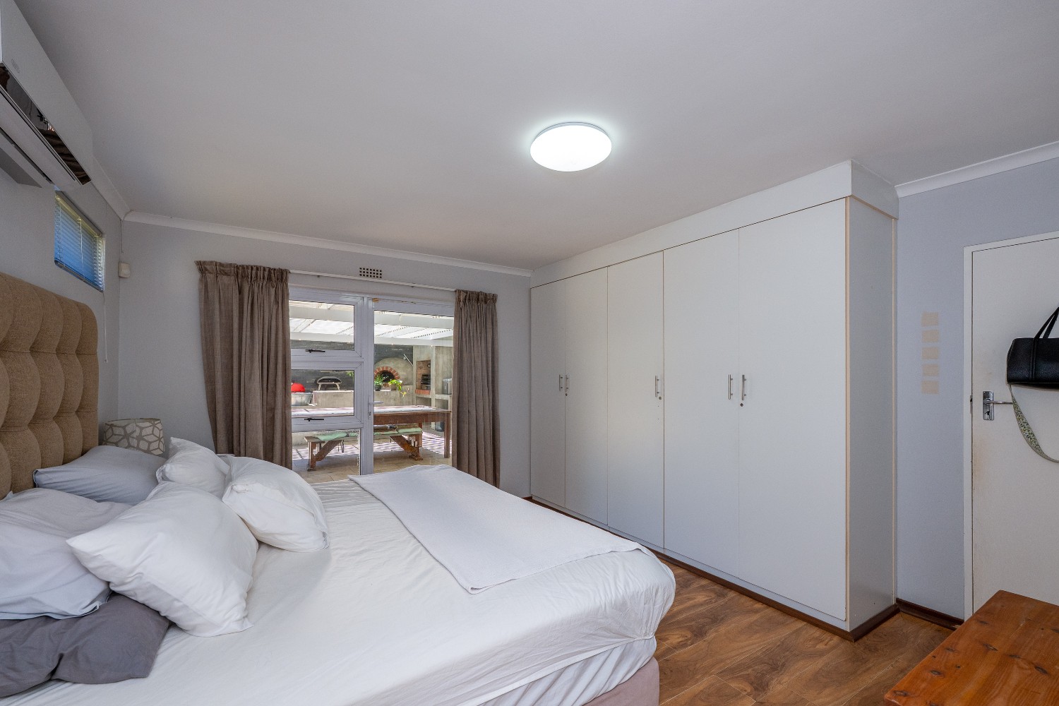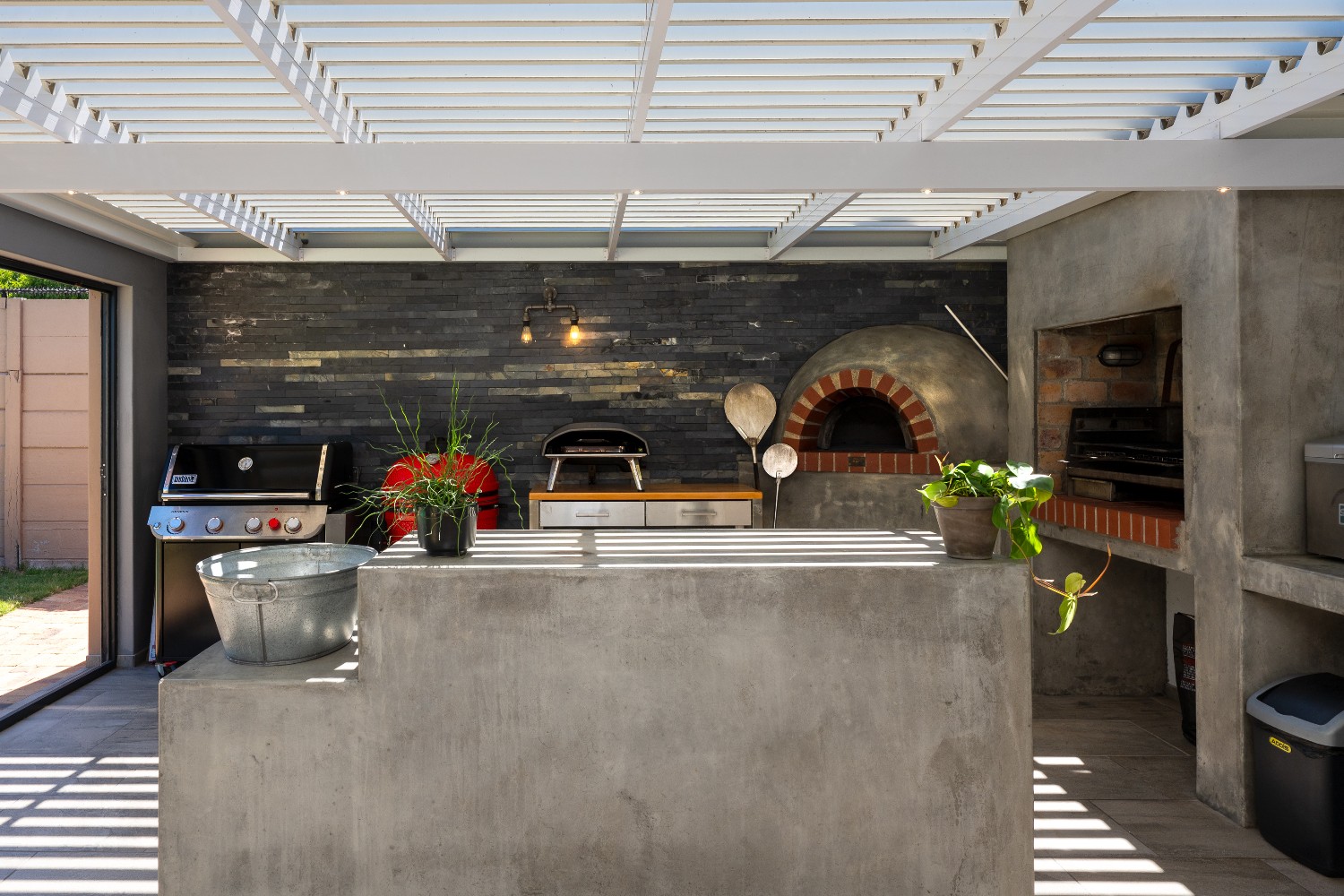 At the heart of the home is a massive 49m² enclosed braai and entertainment room, making this property a true entertainer’s delight. This impressive space boasts adjustable louvres, stacker doors, a built-in braai, pizza oven, and a built-in bar with bar fridge, seamlessly opening onto a private, expansive garden and sparkling swimming pool—perfect for hosting all year round.