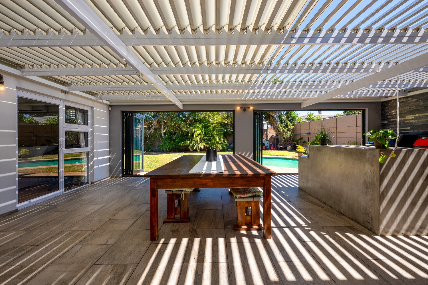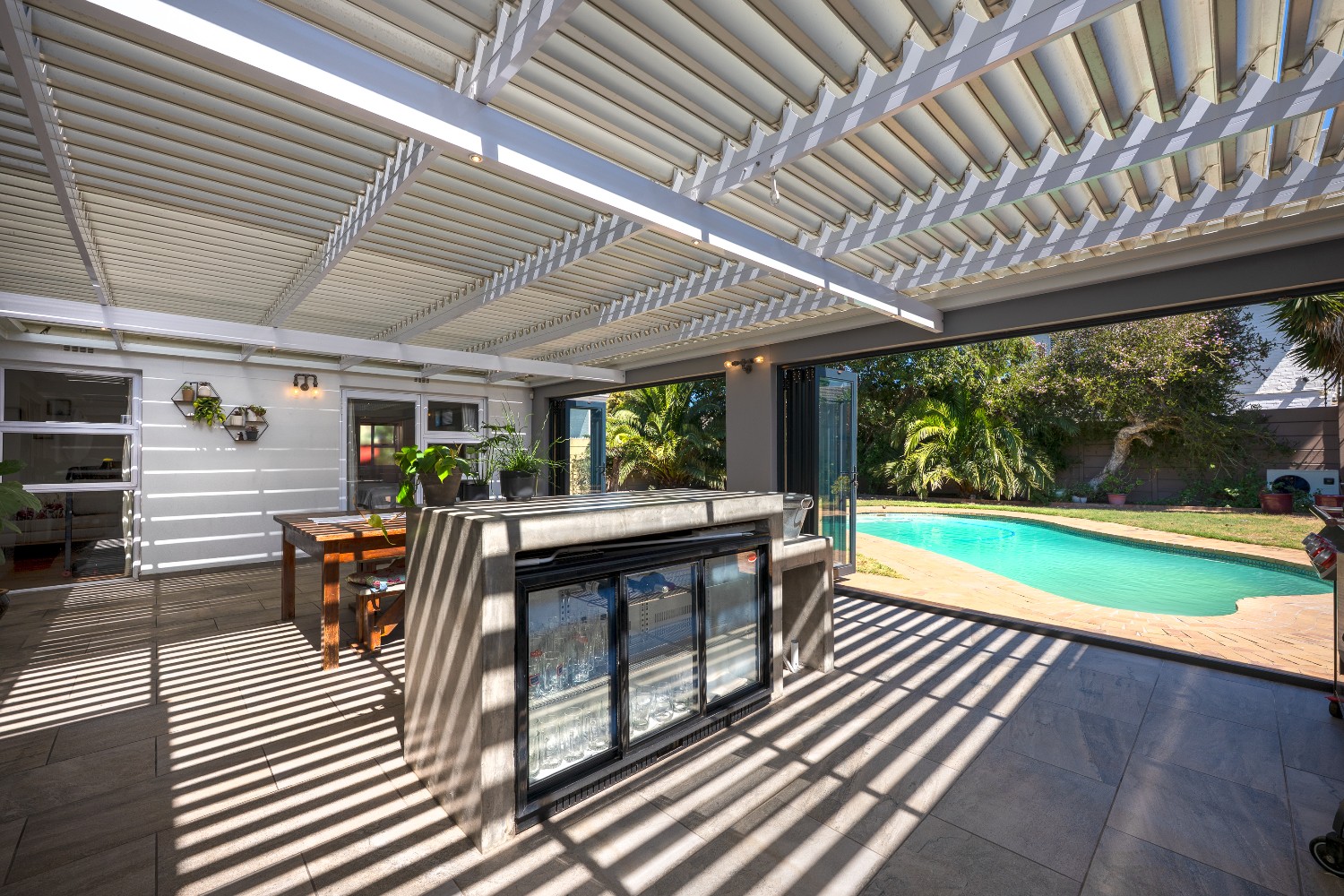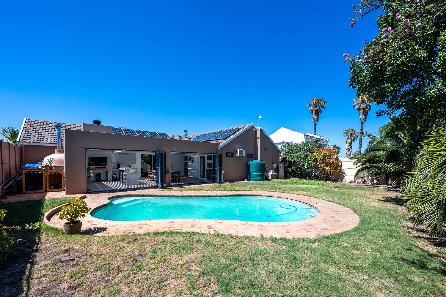 Additional features include a double automated garage, CCTV security system, and a thoughtfully implemented smart-home setup. WiFi-enabled lighting, geyser, pool pump, and pool heat pump are already installed, along with a Google Nest Hello (wired) video doorbell. These systems can be used immediately via their native apps, or centrally integrated using HomeAssistant, allowing a new owner to manage lighting, security, pool equipment, and energy usage from a single platform if desired.