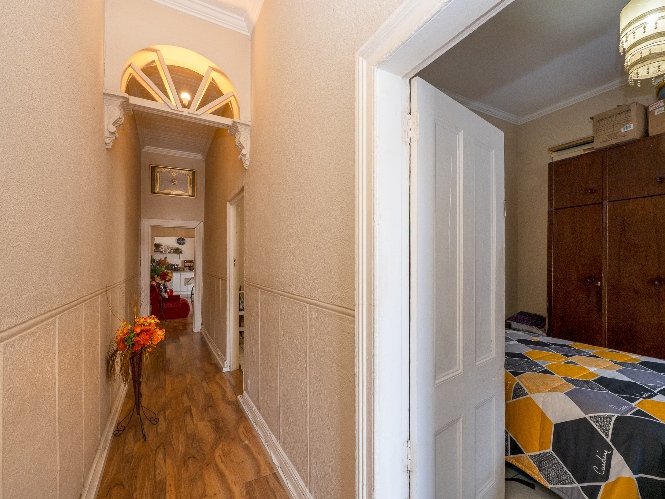 Both bedrooms offer built-in cupboards and share a well-kept family bathroom.