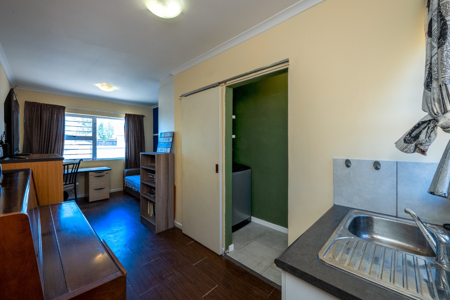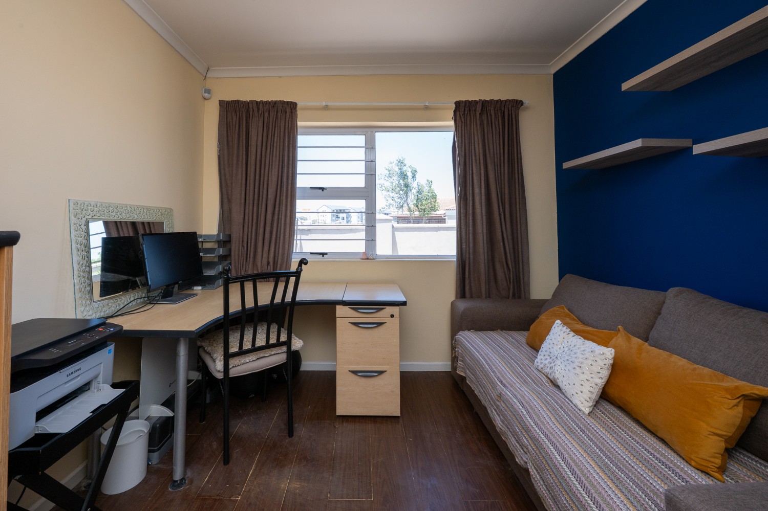 All three bedrooms include built-in cupboards, providing convenient storage. The third bedroom lends itself to various uses, with the option to be converted into a separate flatlet. The main bedroom boasts an en-suite bathroom, ensuring added comfort and privacy.