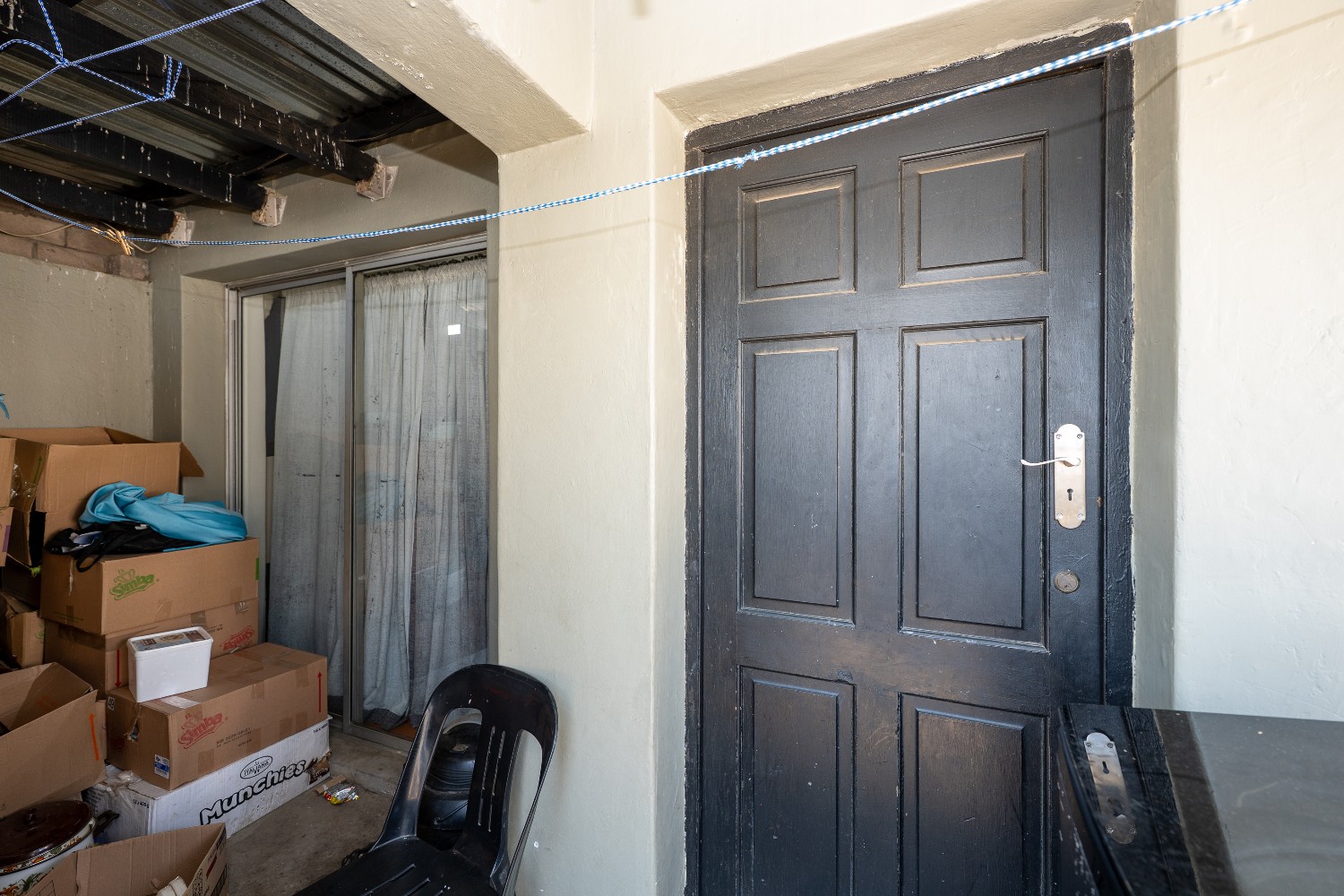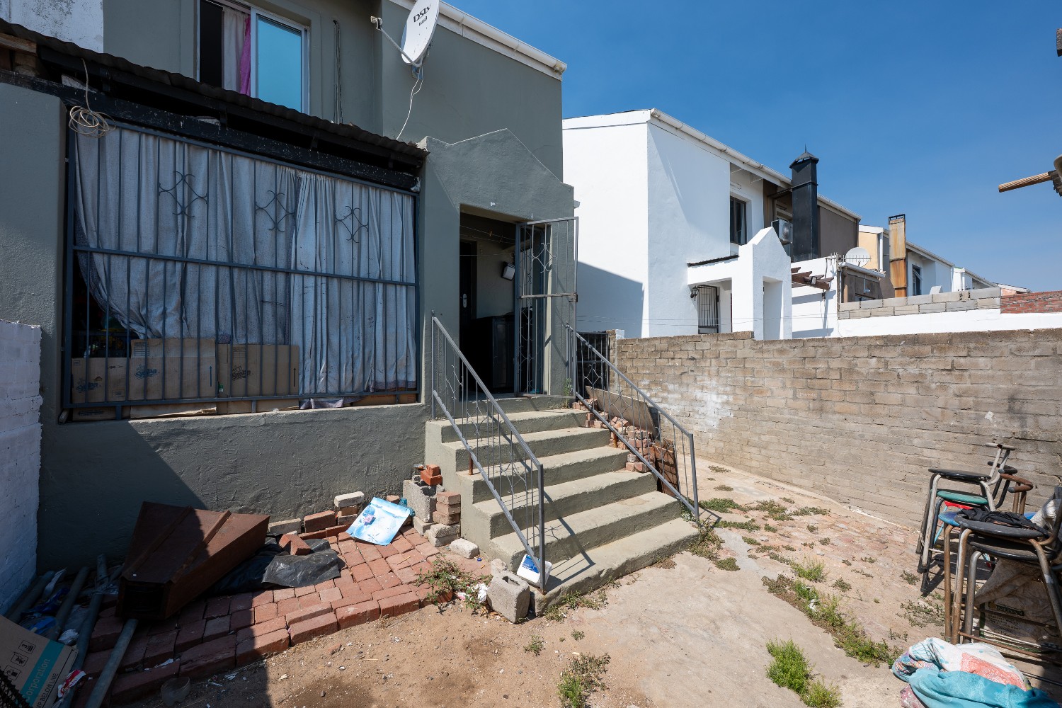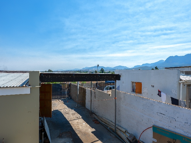 The main home offers four well-sized bedrooms in total. Downstairs, you’ll find 2 tiled bedrooms leading through to a neat kitchen with ample cupboard and counter space, free-standing stove, and direct access to the backyard with washing lines and an outside braai area, ideal for family gatherings.