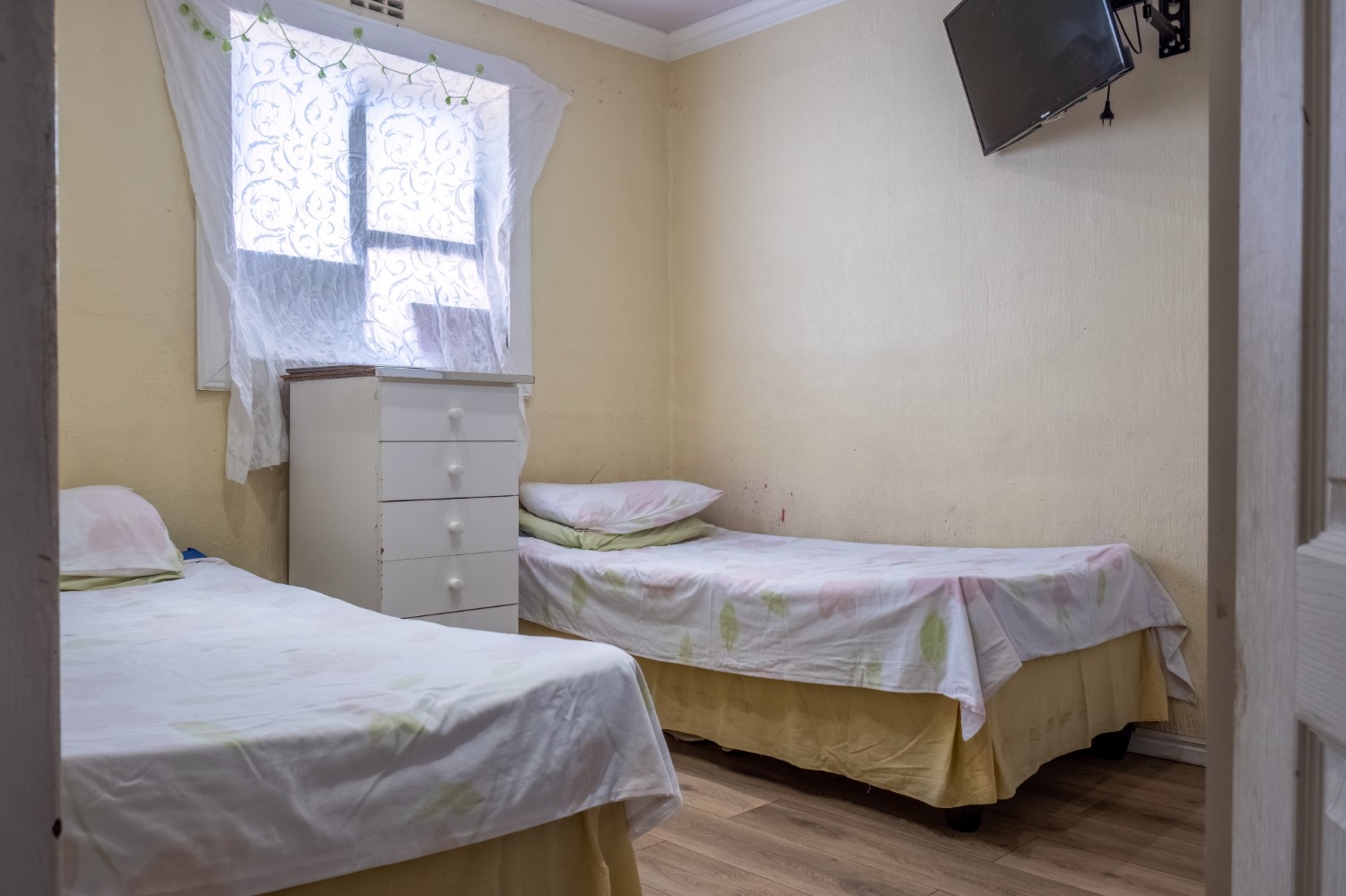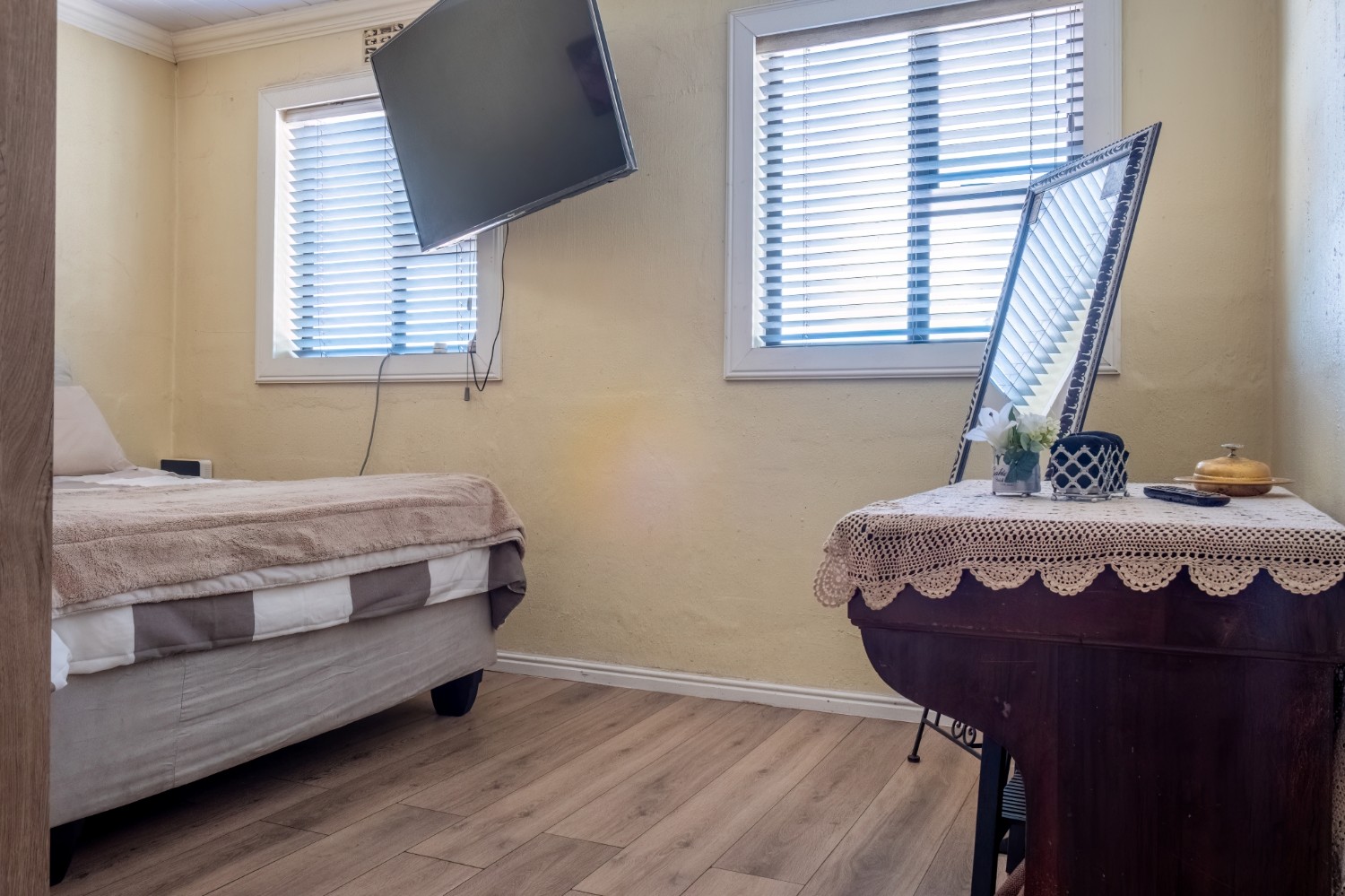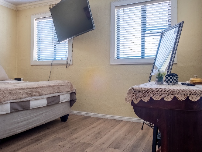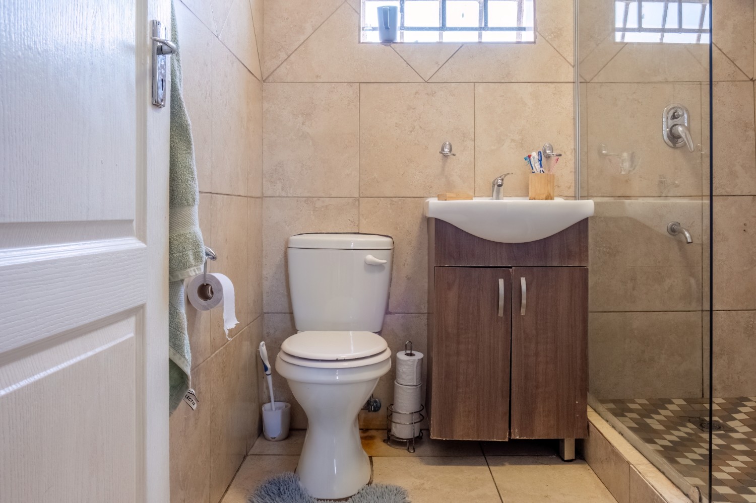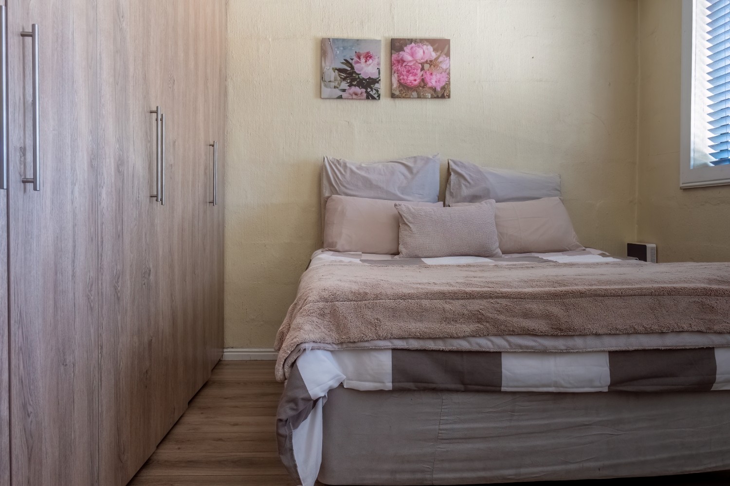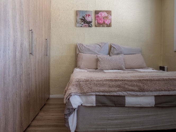 The home features two well-sized bedrooms, both offering built-in cupboards, and they share a neat family bathroom.