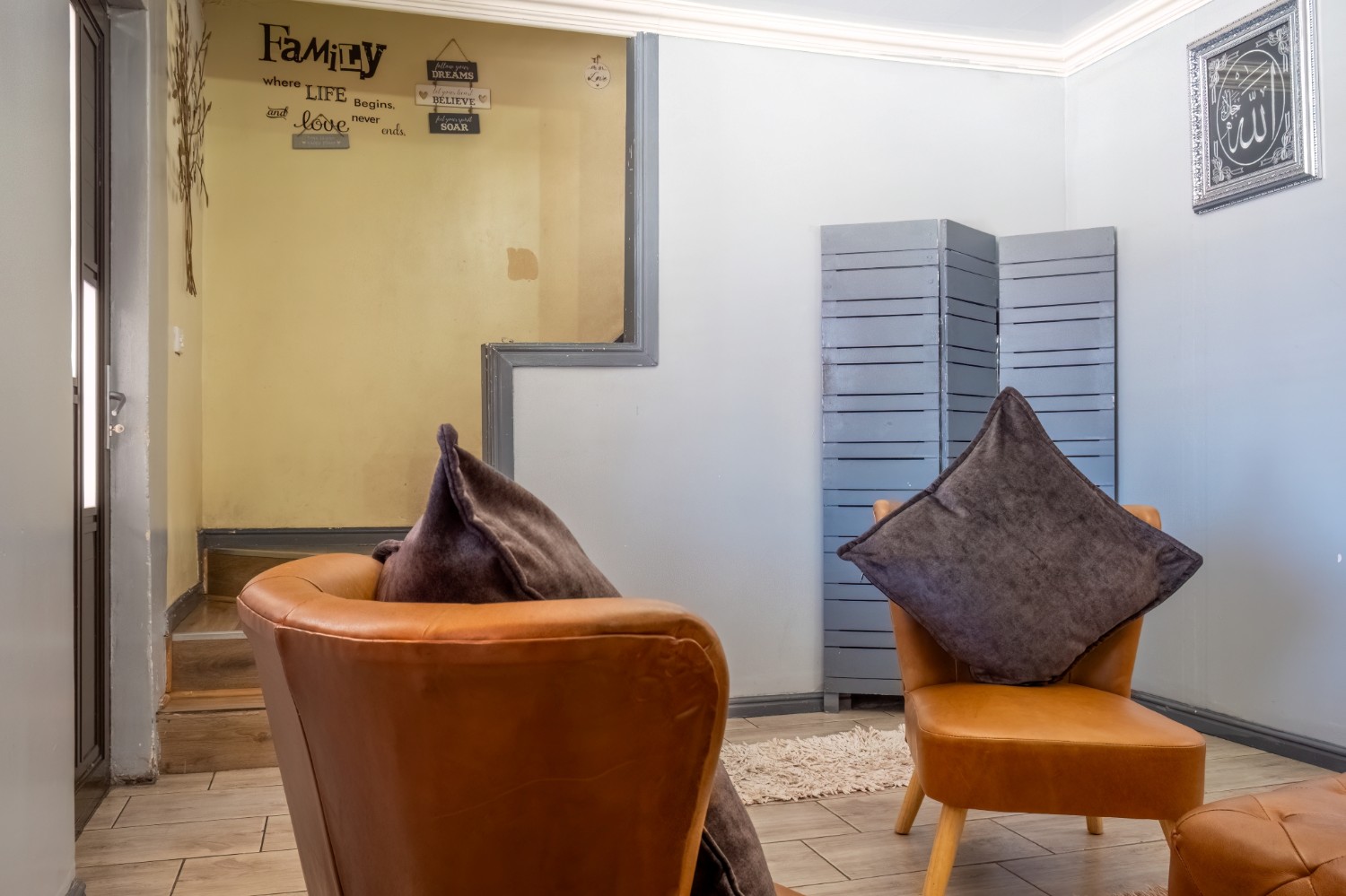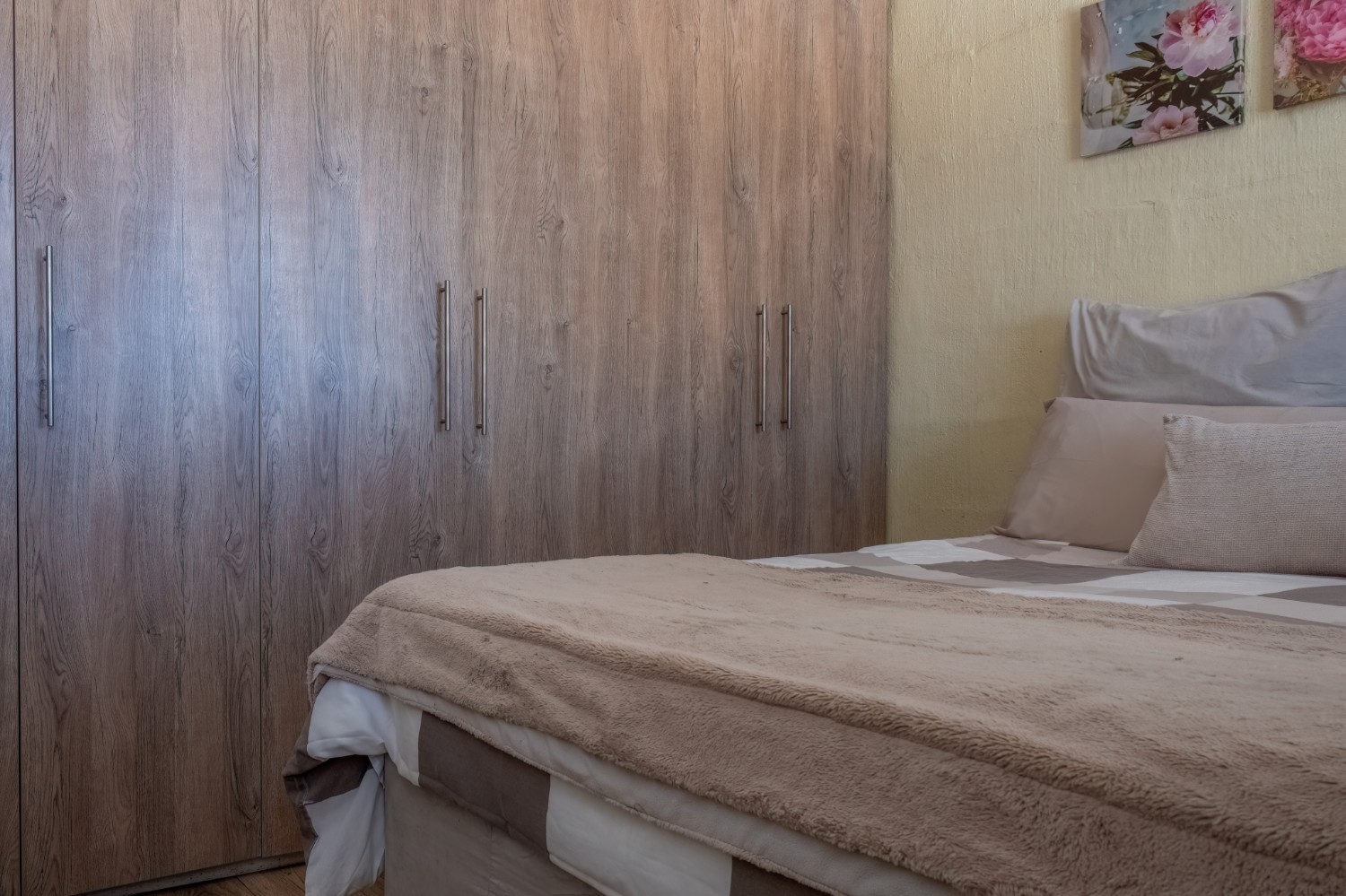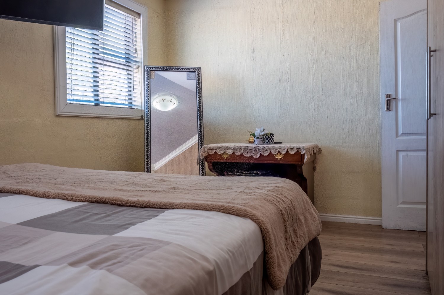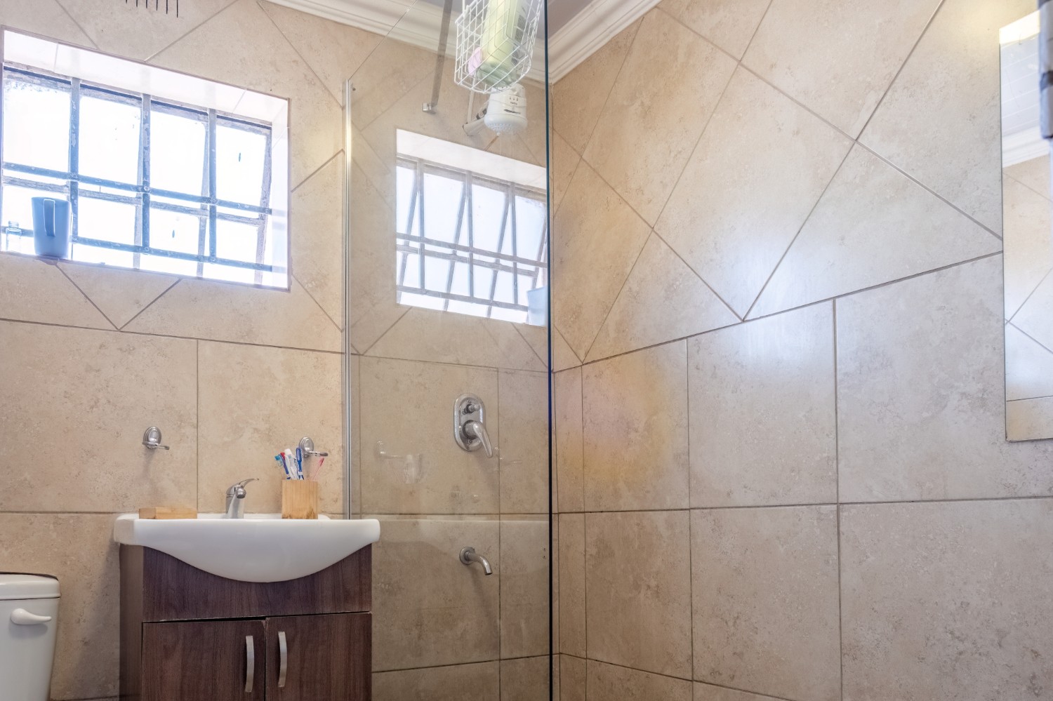 The home features two well-sized bedrooms, both offering built-in cupboards, and they share a neat family bathroom.