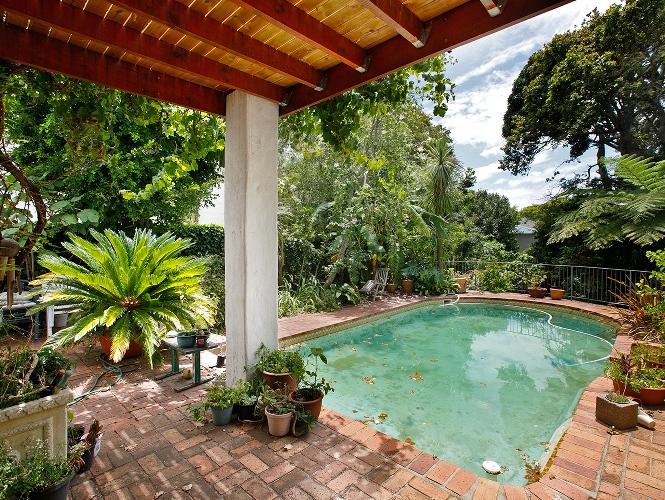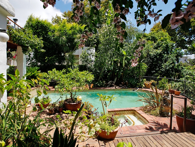 North-facing living areas flow effortlessly onto a lush, private garden where a sparkling swimming pool is framed by tropical planting. Beyond the garden, the perennial Soetwater River winds gently past the property, offering a rare and peaceful natural backdrop—ideal for quiet mornings, yoga, or simply unwinding to the sound of flowing water.