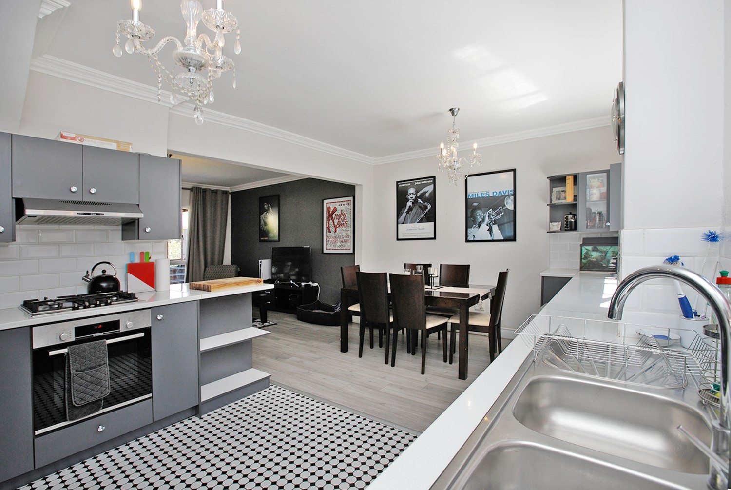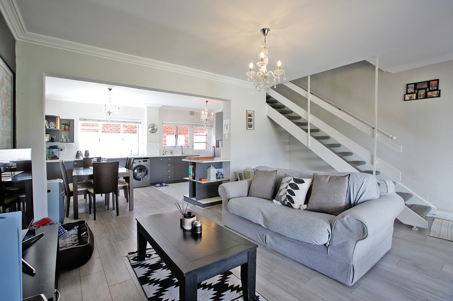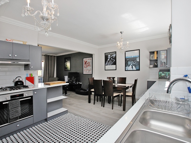 Beautiful open-plan lounge / dining room and kitchen with vinyl floors. The kitchen has a washing machine point and gas hob, electric oven and extractor and a courtyard for laundry.