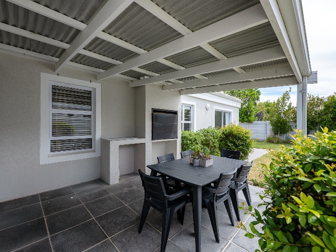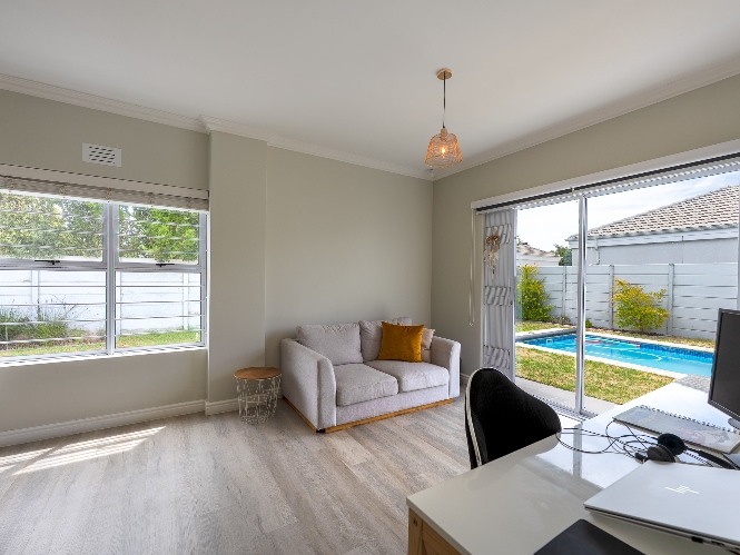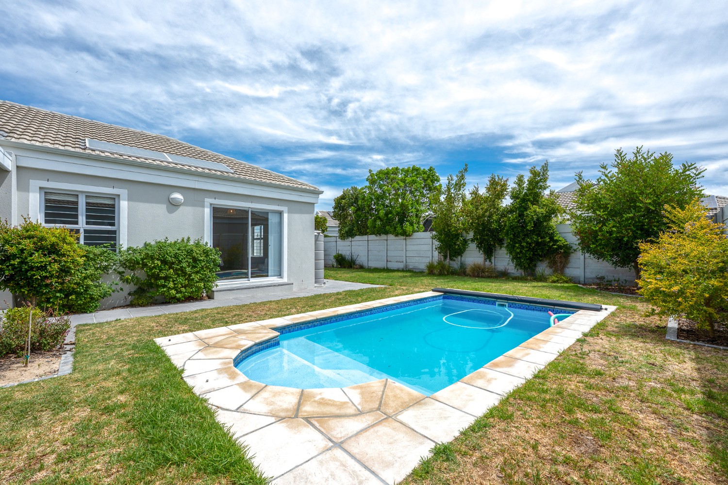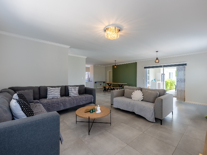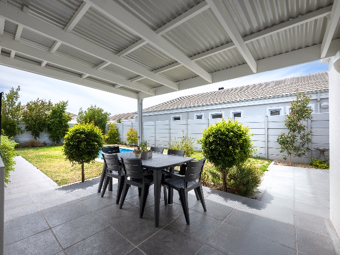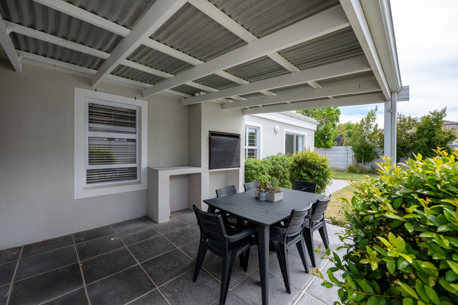 The indoor-outdoor living is a standout, with a covered patio and built-in braai, ideal for entertaining.