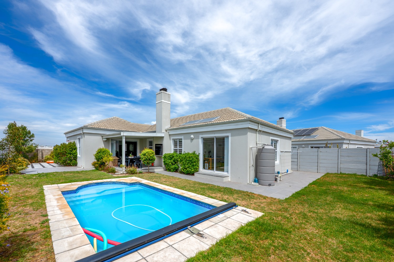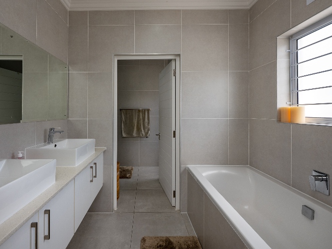 Additional features include a double automated garage, alarm system, burglar bars, security gates, and solar geyser, ensuring both security and energy efficiency.