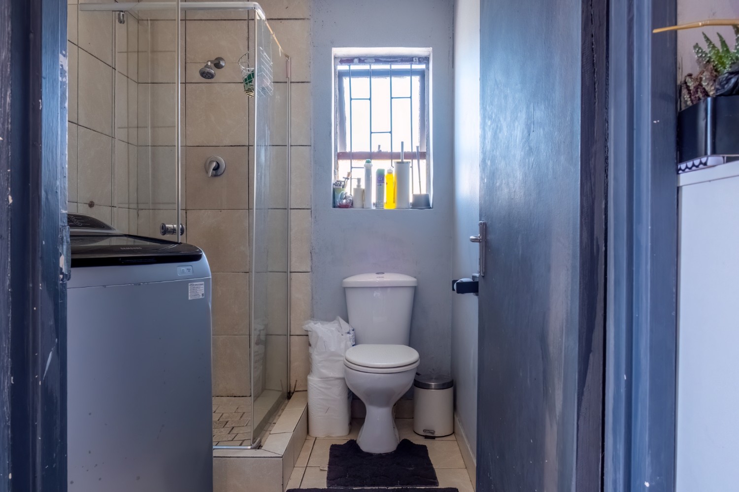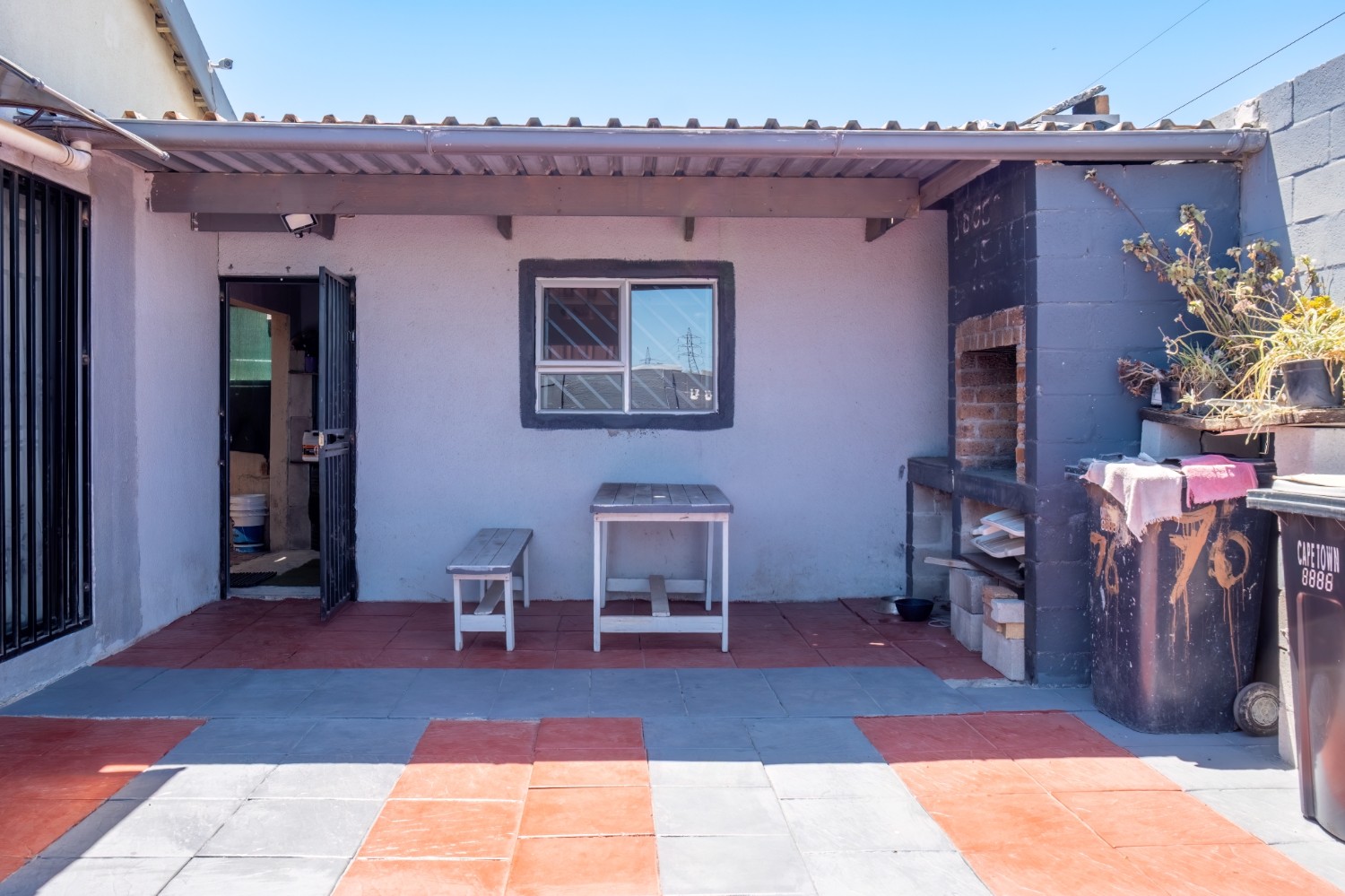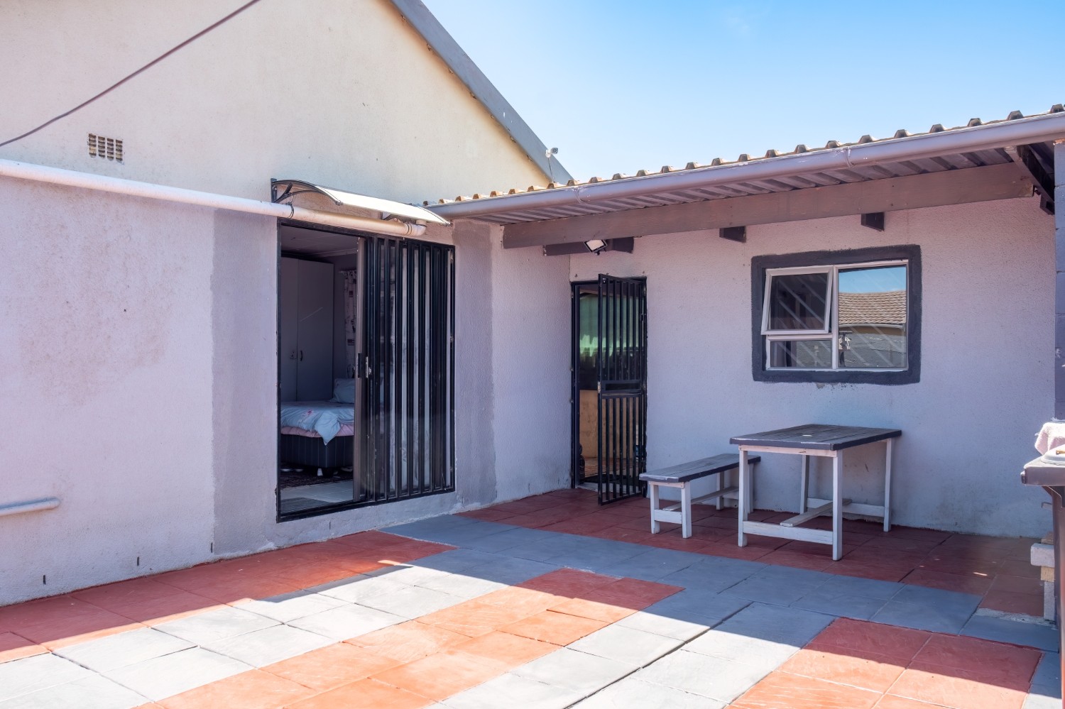The home features three well-sized bedrooms with built-in cupboards, ideal for a growing family. The main bedroom is a standout, complete with a sliding door leading to the outdoor braai area as well as an en-suite bathroom. The main bathroom is neatly finished and fitted with a bathtub, basin, and toilet.