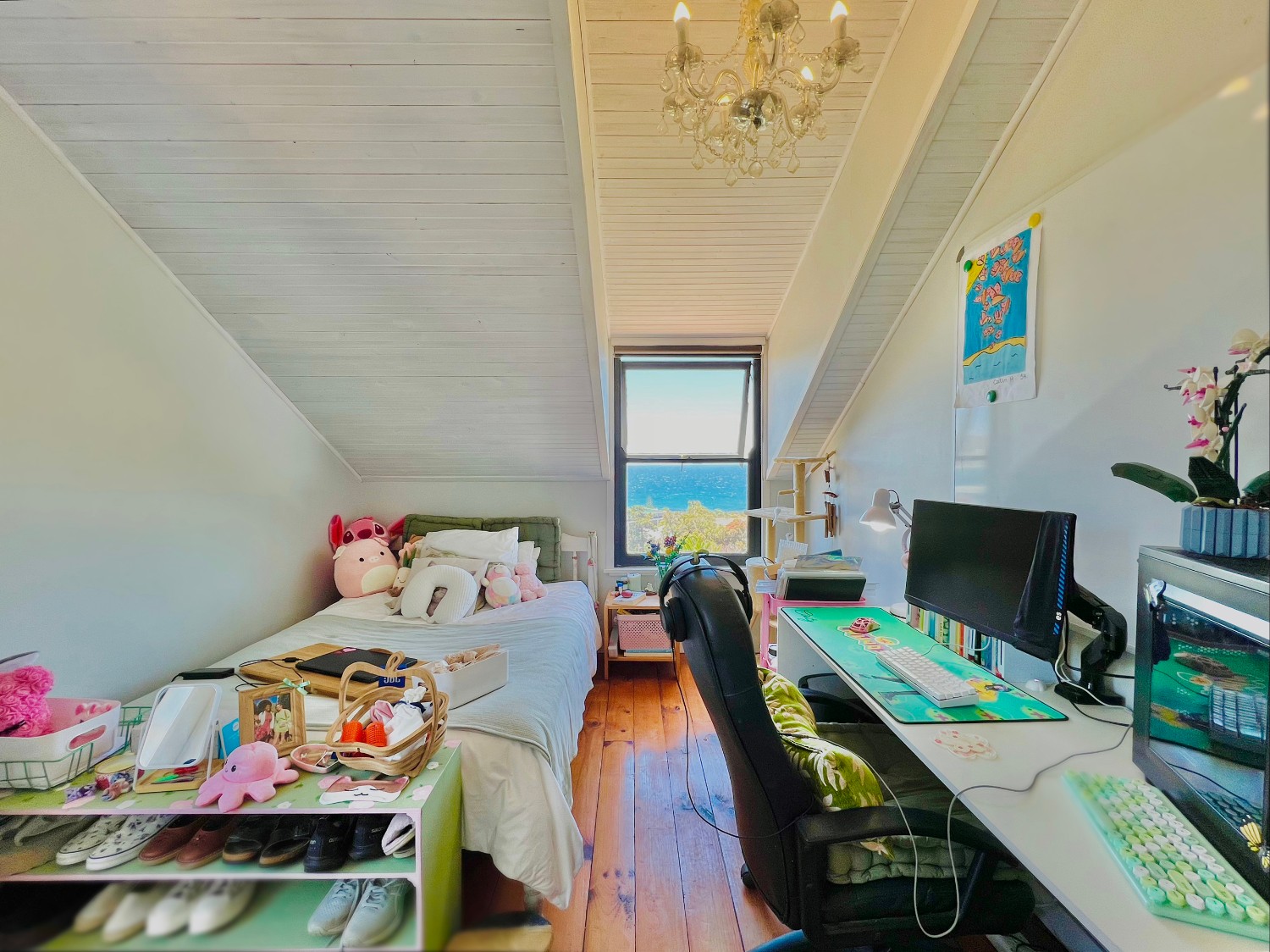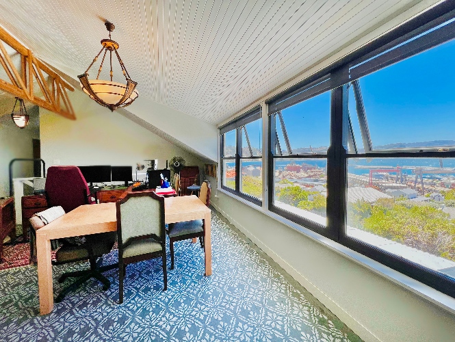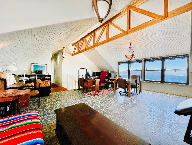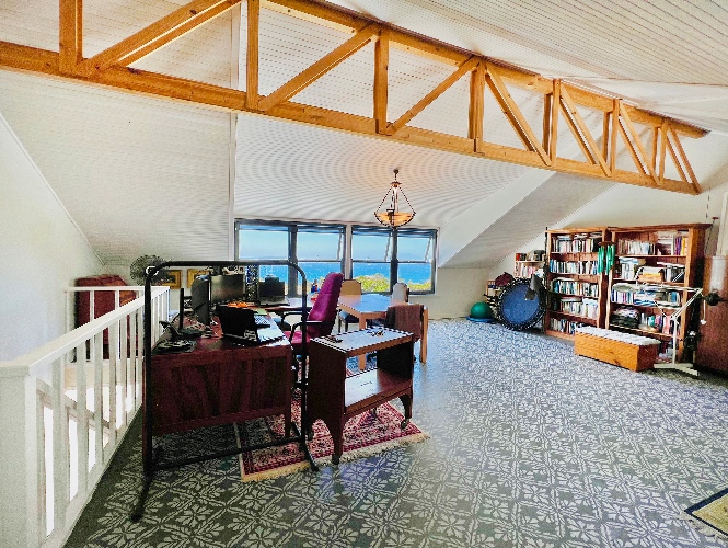 Upstairs features a large open lounge space with vaulted ceilings and dormer windows overlooking the mountainside, as well as over the bay - and it is large enough to also be able to accommodate dining area, as well as a kitchen - if necessary to provide for a separate living space.