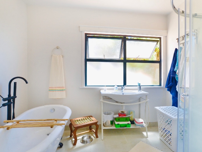 The phenomenal views are also on offer from the 3 bedrooms downstairs (2 of which currently operate as a combined annex space, but can easily be walled up to create 2 separate bedrooms). The downstairs bathroom has been renovated to include a separate freestanding bath, as well as a corner shower, and there is a separate toilet which has an Eco-tank supply system.