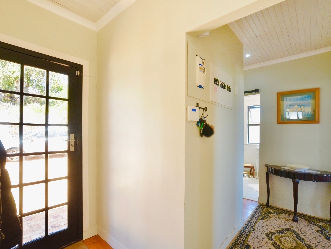 The ground floor of the house exhibits a front row seat to the exquisite view of the bay – which is visible from the lounge, dining area and (most prominently) the sunroom. The sunroom is sectioned off from the lounge with the use of collapsable security louvres, ensuring peace of mind while still being able to maintain the presence of the landscape (and for added security, there is a CCTV system, as well as an alarm).
