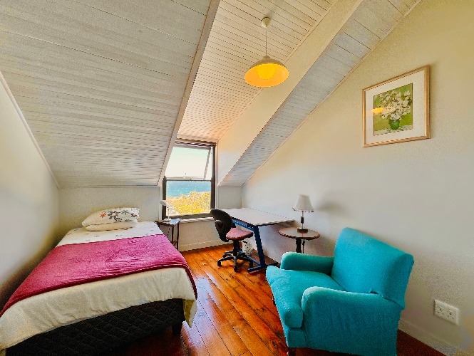 Further, there are two bedrooms (with built-in cupboards) with great views over the harbour, and they share a shower-bathroom and toilet (also with an Eco-tank).