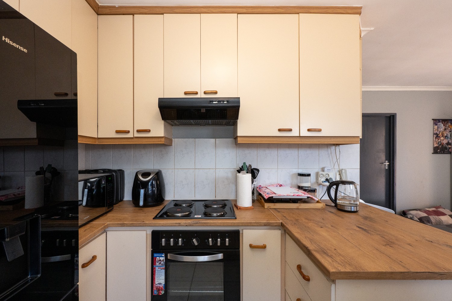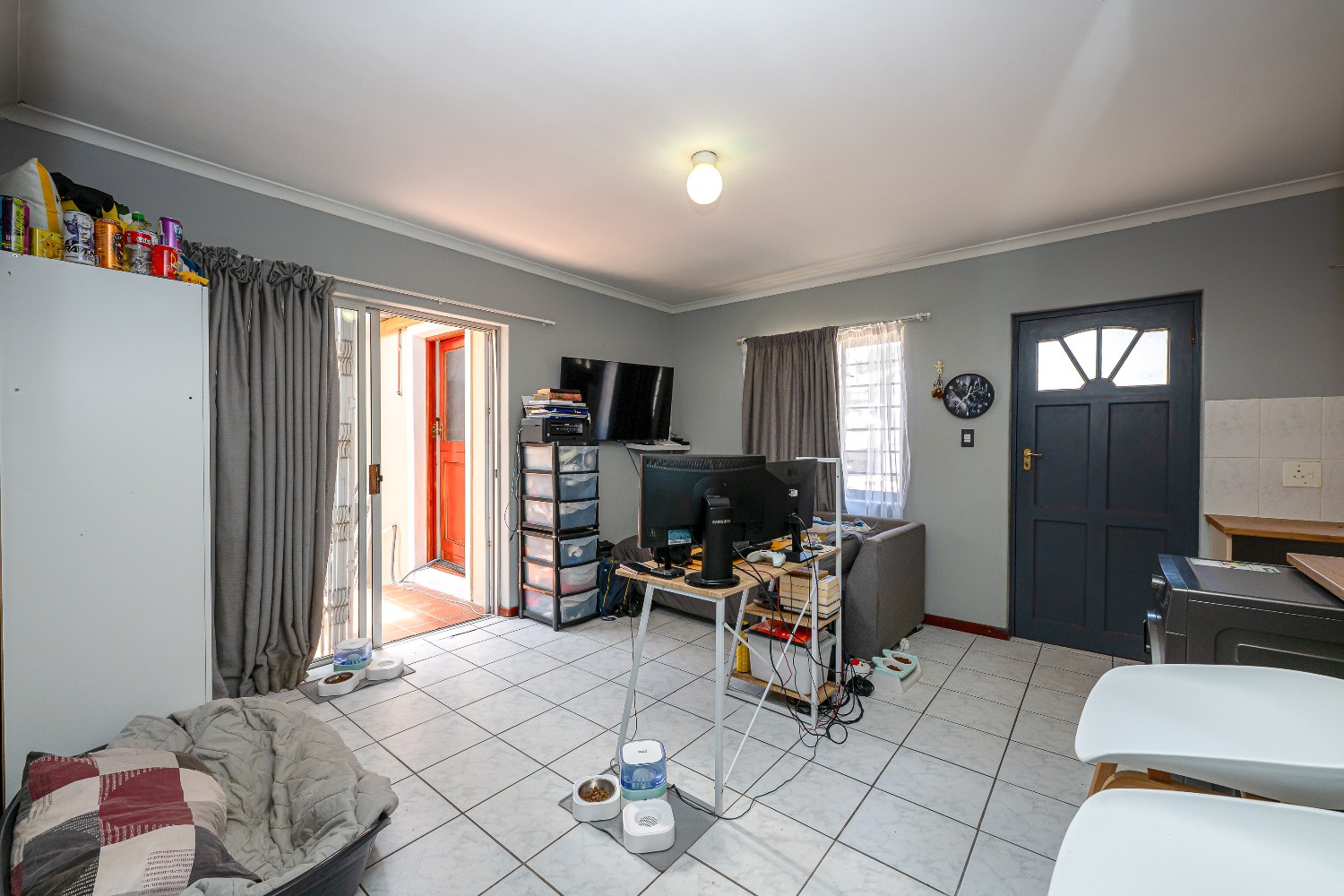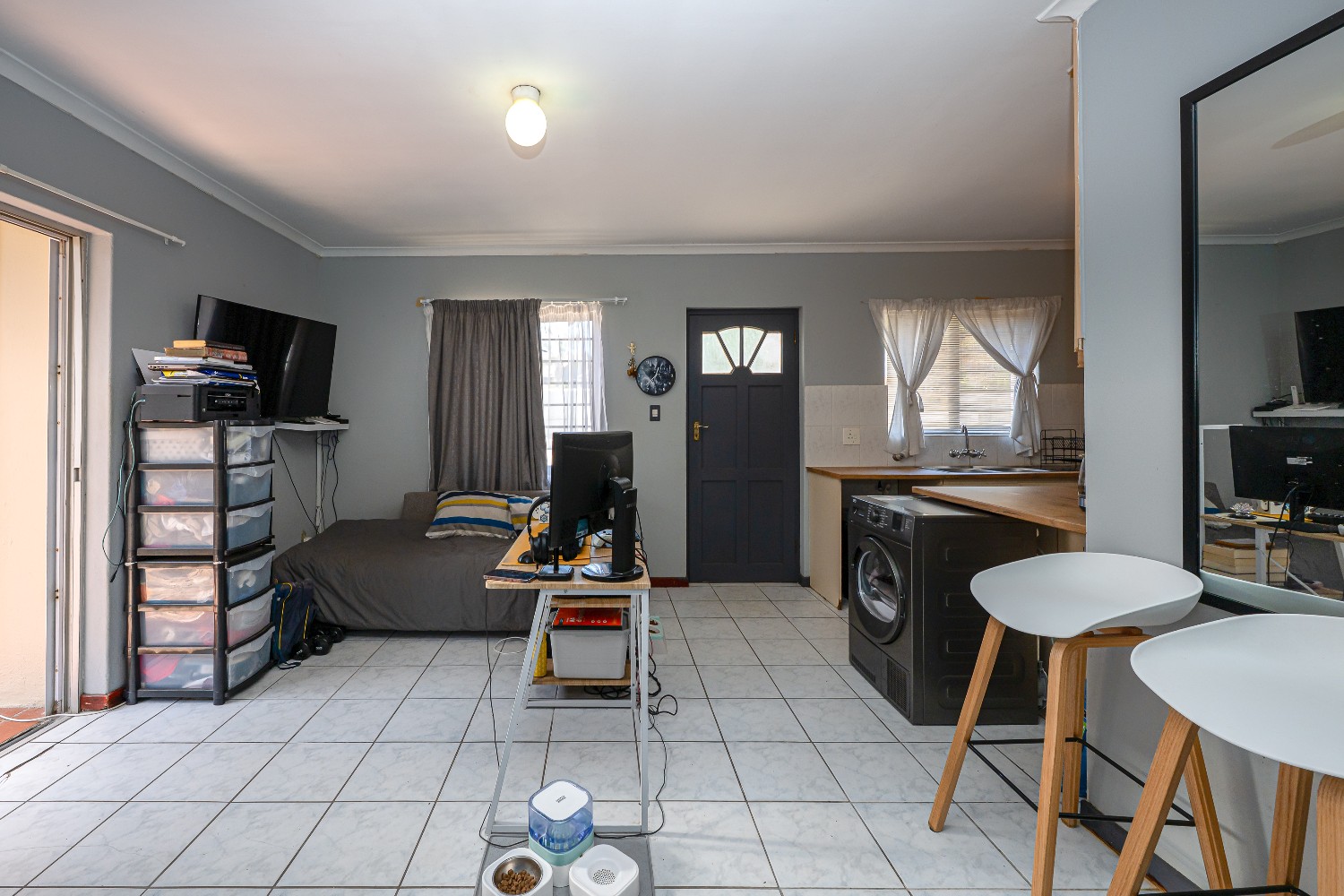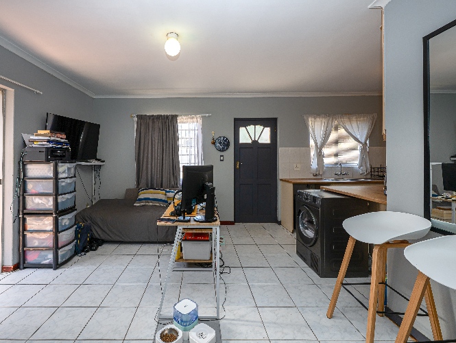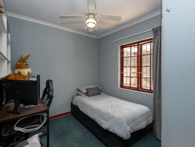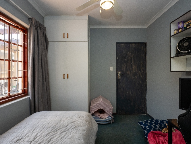 The backyard boasts an undercover and enclosed entertainment area complete with a built-in braai. The garden is fully enclosed with high boundary walls and ample space for future extensions. Additional features include an automated garage and secure parking for one vehicle in front.