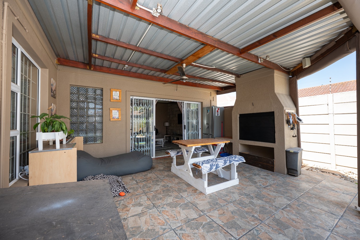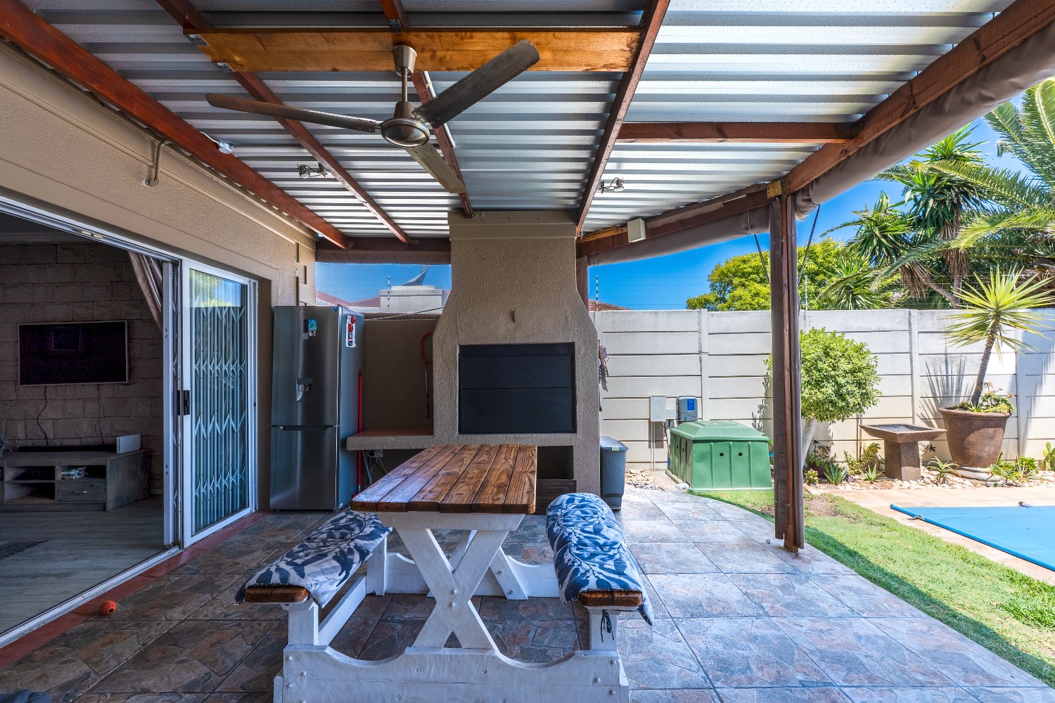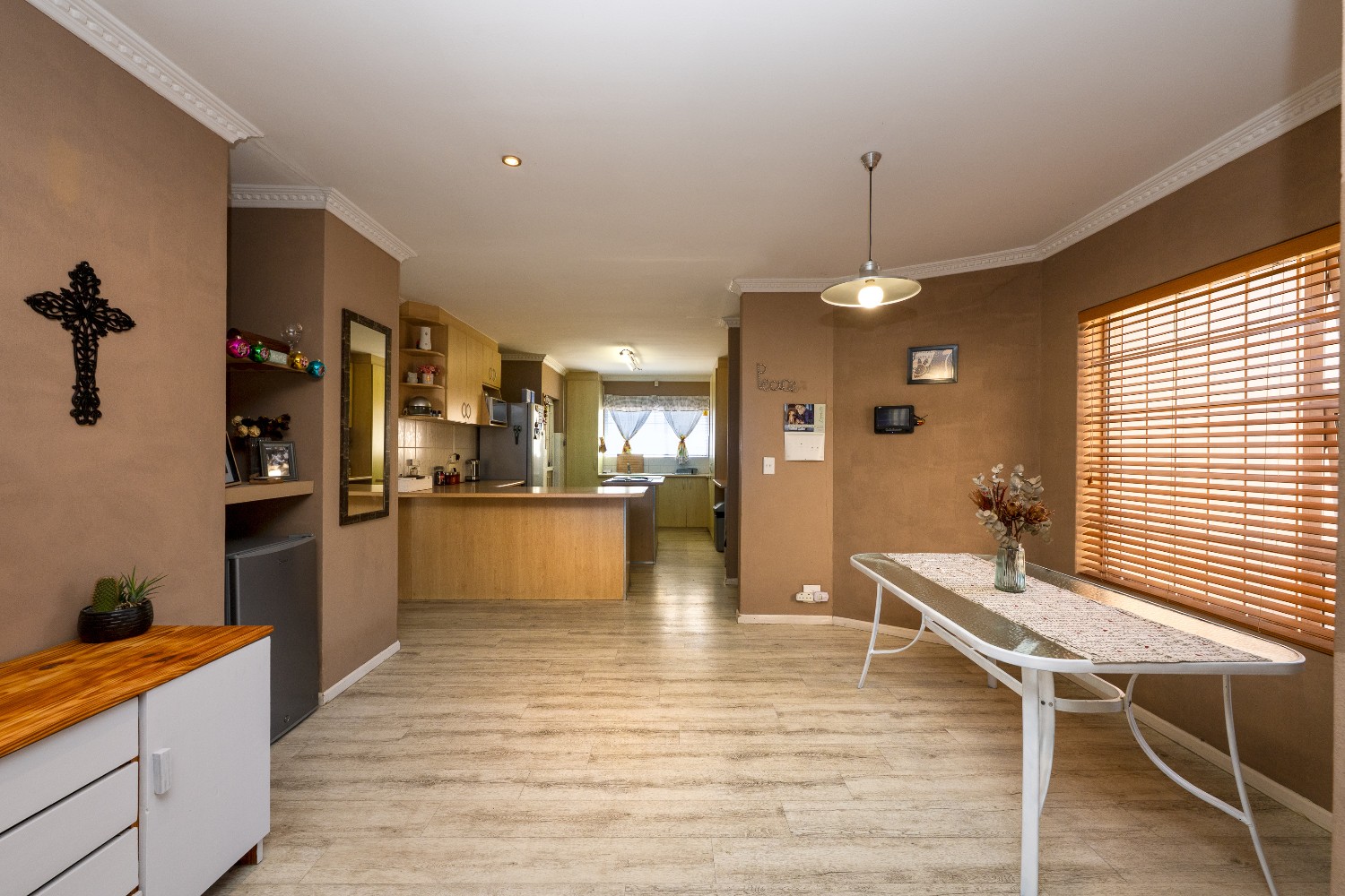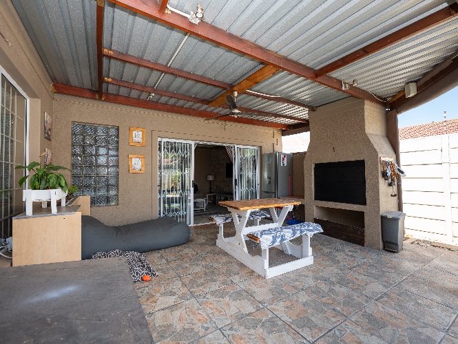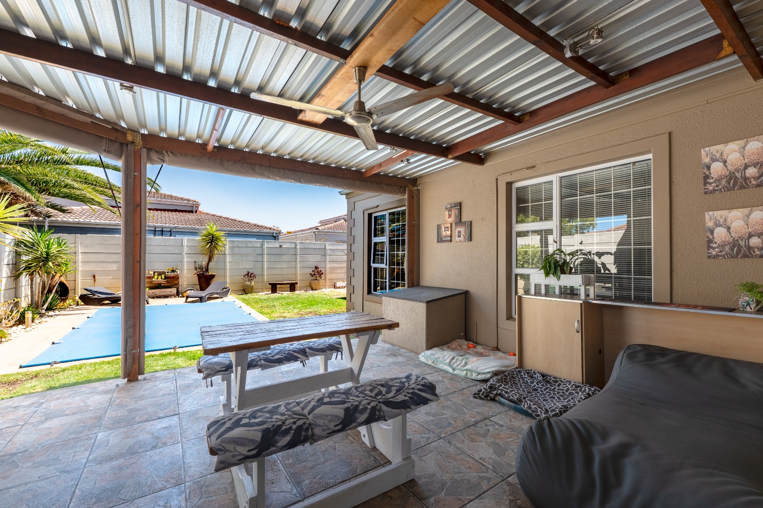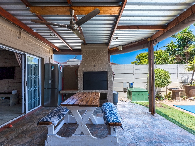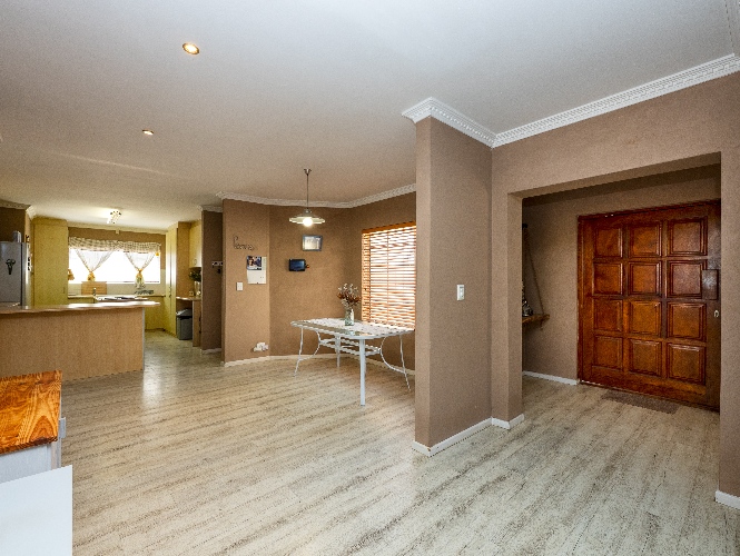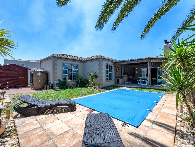 Enjoy multiple living areas with a welcoming lounge, separate dining room, and a well-designed kitchen perfect for everyday living and entertaining. The home flows beautifully to the outdoor entertainment area, boasting an undercover braai area overlooking a sparkling swimming pool, complete with heating rods for all-season enjoyment.