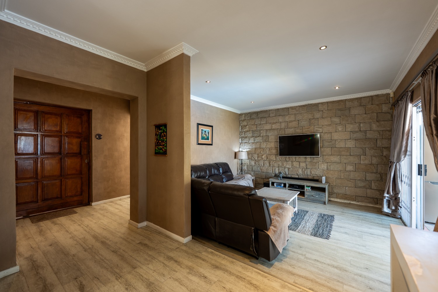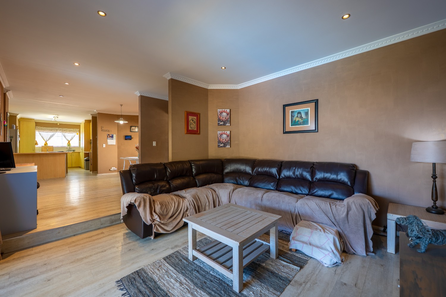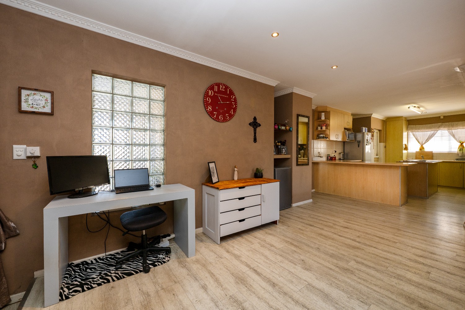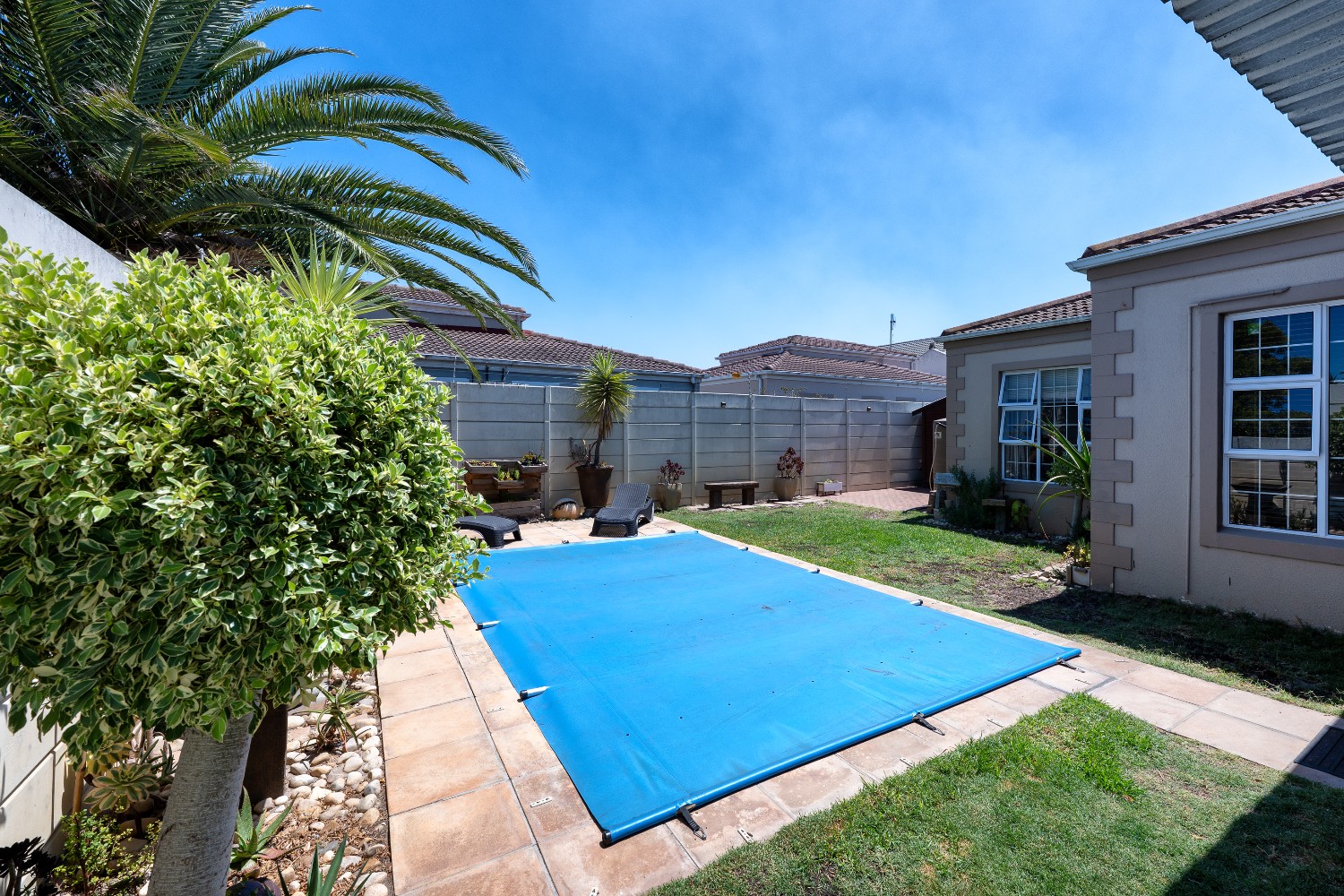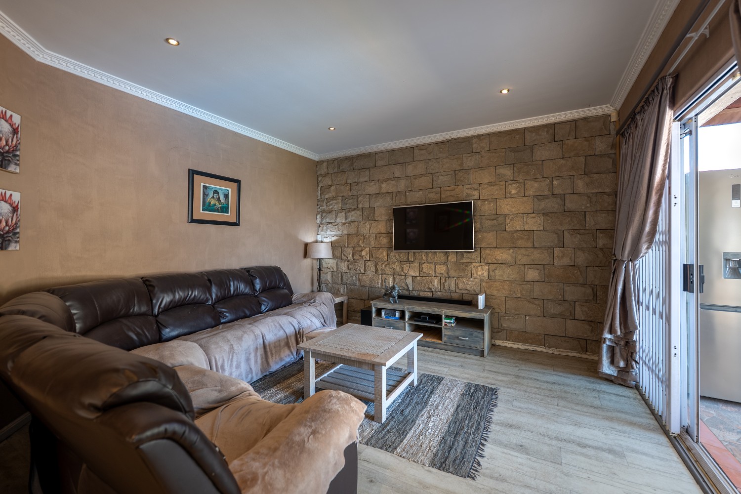 Enjoy multiple living areas with a welcoming lounge, separate dining room, and a well-designed kitchen perfect for everyday living and entertaining. The home flows beautifully to the outdoor entertainment area, boasting an undercover braai area overlooking a sparkling swimming pool, complete with heating rods for all-season enjoyment.