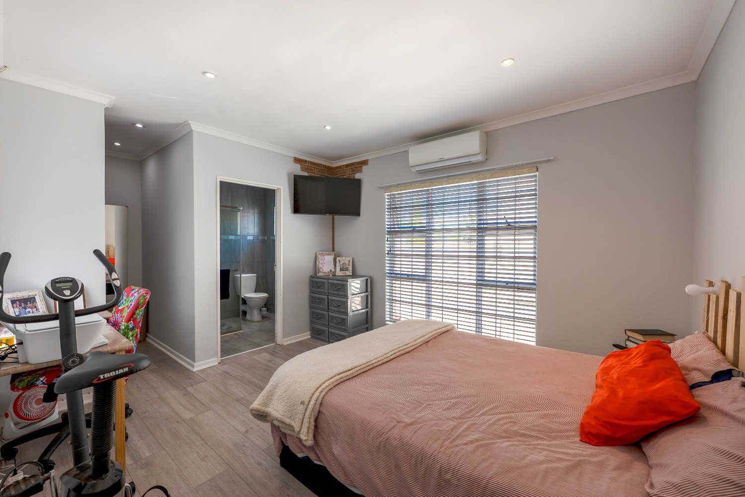 The home features 4 generously sized bedrooms, all with built-in cupboards, including 2 en-suite bedrooms, one with a full bathroom and one with a shower. An additional full family bathroom ensures ample convenience for larger families.
