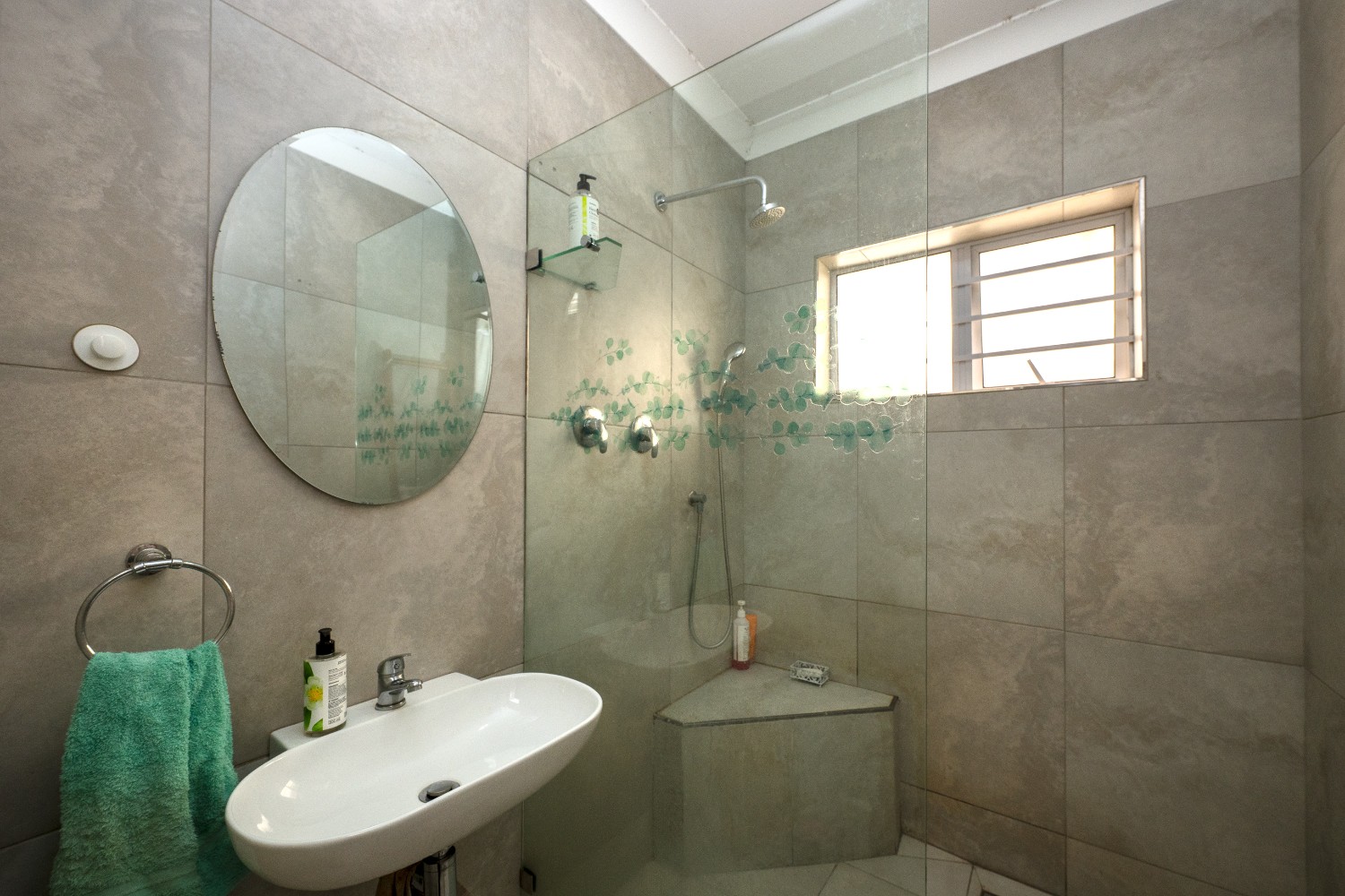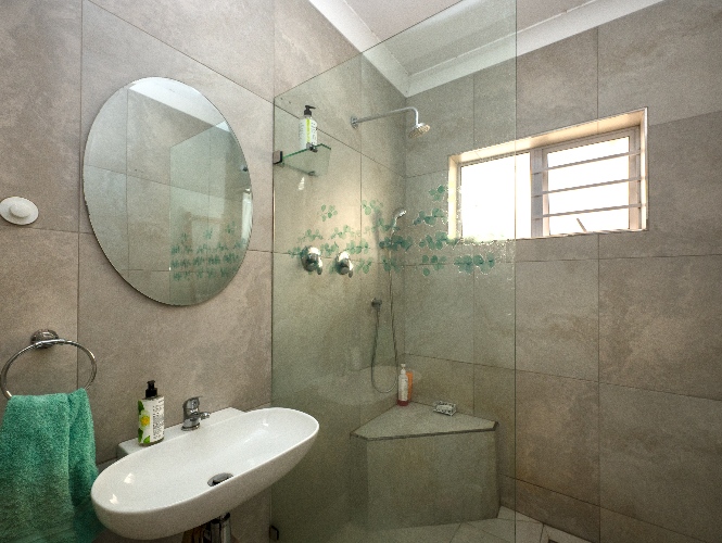 The home boasts three well-proportioned bedrooms, two of which include built-in cupboards. The modern family bathroom is tastefully finished and fitted with a large walk-in shower, basin and a separate toilet.