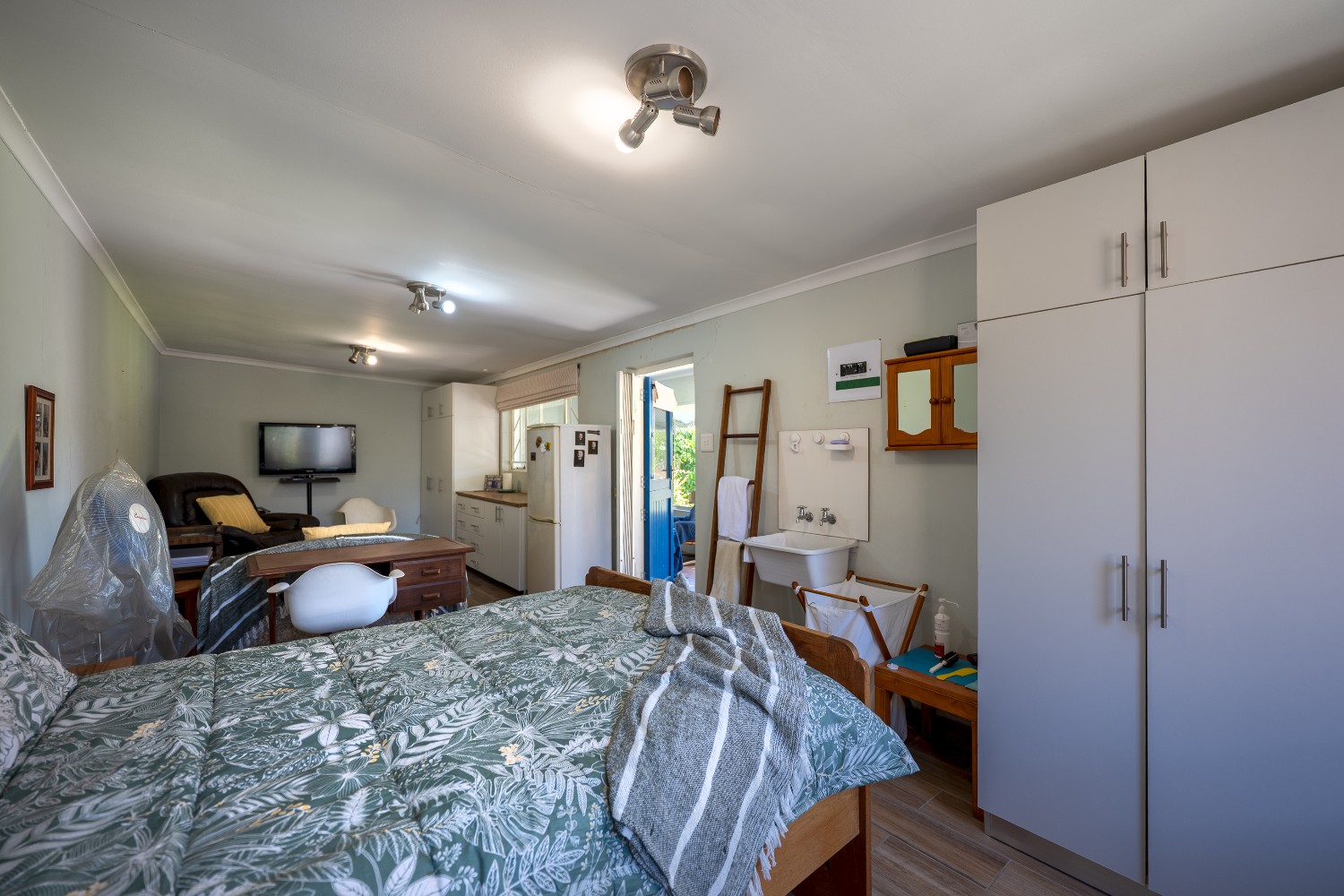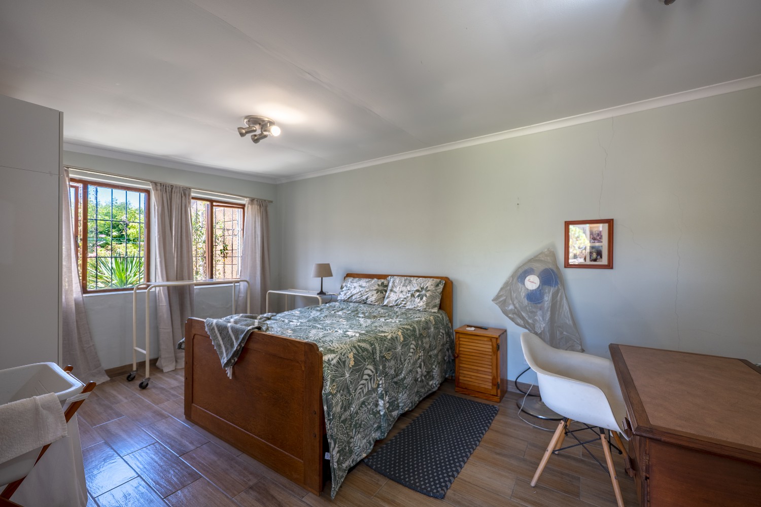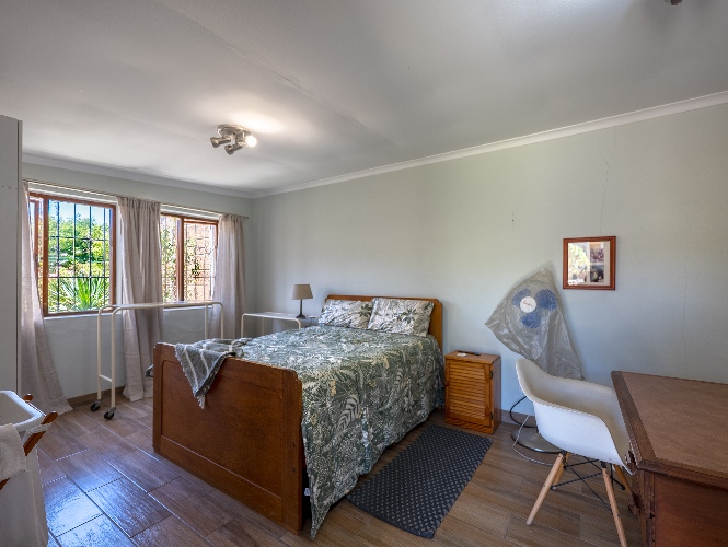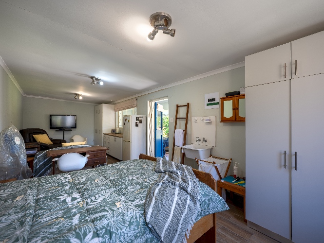 Outside, the property continues to impress with a one-bedroom flatlet consisting of a living area, bedroom, and kitchenette. There is a separate shower and toilet for the flatlet. presenting an excellent opportunity for additional income. The lush garden features a covered patio, perfect for entertaining, while a double garage and additional parking provide ample space for vehicles.