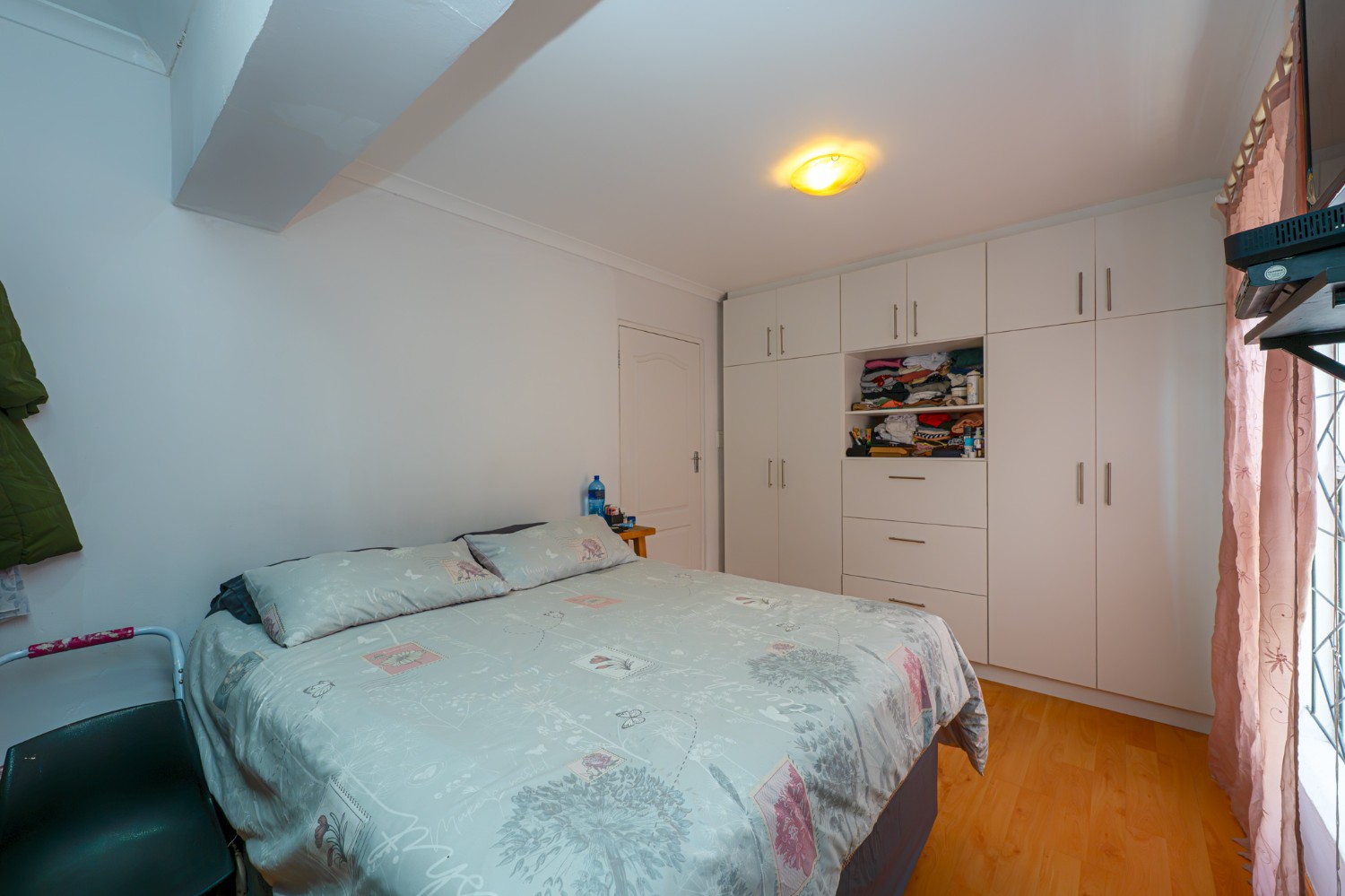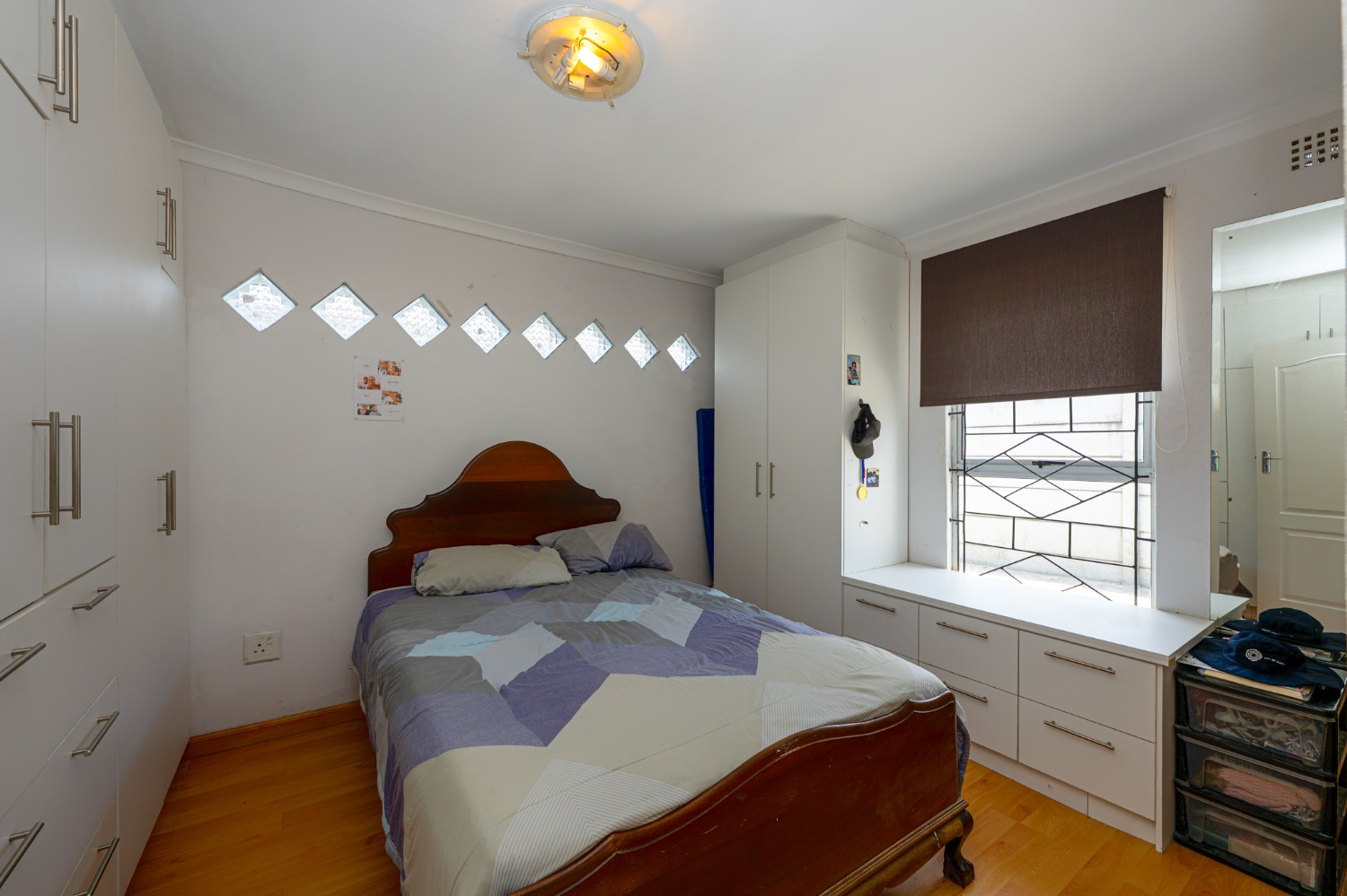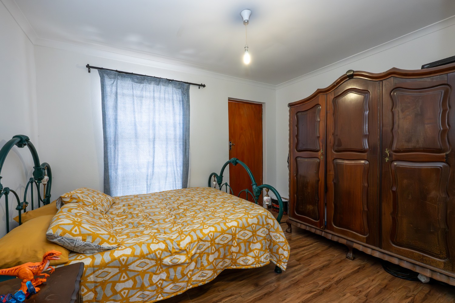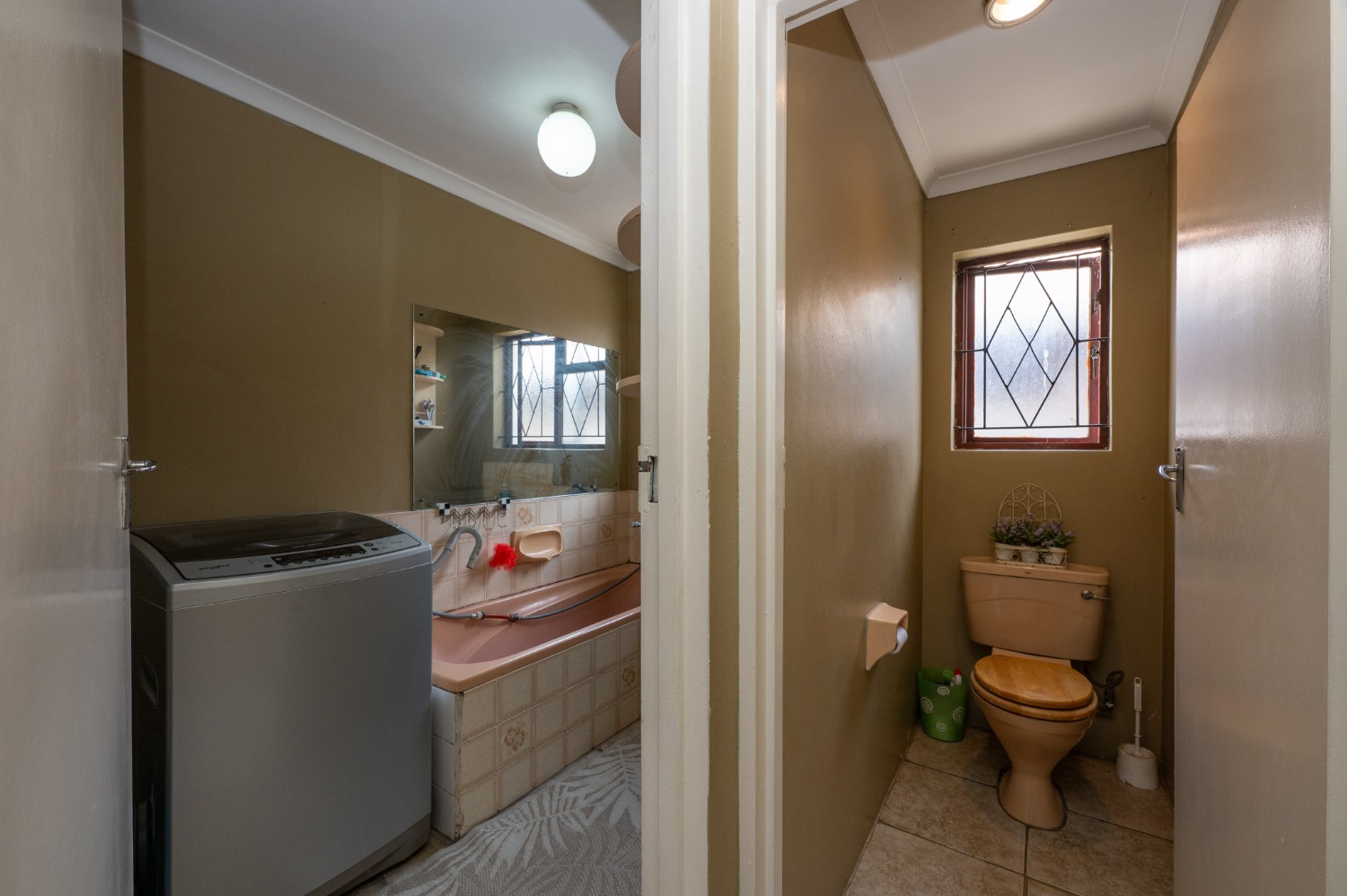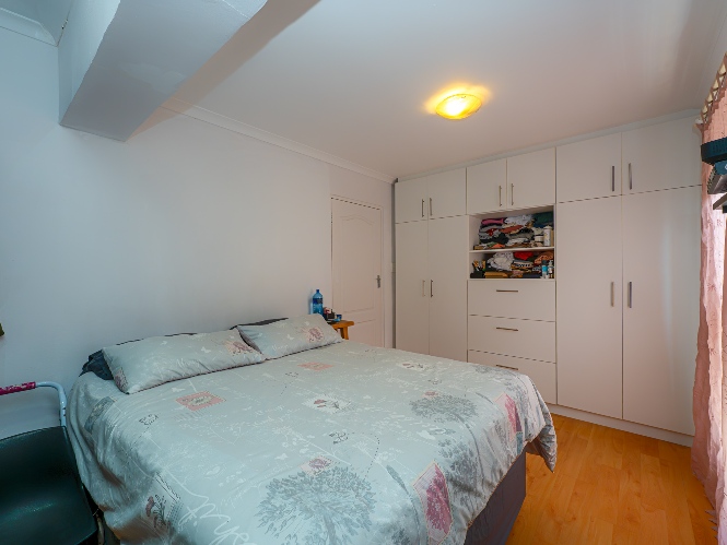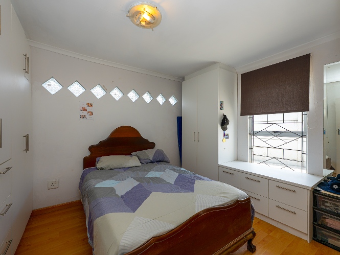 There are four bedrooms in total, two of which are fitted with built-in cupboards. The main bedroom includes an incomplete en-suite bathroom, offering an opportunity for customization. The main bathroom is fitted with a bathtub and basin, with a separate toilet for added convenience.