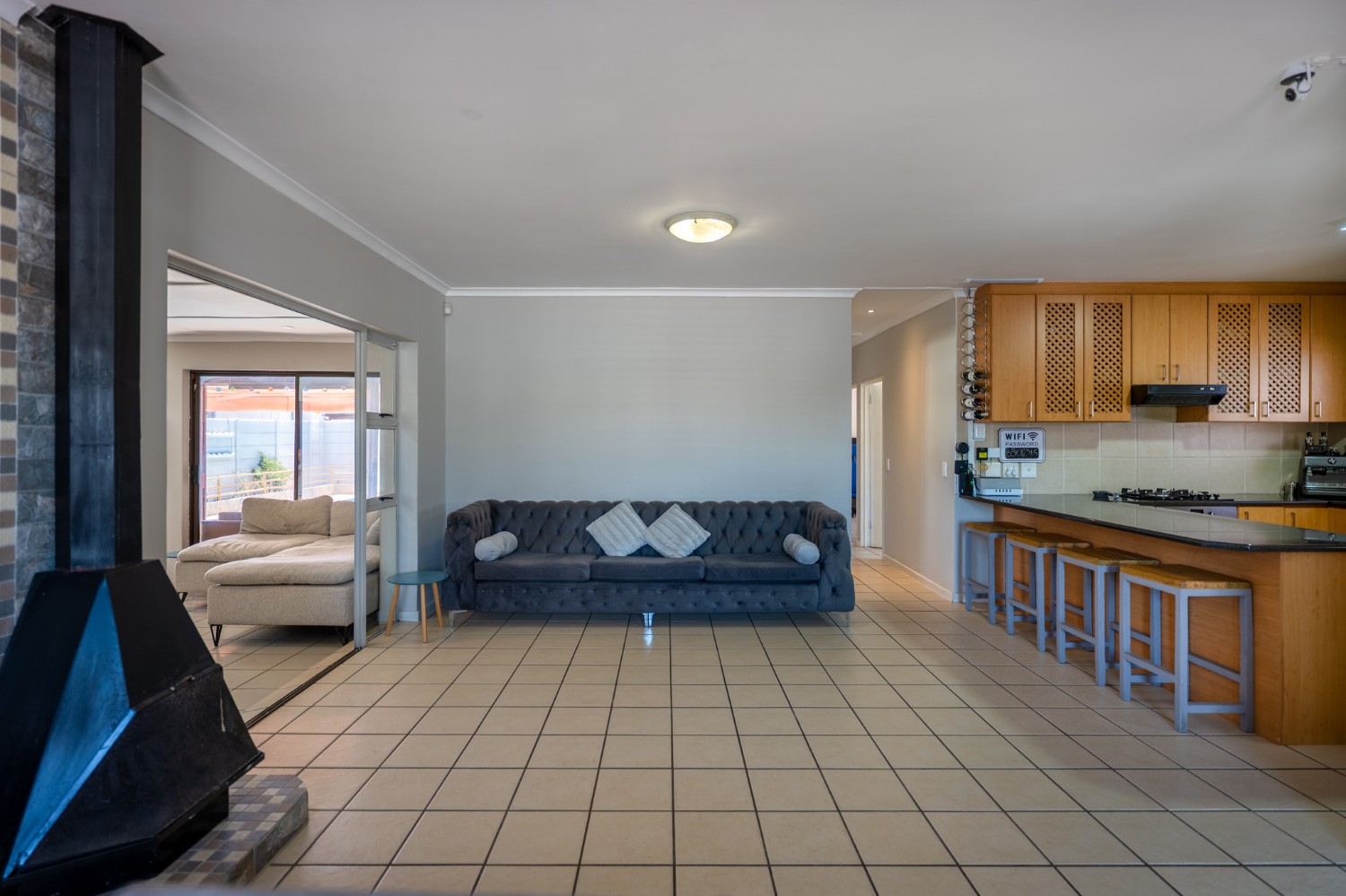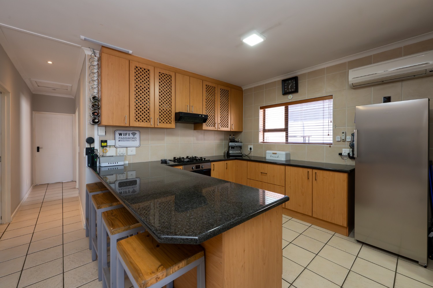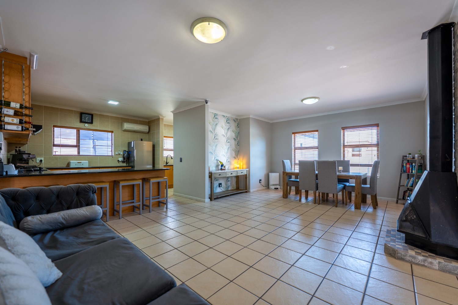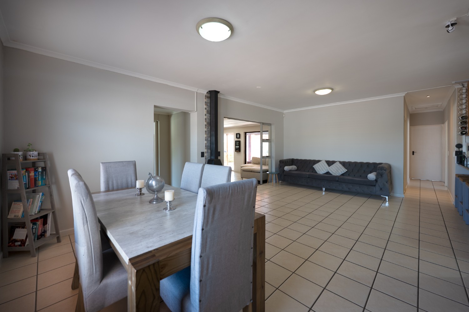 The home boasts 4 well-sized bedrooms, all fitted with built-in cupboards, with the main bedroom featuring a full en-suite bathroom. A full family bathroom services the remaining bedrooms. The kitchen is thoughtfully designed, featuring gas cooking and a separate scullery that flows seamlessly into the dining area and a welcoming lounge complete with a fireplace, creating a warm and inviting atmosphere.
