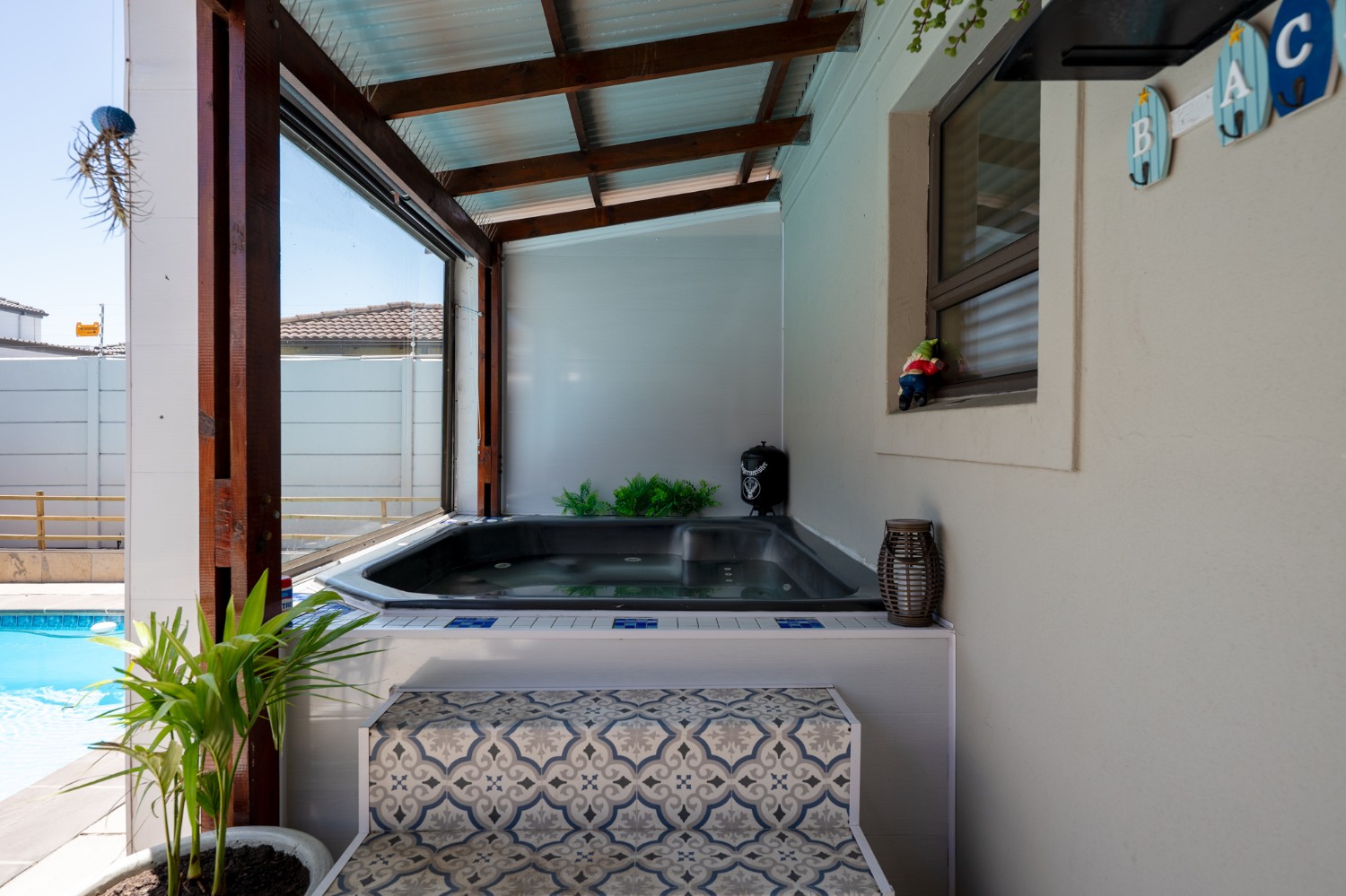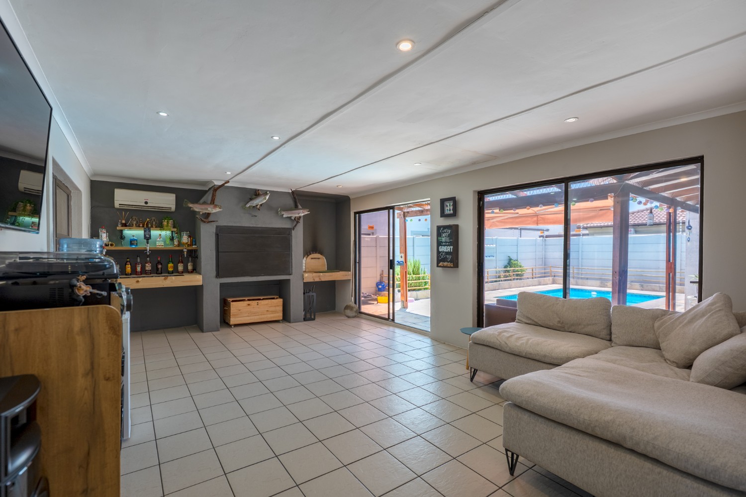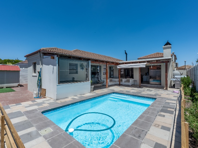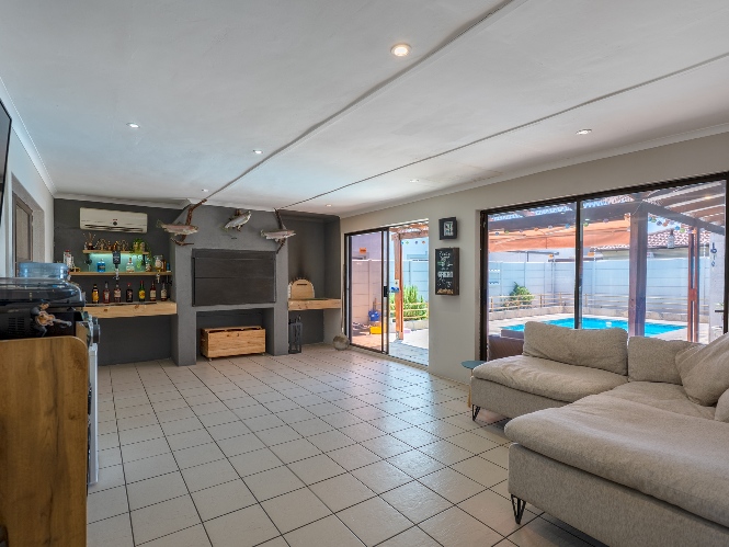 Designed for entertaining, the home features a superb entertainment area with a built-in braai, overlooking a sparkling swimming pool and jacuzzi, ideal for enjoying sunny days and relaxed evenings. A double garage and additional parking space provide ample parking, while the well-sized garden offers space for children and pets to enjoy.
