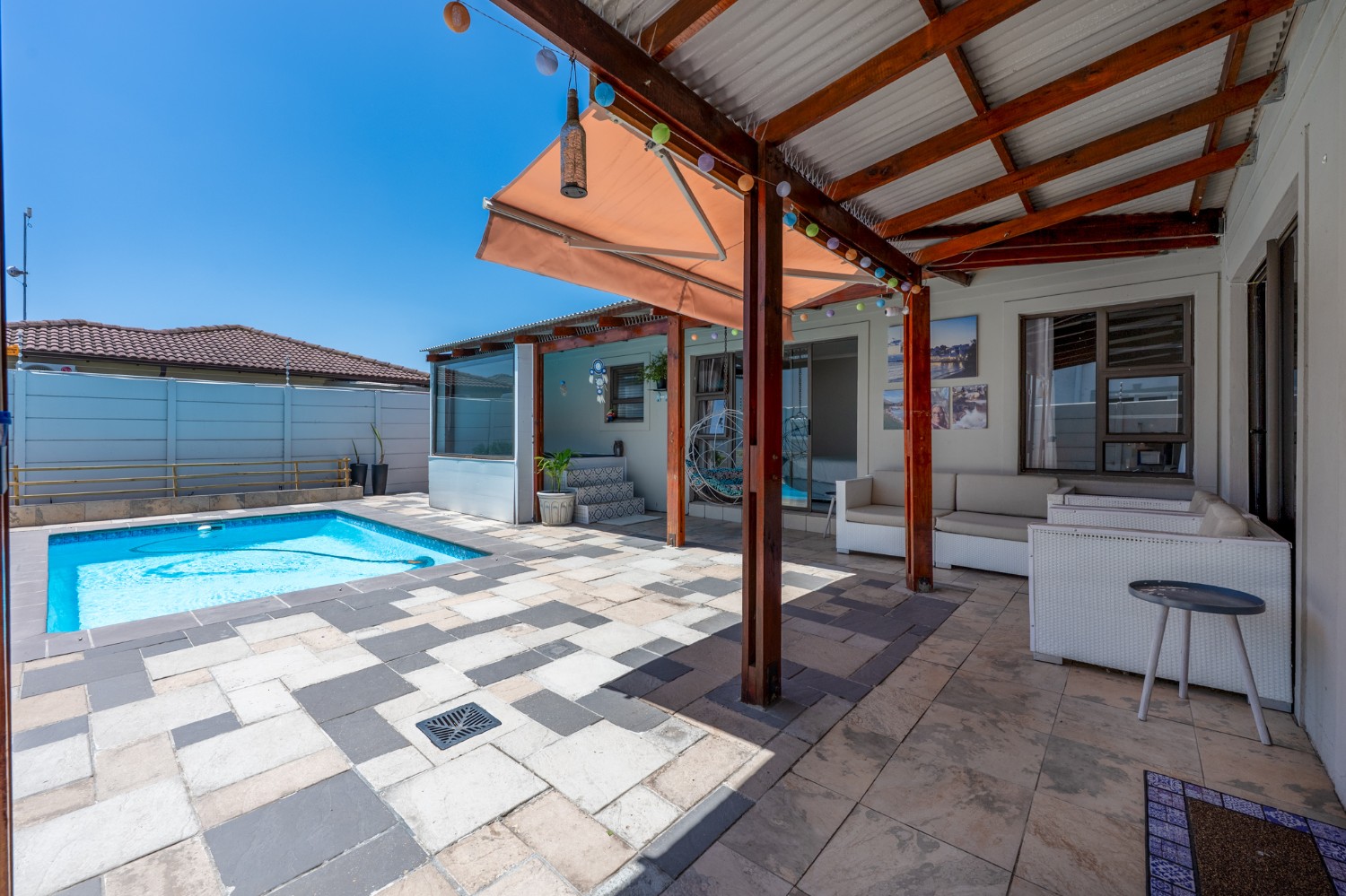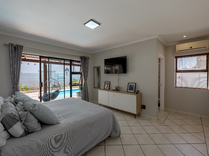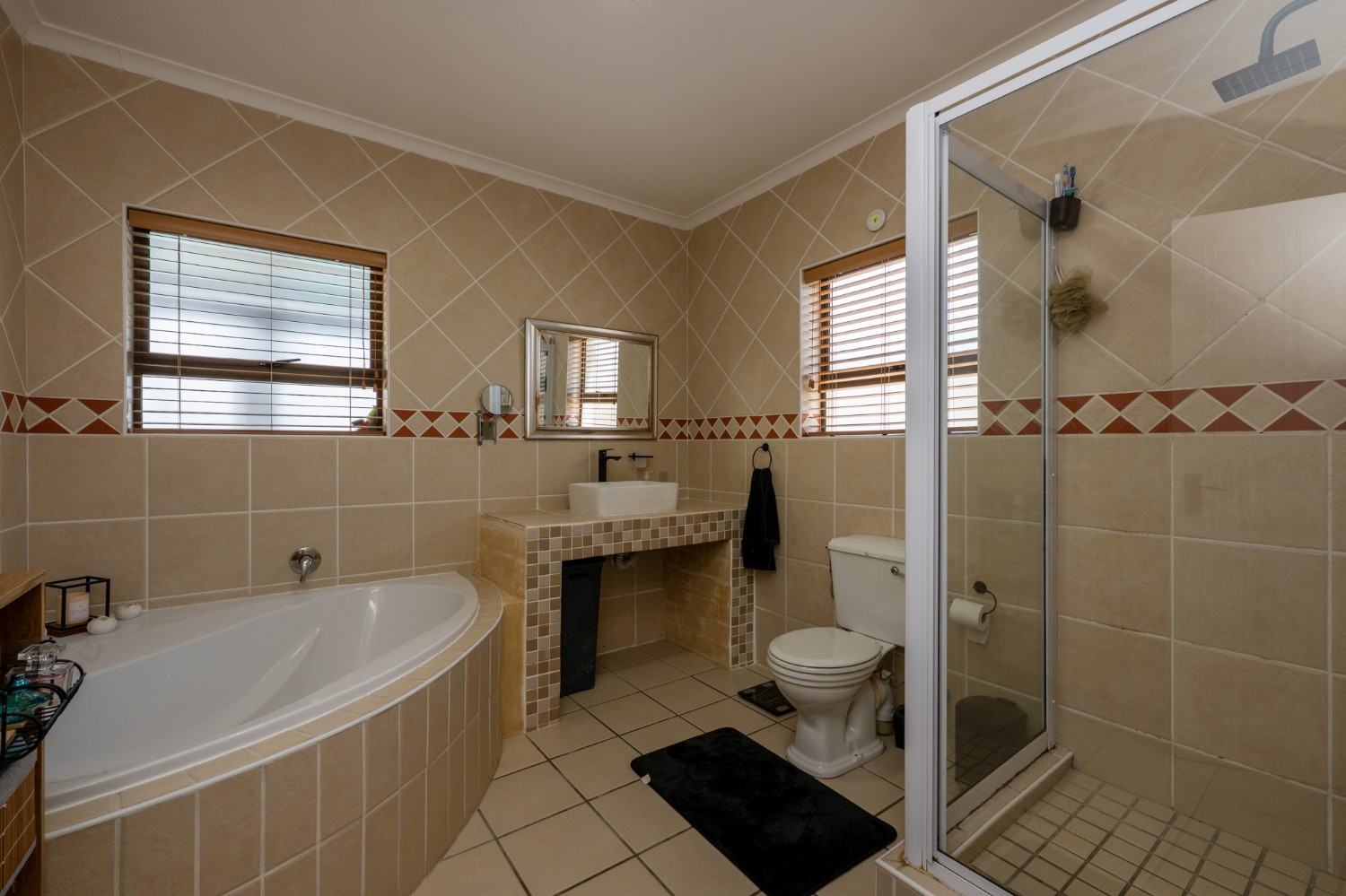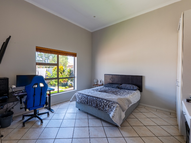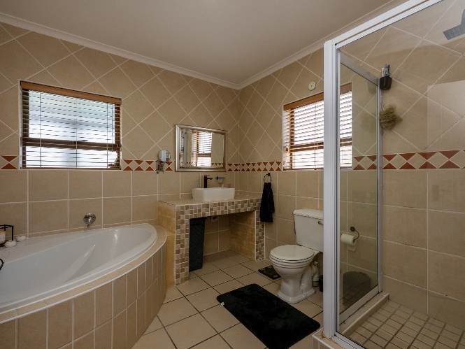 Designed for entertaining, the home features a superb entertainment area with a built-in braai, overlooking a sparkling swimming pool and jacuzzi, ideal for enjoying sunny days and relaxed evenings. A double garage and additional parking space provide ample parking, while the well-sized garden offers space for children and pets to enjoy.