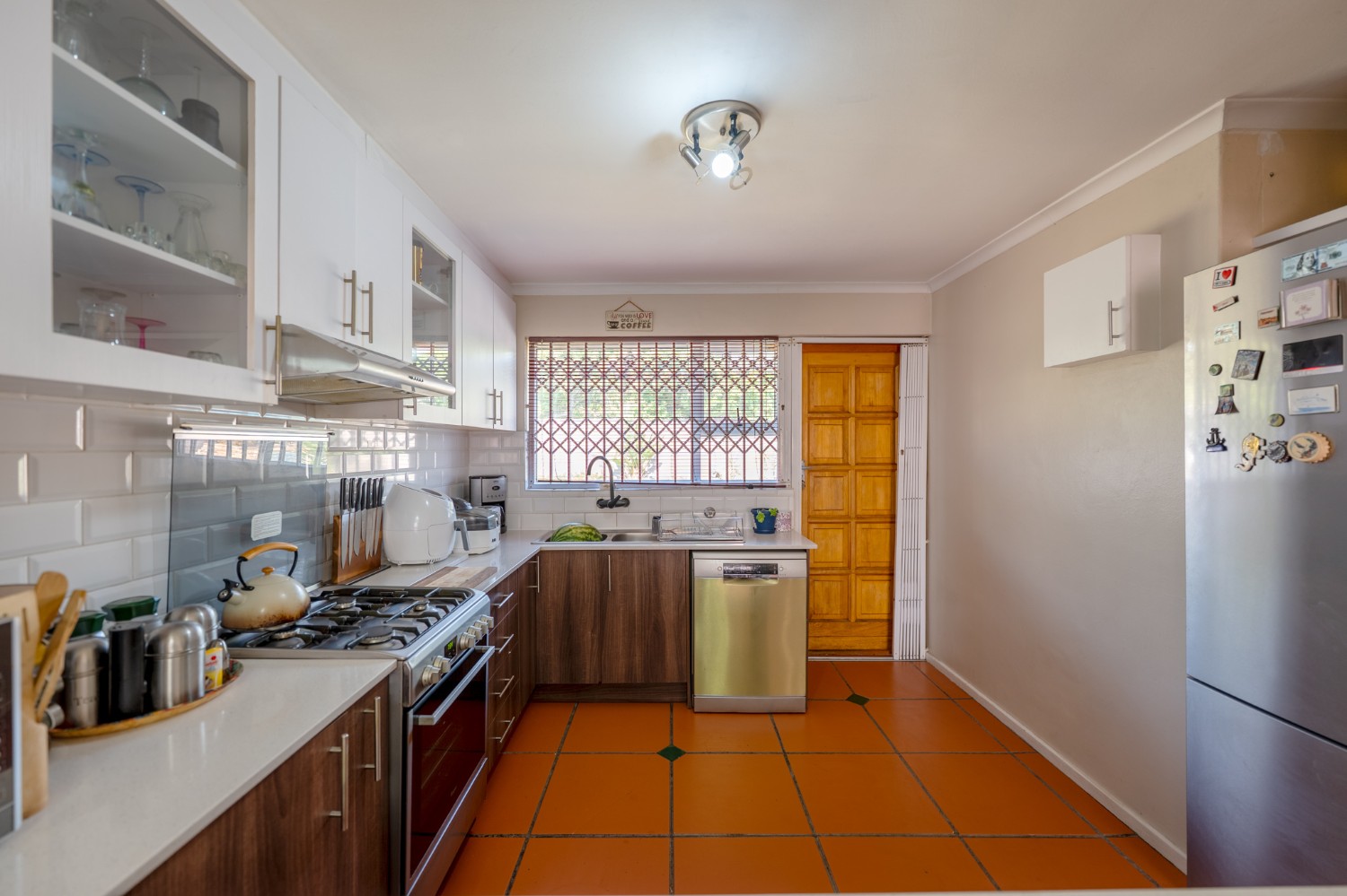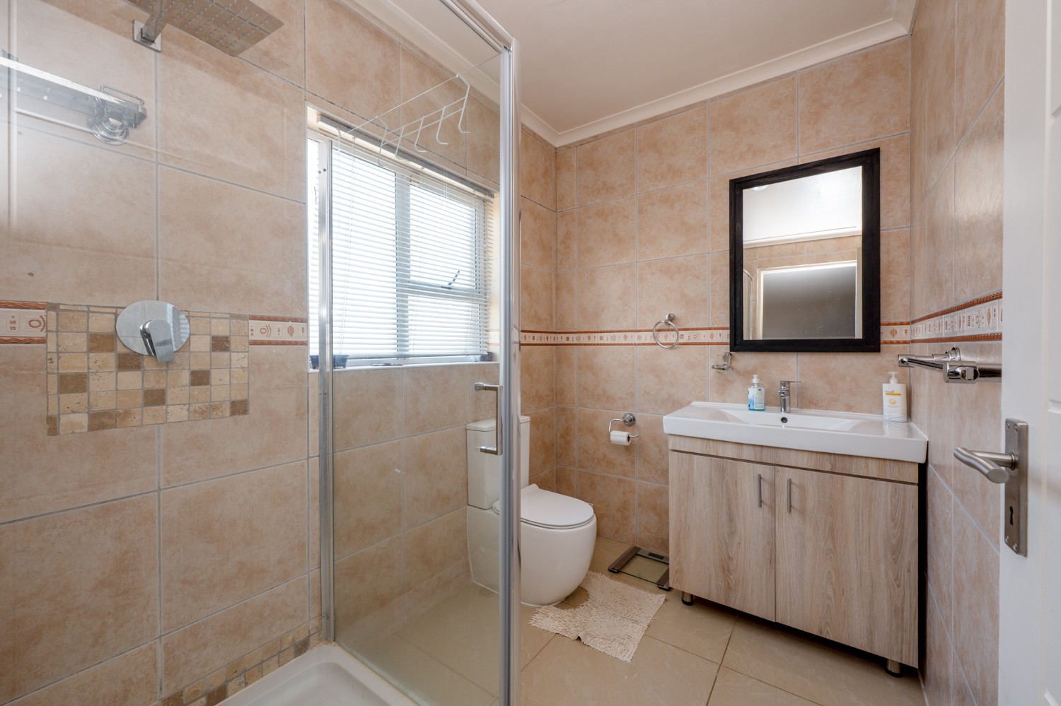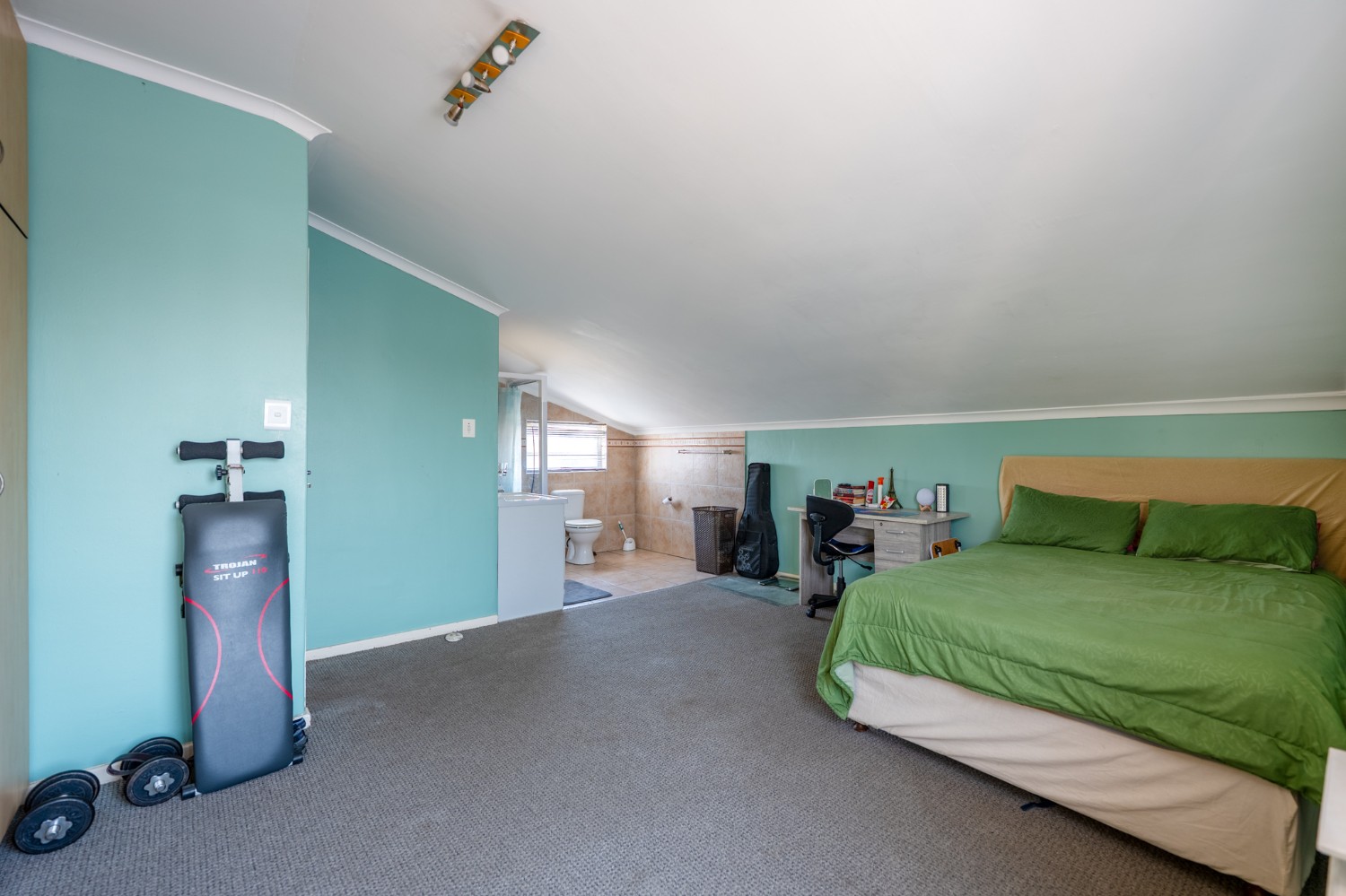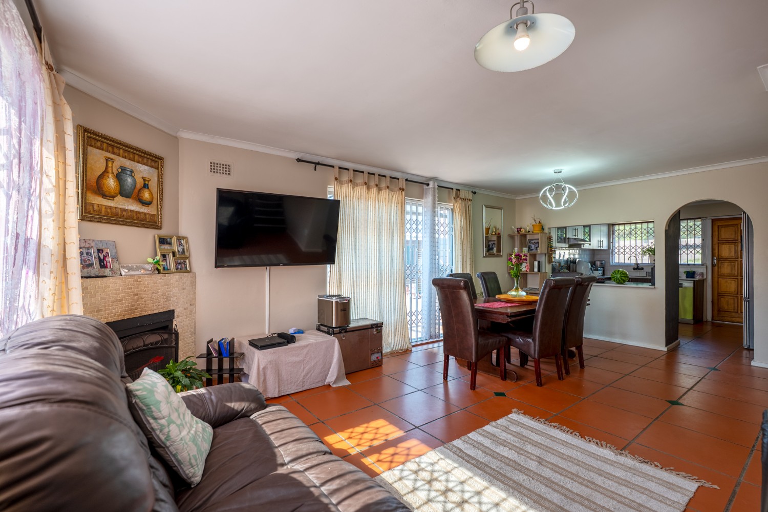 Step outside to a massive, private, and fully walled garden, offering exceptional space and privacy. The outdoor area boasts a gunnite swimming pool and a patio with built-in braai, perfect for entertaining. An additional secure gated parking area provides space for multiple vehicles, a boat, or a caravan.
