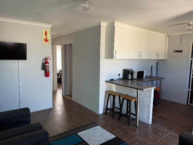 The cosy lounge provides a communal area where students can relax, socialise, or unwind after a long day of classes. The charming, fully equipped kitchen offers light wood cupboards, one plumbing point, and ample countertop space.