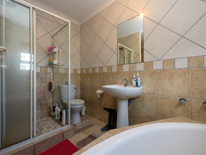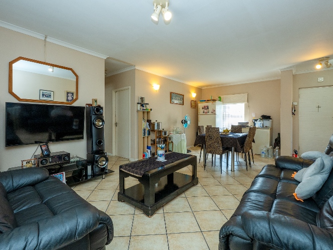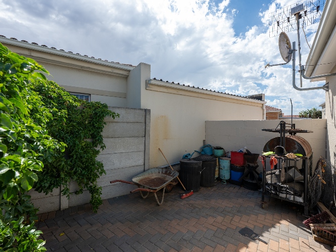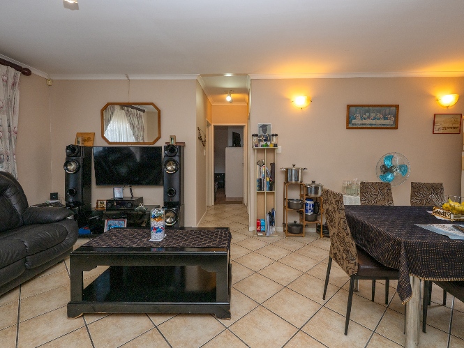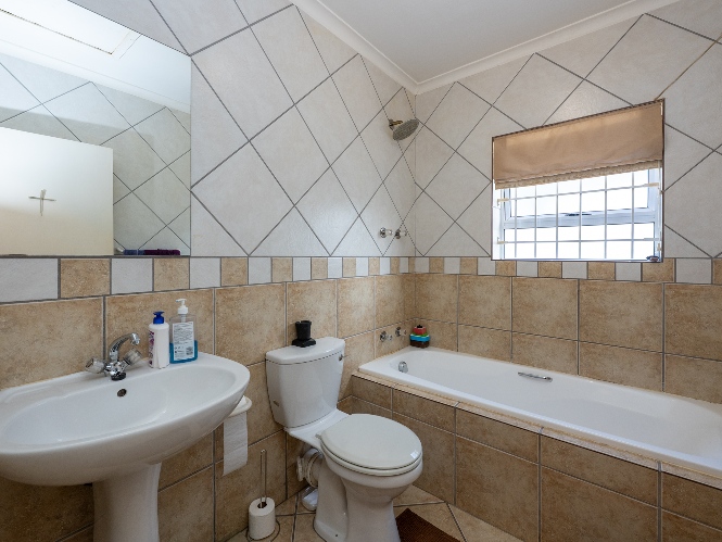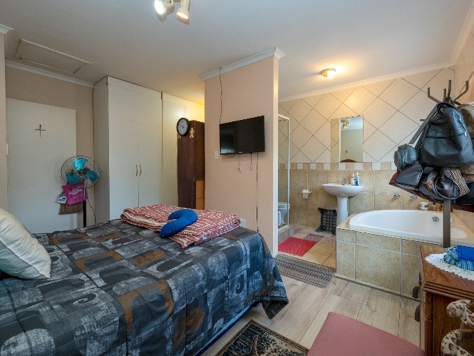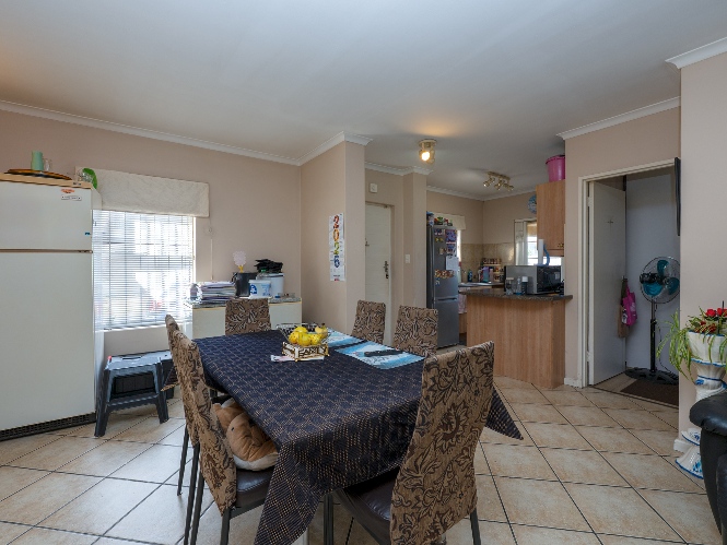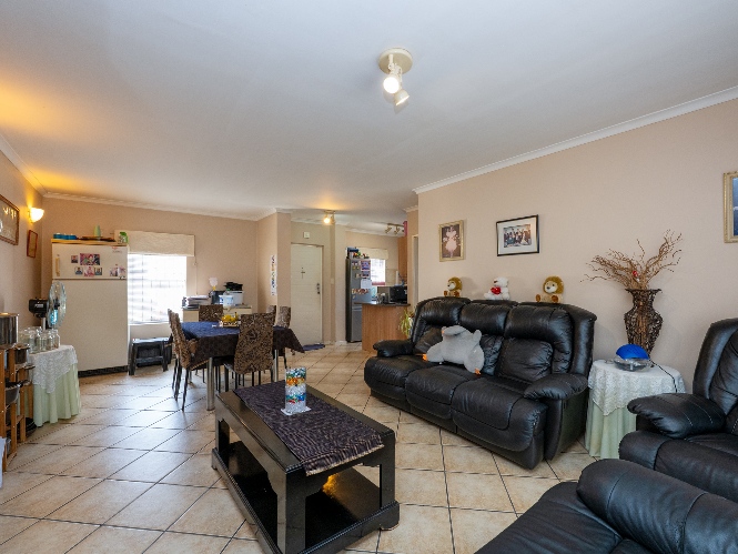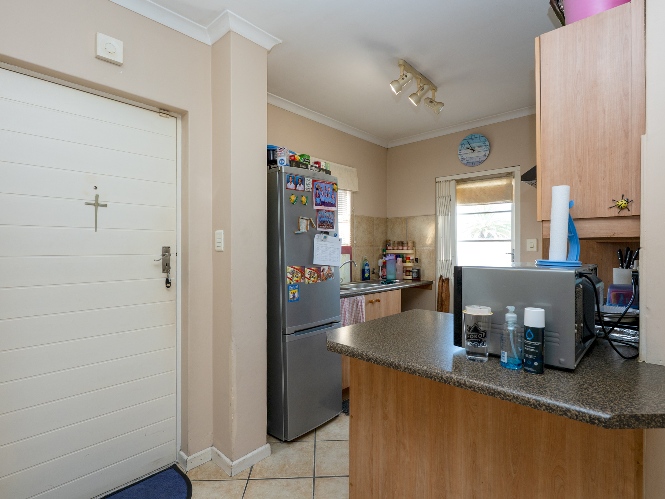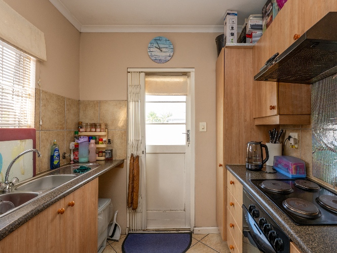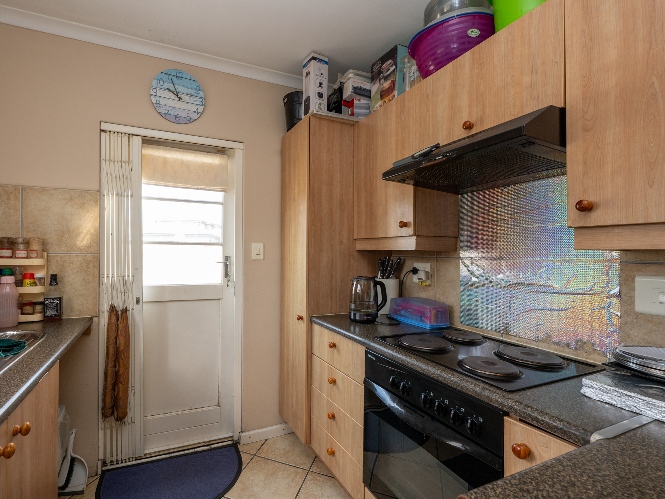 The property features 2 well-sized bedrooms, both fitted with built-in cupboards, and 2 bathrooms, including a main en-suite full bathroom. The neatly fitted kitchen is equipped with a built-in stove and offers one plumbing point, catering to practical everyday needs.