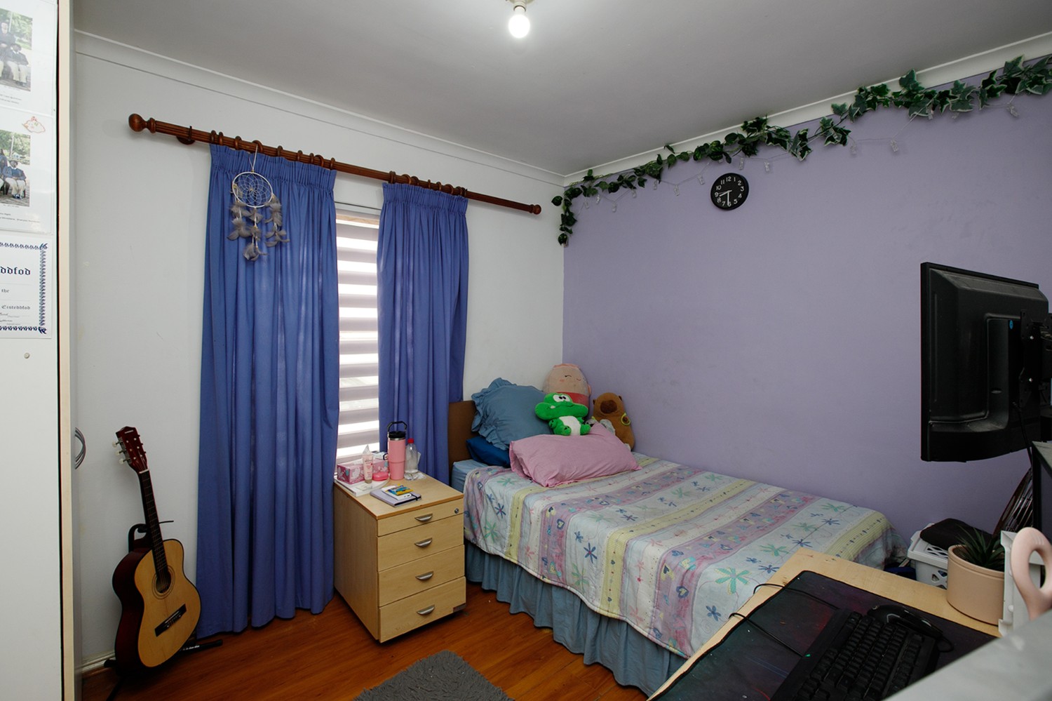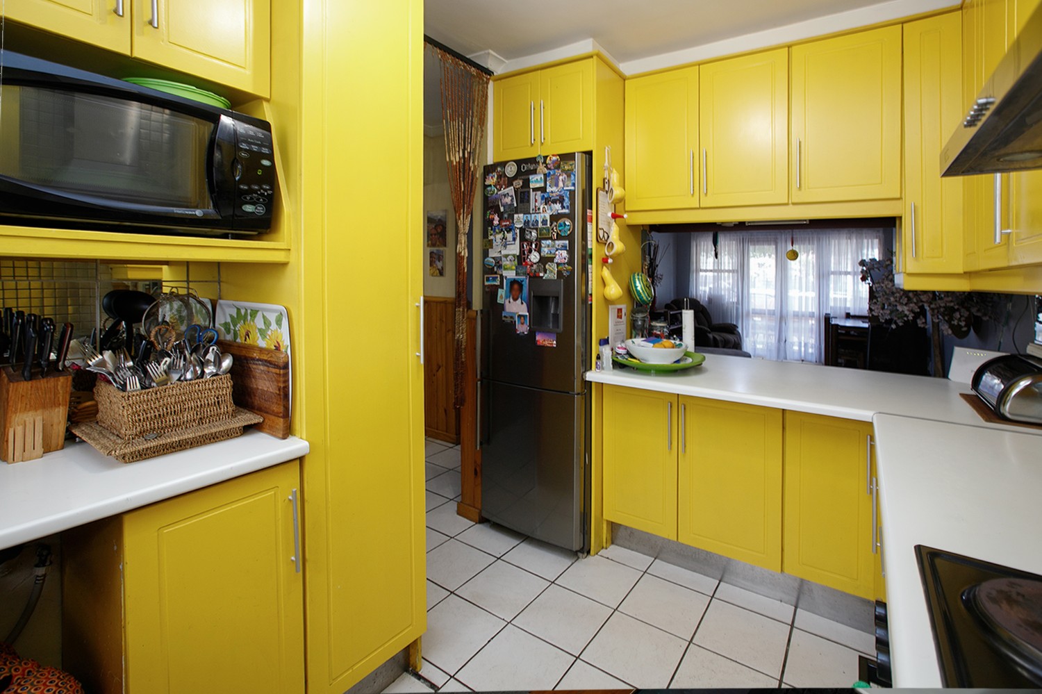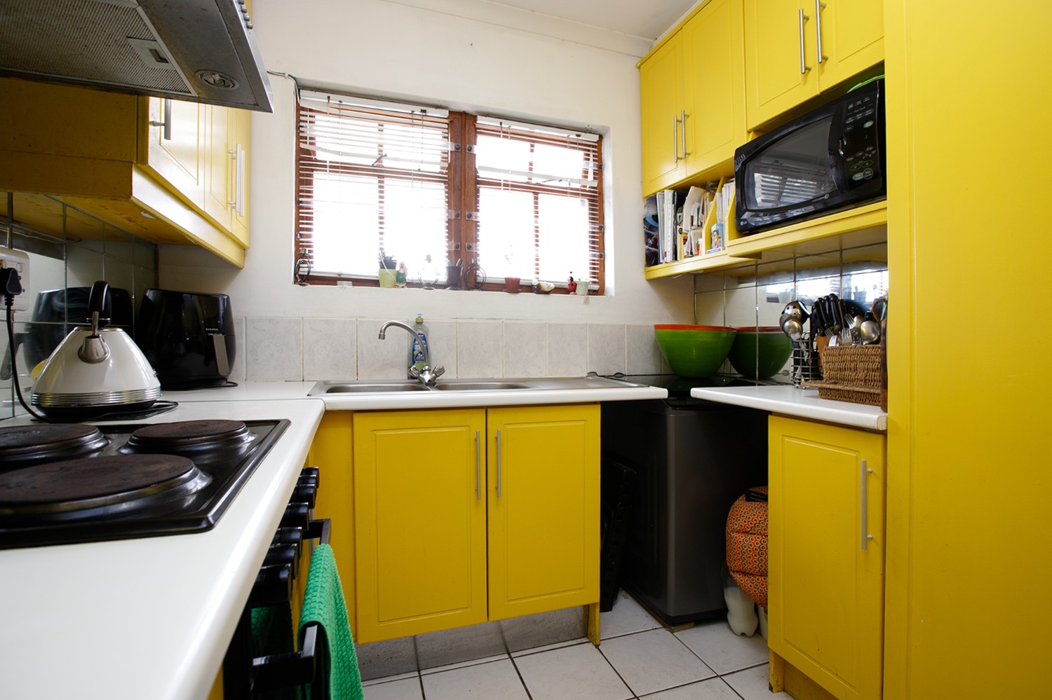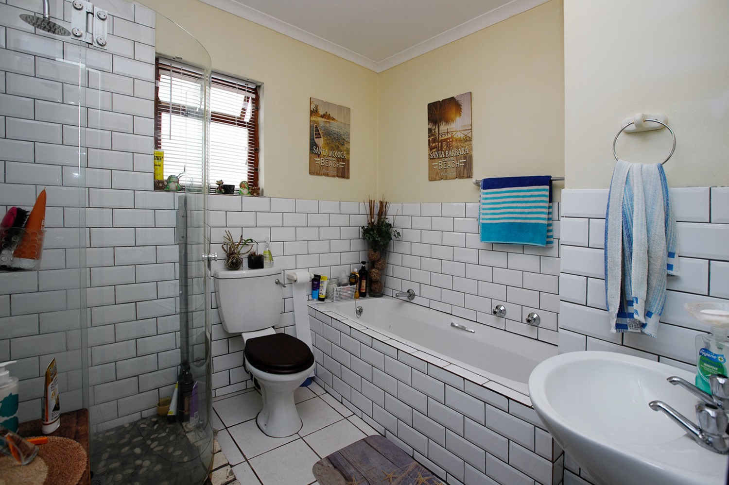 Two additional bedrooms, all bedrooms with built-in cupboards, laminated flooring, blinds, and clear burglar bars.