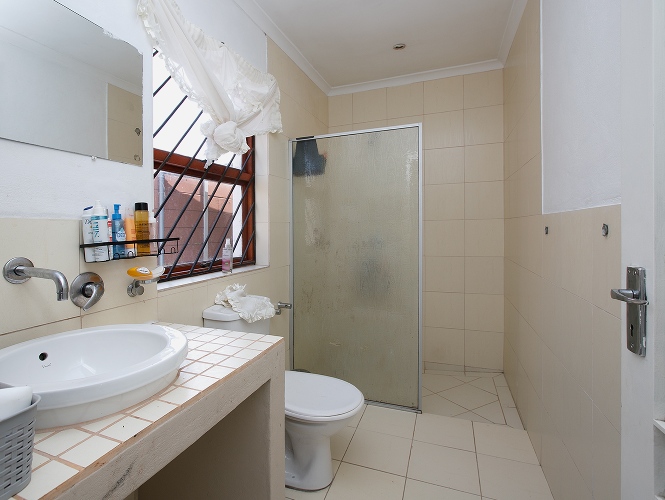 The home comprises three bedrooms. The main bedroom includes an en-suite bathroom fitted with a shower, toilet, and hand basin. A full family bathroom serves the rest of the home and is fitted with a bath, shower, toilet, and hand basin.