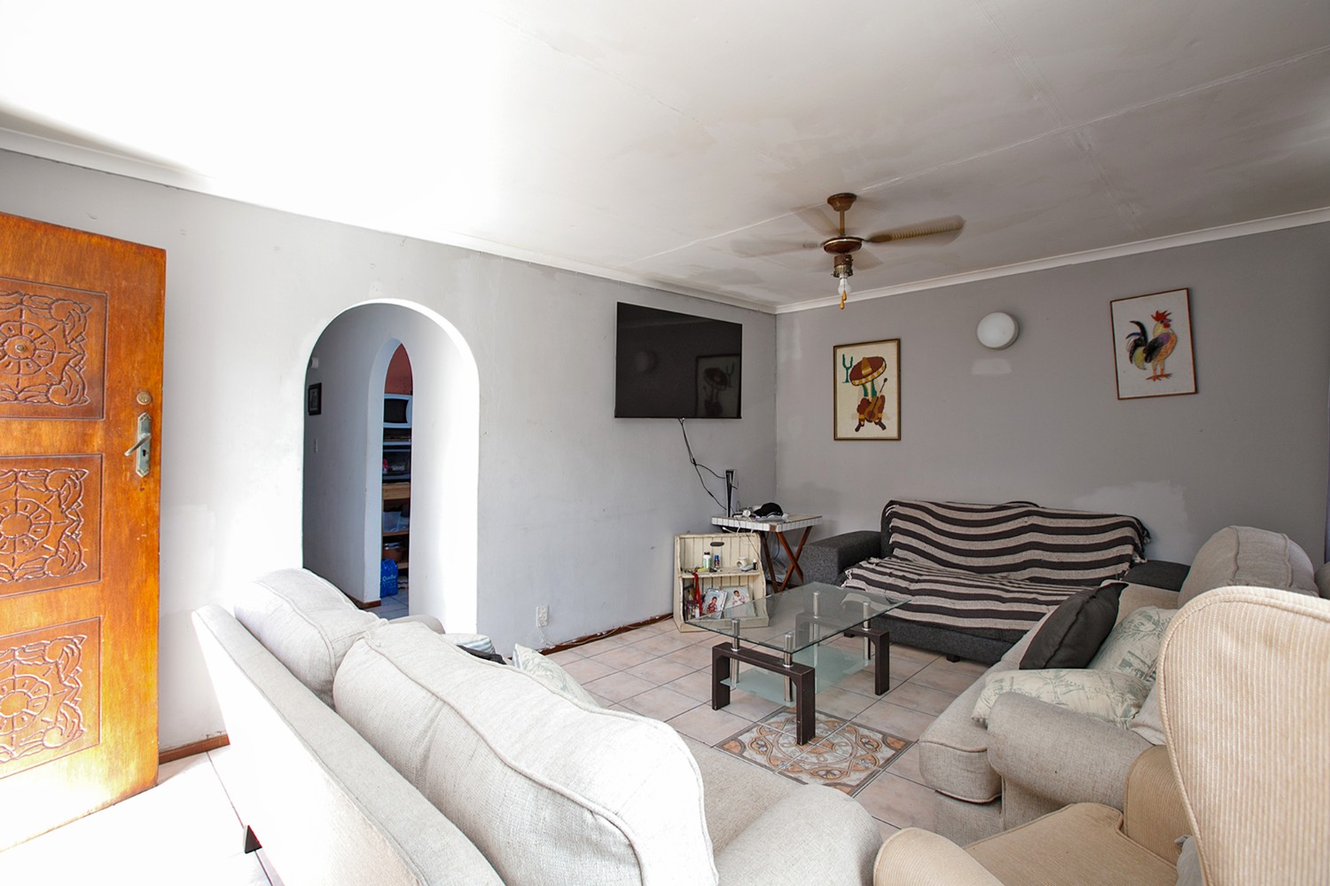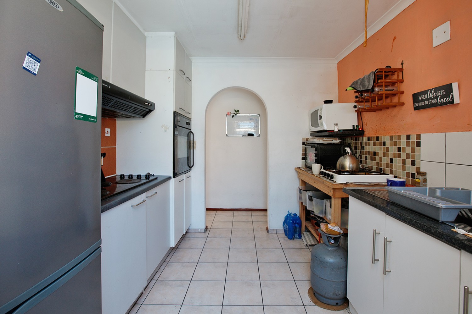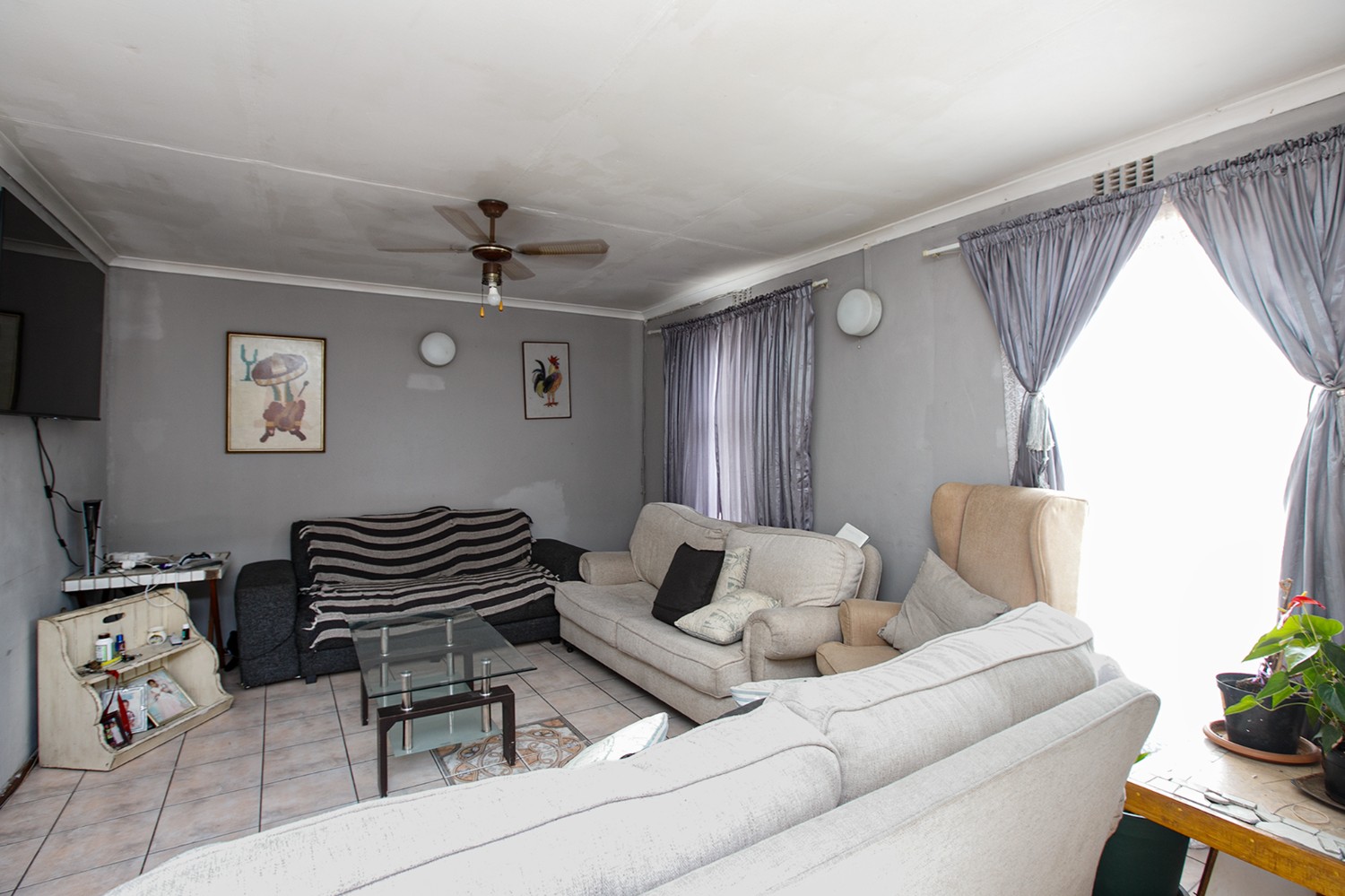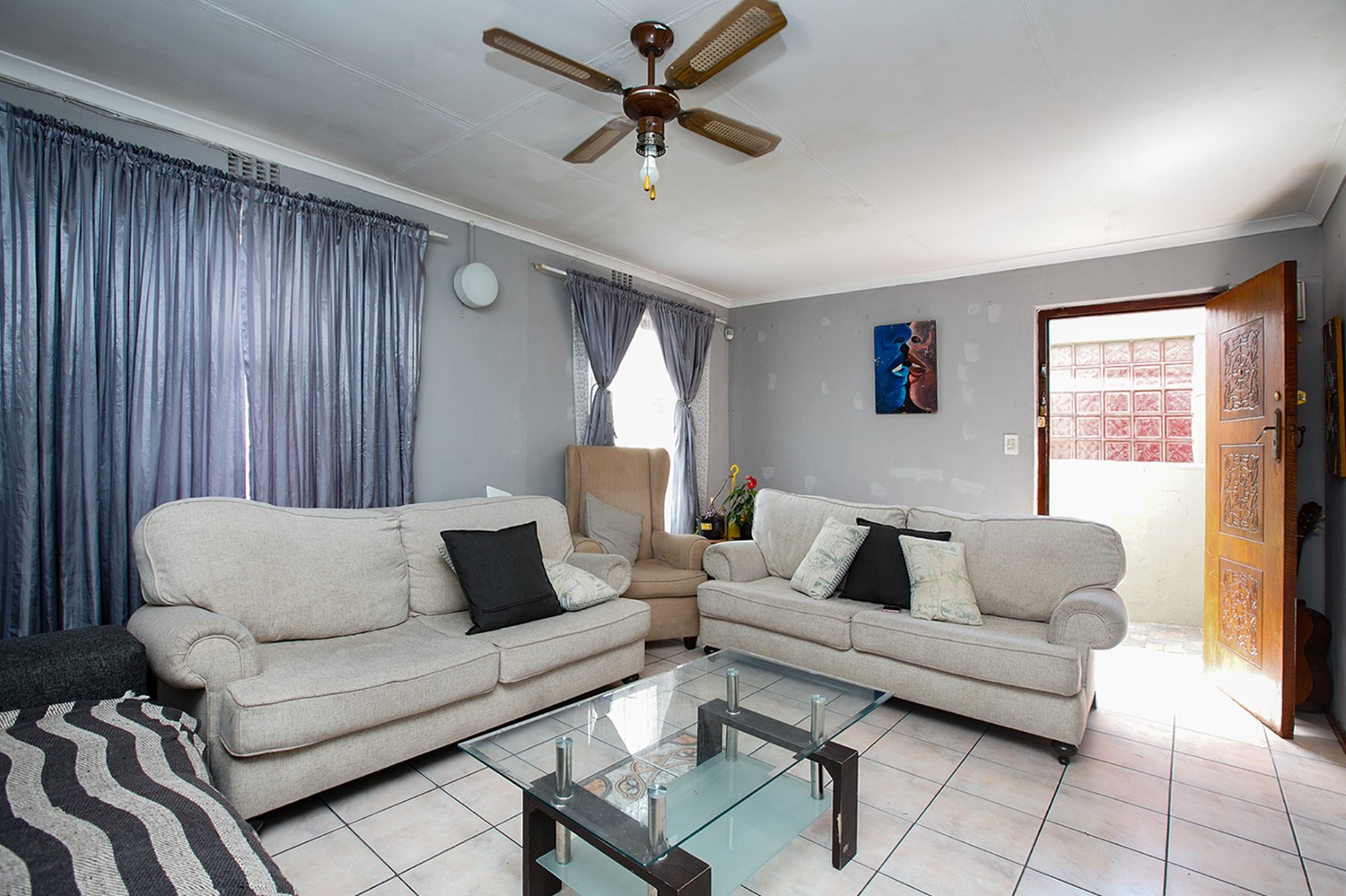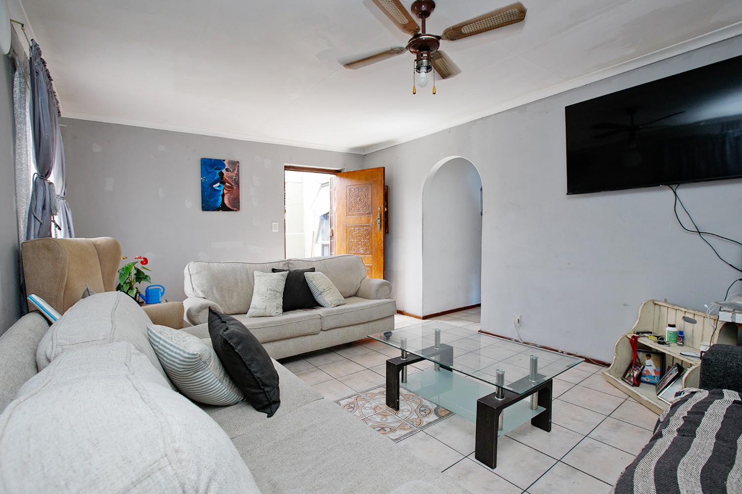 Upon arrival, you are welcomed into a spacious, open-plan lounge that offers a warm and inviting atmosphere. The kitchen features built-in cupboards and includes a back door leading directly into the backyard for added convenience.